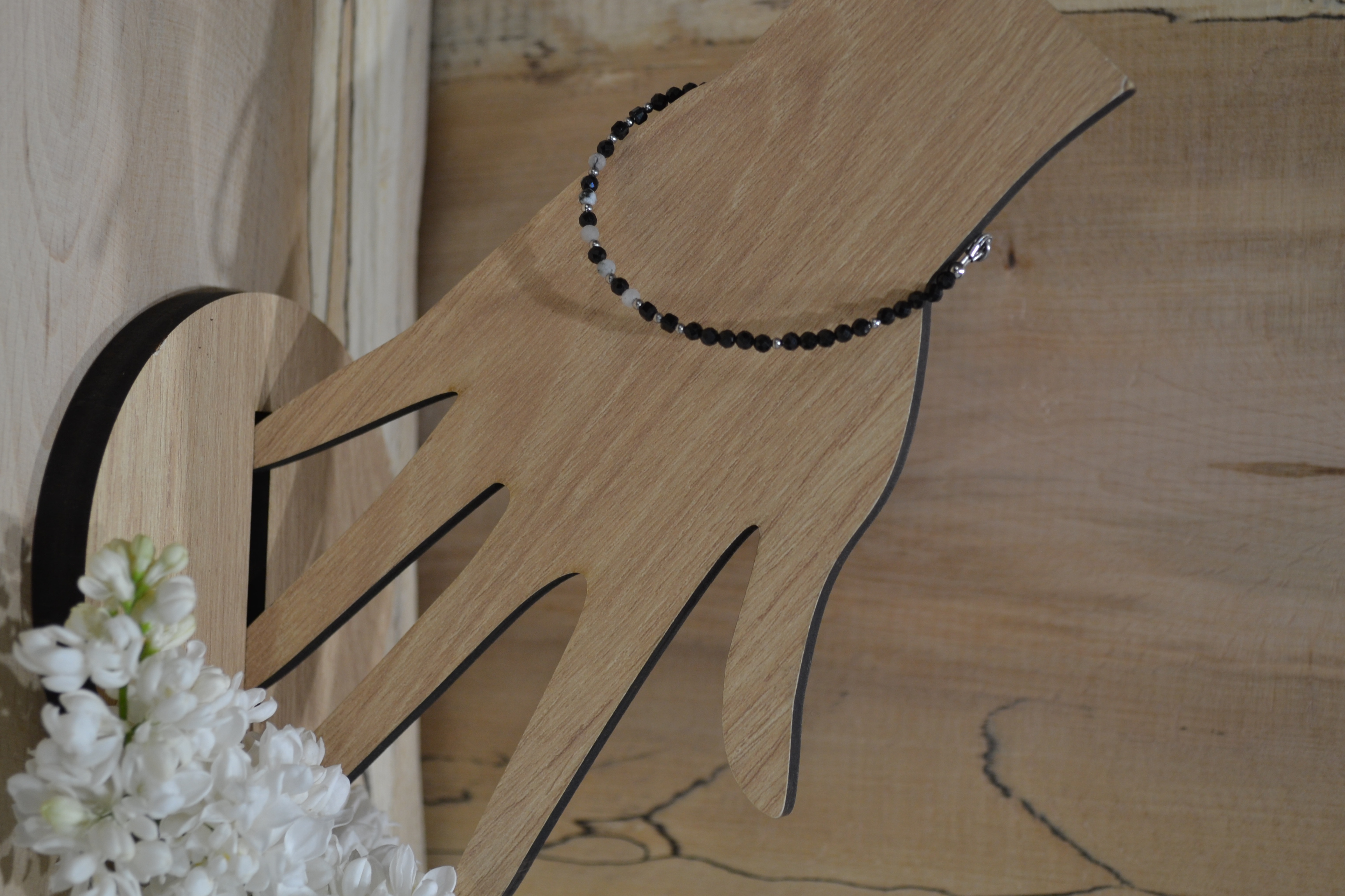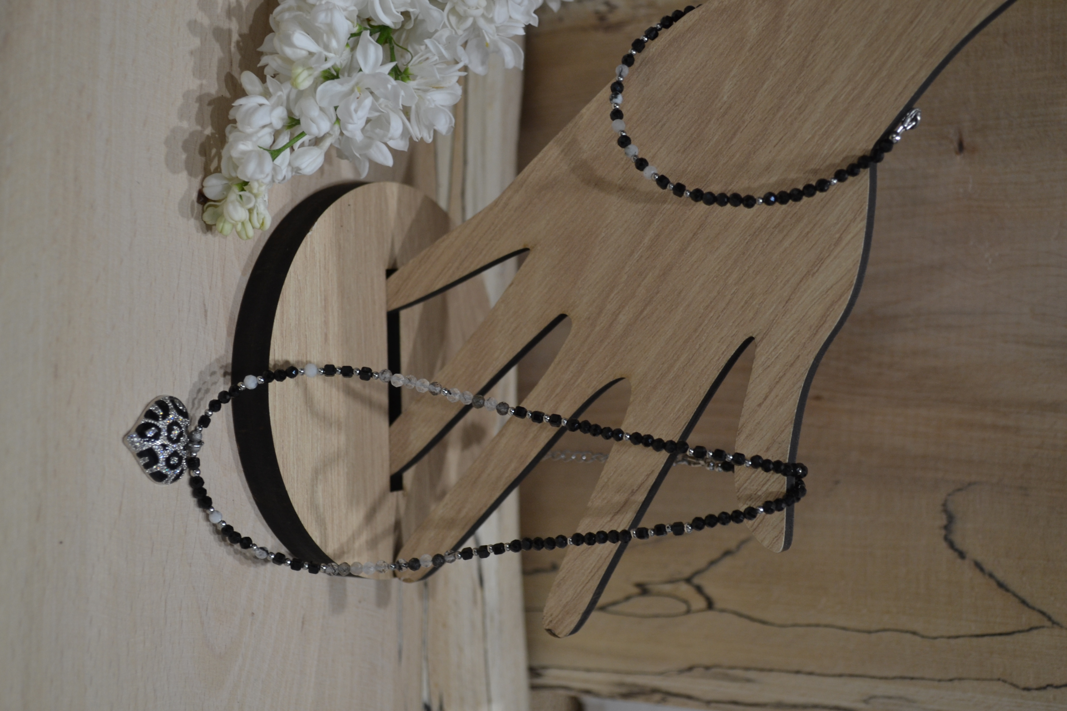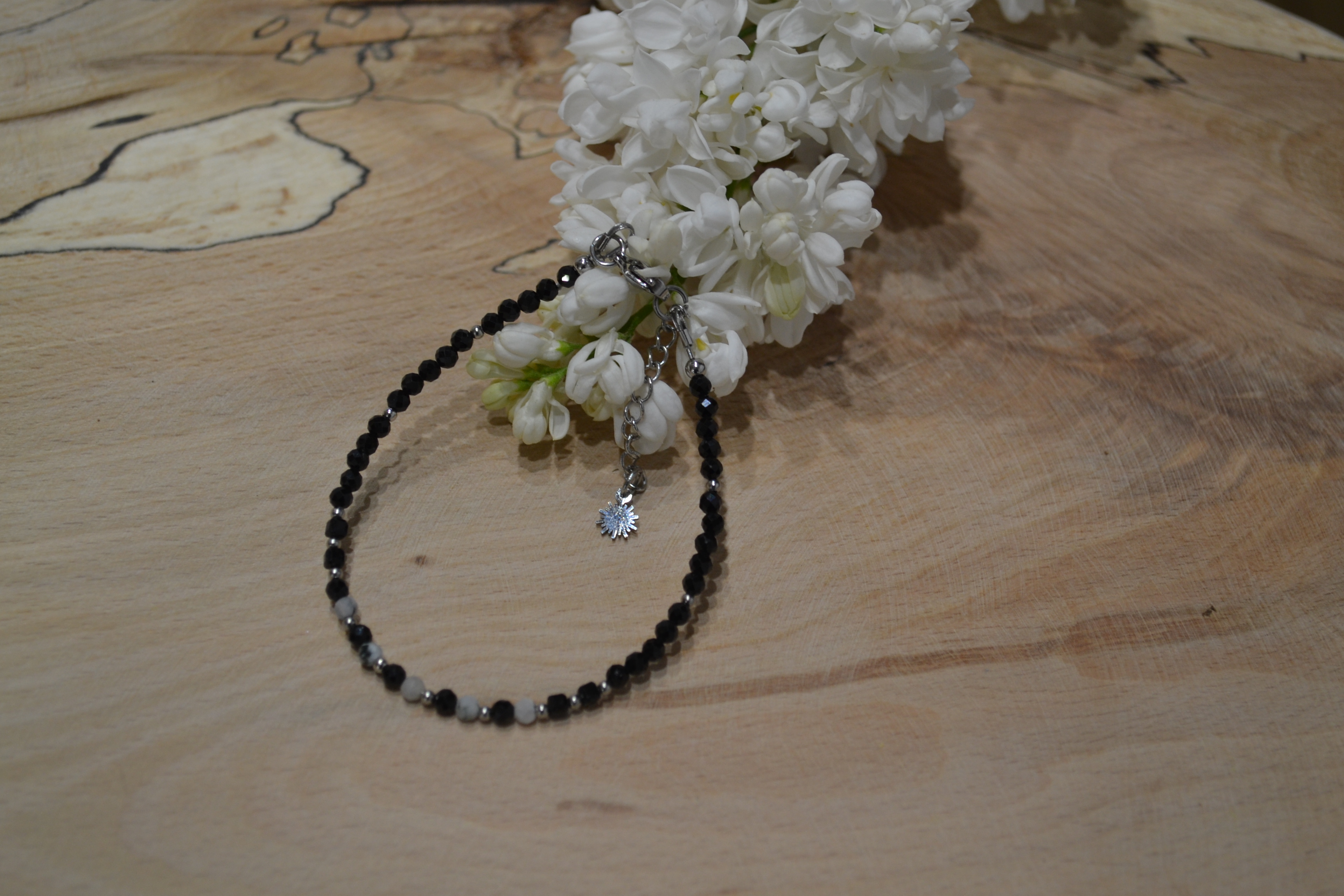 Ta piękna bransoletka zrobiona przez nas z kamienia TURMALIN I KWARC RUTYLOWY zakuta na drucie jubilerskim ze stali chirurgicznej. Dodatki oraz zapięcie w srebrnym kolorze wykonaliśmy zestali chirurgicznej.
