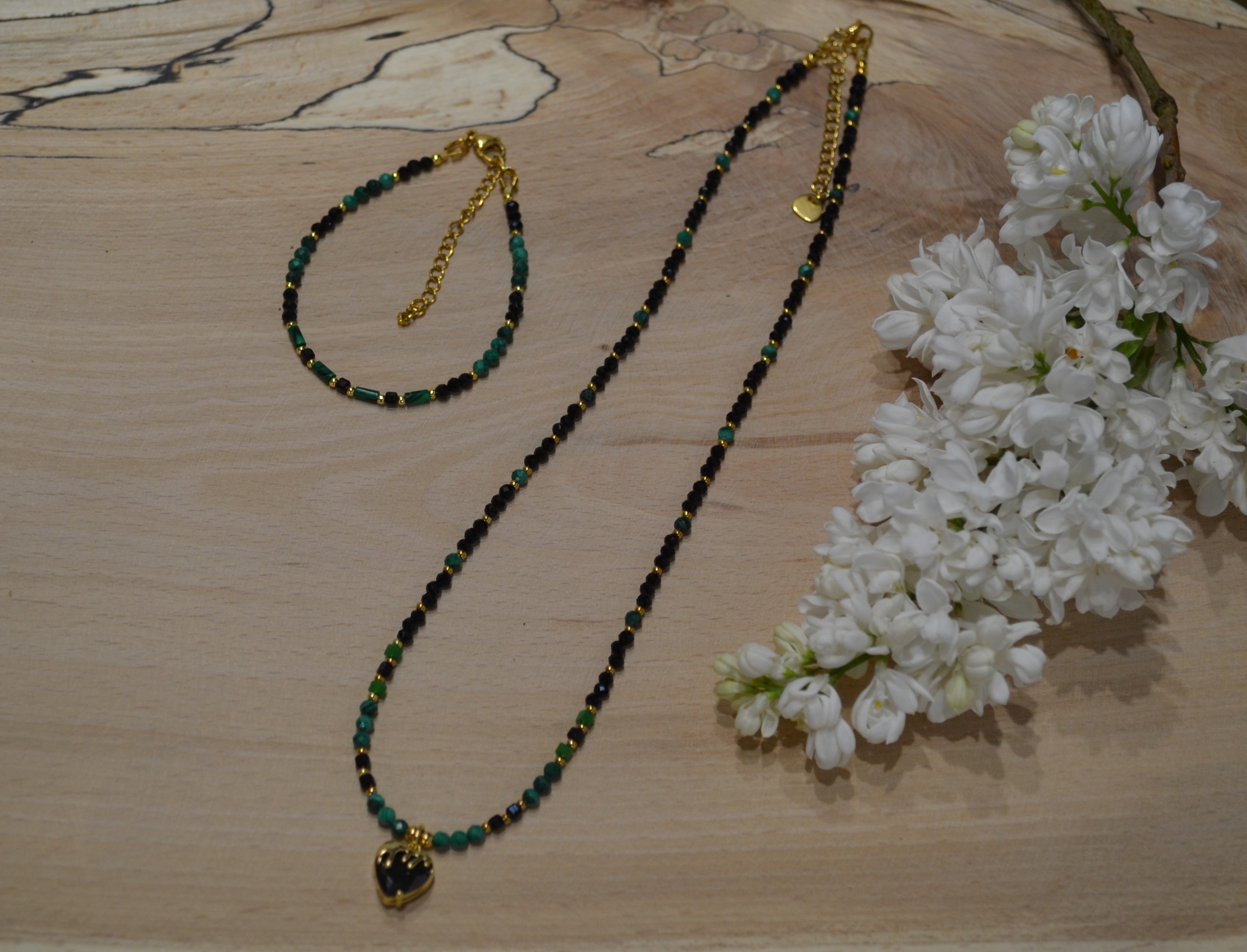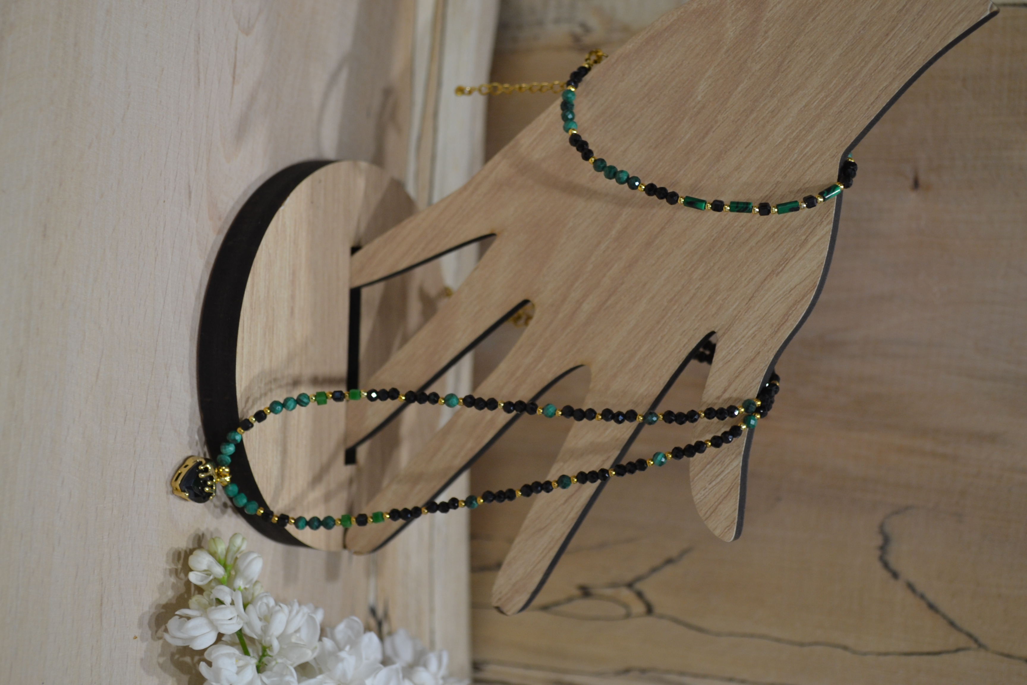 Bransoletka z czarnego turmalinu i malachitu pasuje do wielu stylizacji — zarówno codziennych, jak i bardziej eleganckich. Dzięki połączeniu głębokiej czerni turmalinu i zielonych odcieni malachitu, biżuteria prezentuje się wyjątkowo szlachetnie, a jednocześnie subtelnie. Doskonale komponuje się z prostymi, klasycznymi stylizacjami, na przykład z białą koszulą i ciemnymi spodniami, gdzie stanowi elegancki akcent podkreślający charakter całego stroju. Z kolei w zestawieniu z lekkimi sukienkami w odcieniach beżu, bieli czy pastelowych kolorów, bransoletka damska z malachitem wprowadzi naturalny akcent i doda całości świeżości. To także idealna propozycja do stylizacji wieczorowych — turmalin w złotych dodatkach pięknie współgra z małą czarną czy dopasowaną sukienką koktajlową.