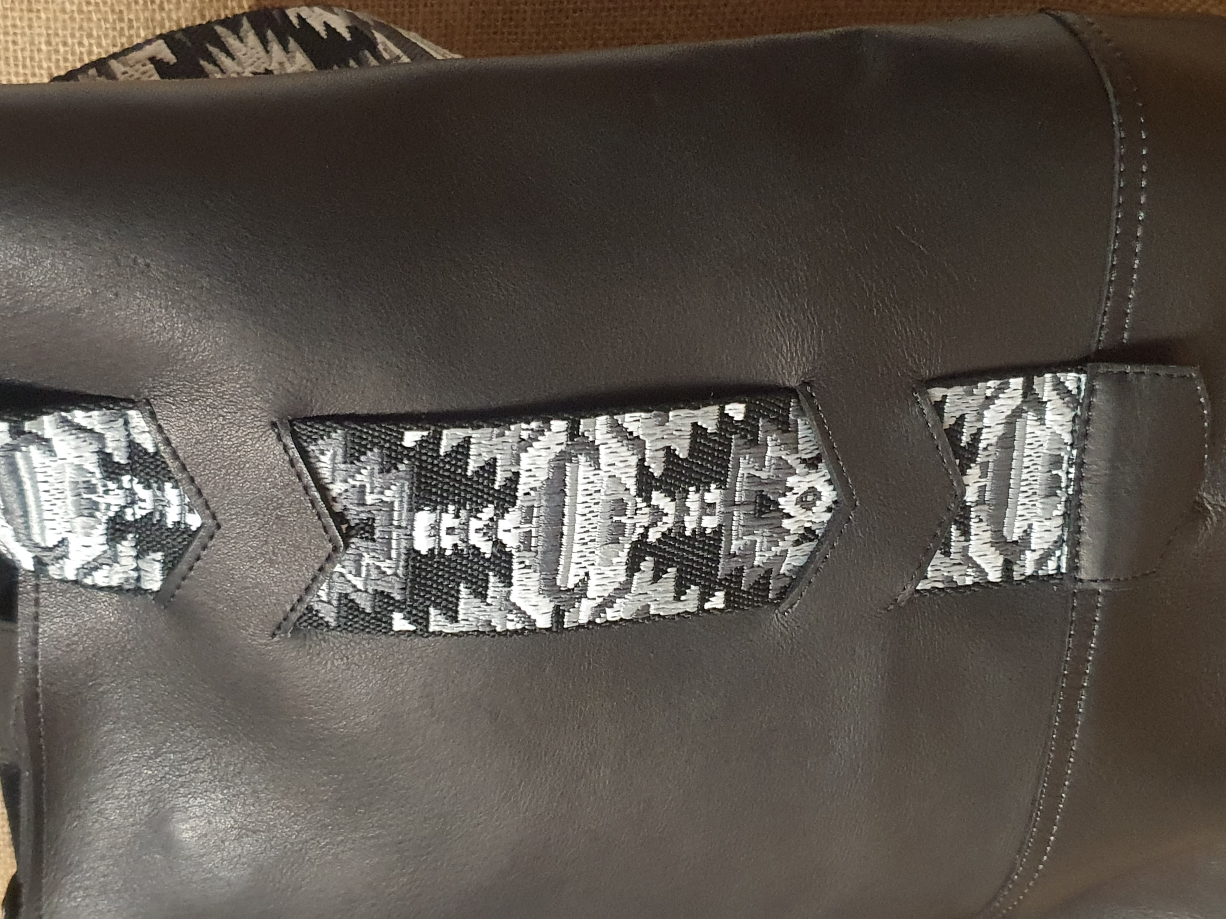 Przedstawiamy tobie właśnie tę torbę którą sprowadziliśmy dla ciebie z Ekwadoru . Gdzie została uszyta z naturalnej 100 % skóry bydlęcej w kolorze czarnym . Torba jednokomorowa zamykana magnetycznym zatrzaskiem . W torbę zostały wkomponowane dwa pasy etniczne CHUMBI pokryte wzorami Indian Ameryki Południowej zamieszkujących tereny Ekwadoru. Jakość wykonania oraz kompozycja kolorów przeniosą cię na wyższy poziom stylizacji budząc zazdrość w oczach innych kobiet.