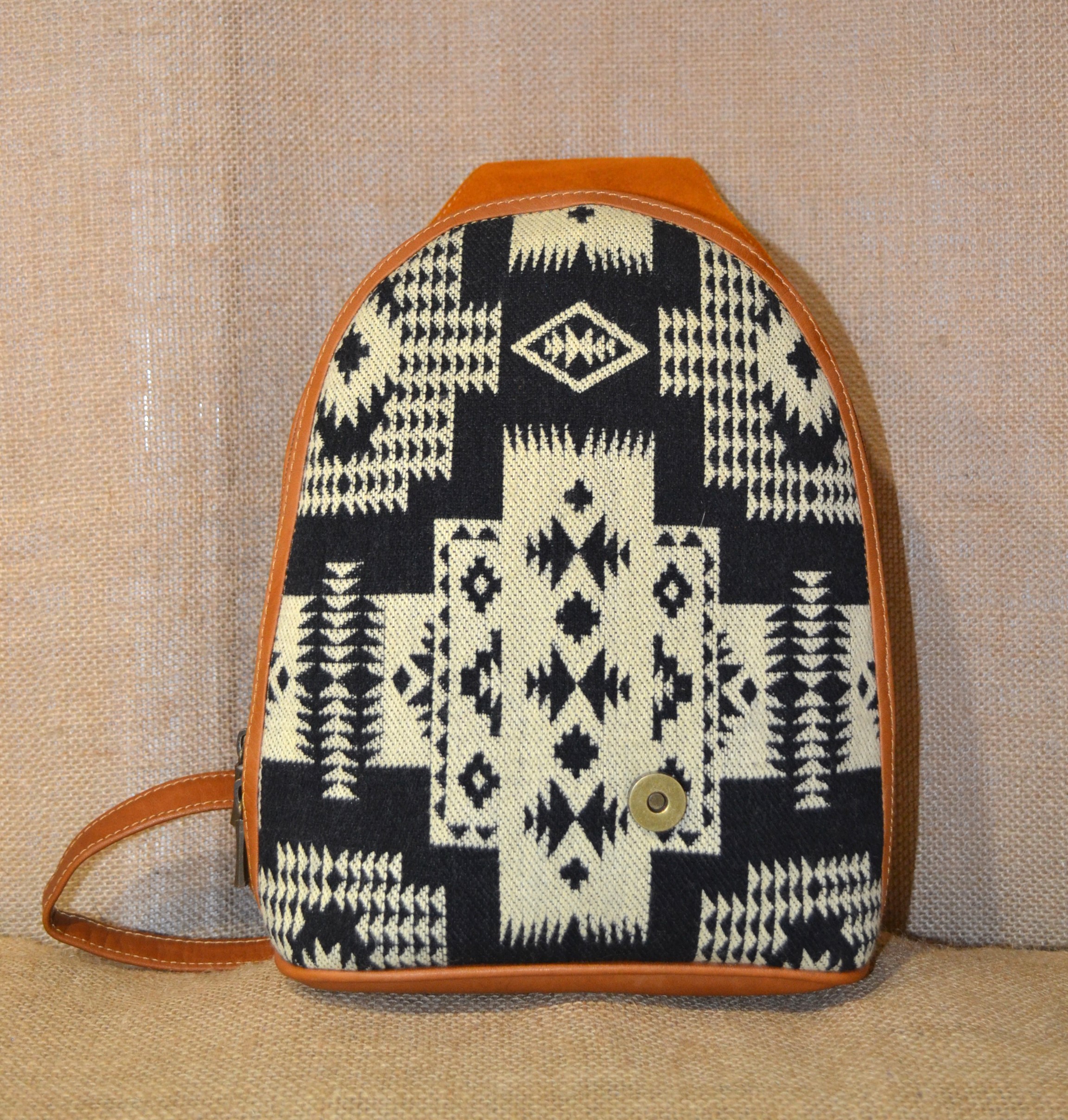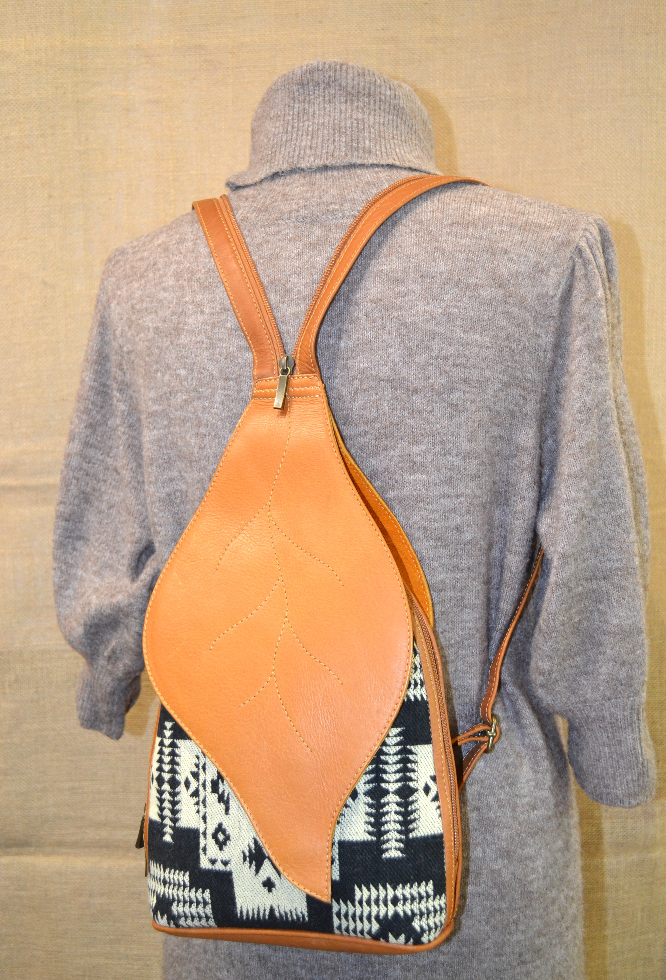 Zobaczcie ten piękny plecak uszyty z naturalnej bydlęcej 100% skóry. Jego przednia część pokryta jest materiałem utkanym z wełny owczej . Kolorowe symbole widniejące na tym materiale to wykorzystywane przez stulecia etniczne symbole ekwadorskich Indian żyjących wysoko w Andach . Wnętrze plecaka podzielono na jedną główną komorę, dwie małe otwarte kieszonki i jedną kieszonkę zamykaną na zamek błyskawiczny , środek podszyty został miękką wyściółką. Plecak zamykany jest zamkiem błyskawicznym. Całość zwieńcza klapa w kształcie liścia . Wszystkie te detale sprawiają że ten właśnie plecak jest unikalny i ponad czasowy . Łączy ze sobą setki lat kultury i tradycji Indian Kichua oraz nowoczesny styl i piękno naturalnej skóry .
