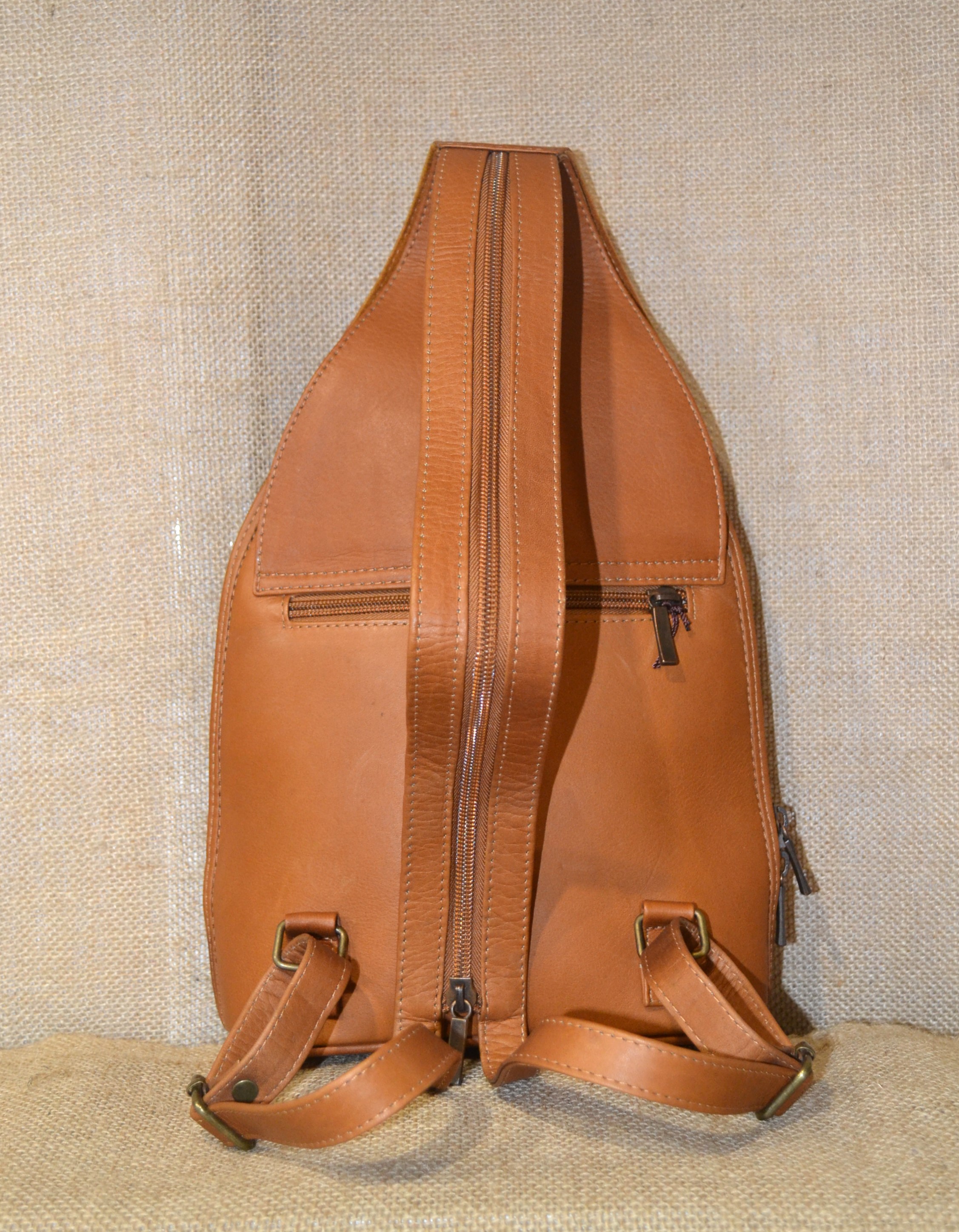 Strona główna » Wyroby ze skóry » Etniczny haftowany ekwadorski plecak z jasnobrązowej skóry.