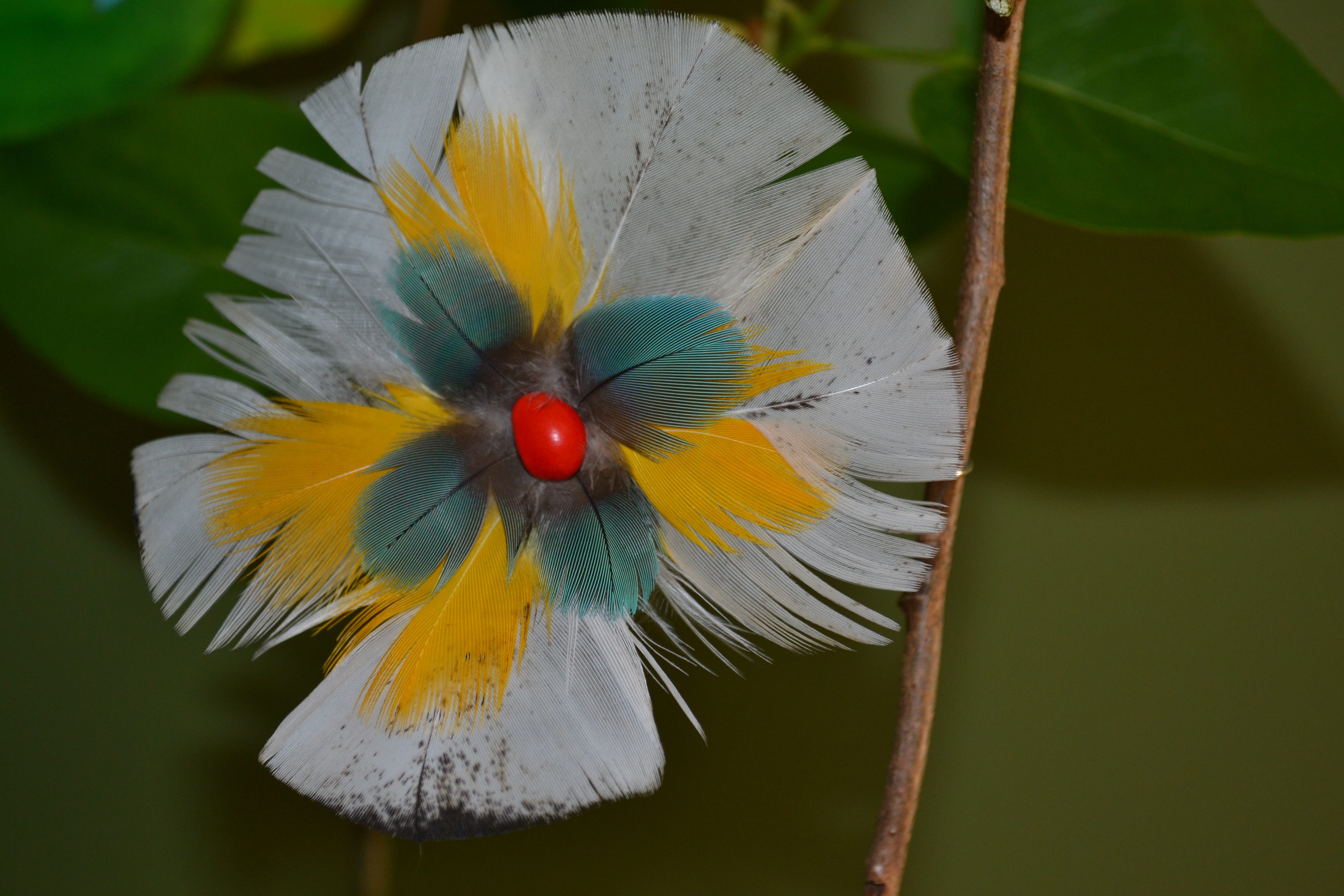 Wykonane są ręcznie z piór zbieranych w hodowlach I ogrodzie zoologicznym na skraju Dżungli Amazońskiej pomiędzy RIO NAPO a RIO CURARAYw Ekwadorze . Zapewniamy że podczas pozyskiwania piór nie cierpi żaden ptak. Skąd to wiem ? Bo osobiście odbieramy te pióra od osoby która je dla nas zbiera . Przywozimy do Polski lekkość wiatru wiejącego u podnóża Andów , tajemnice skrywaną przez Amazońską Dżungle oraz kolory używane przez plemiona Indian Kultury Huaorani zamieszkujące ten obszar. Te trzy cechy zostały zaklęte w kolczyki jakich nie znajdziesz nigdzie indziej na świecie. Skupią na tobie uwagę innych I sprawią że poczujesz się bardziej kobieca niż przedtem. Do wykonania tych kolczyków używamy czerwono czarnych pestek drzewa HUAYRURO . Nasiona te umiejscowione są w centrum kolczyka I na tylnej stronie . Zapięcie typu bigiel otwarty ze stali chirurgicznej pozwala na szybkie I bezproblemowe zakładanie I zdejmowanie