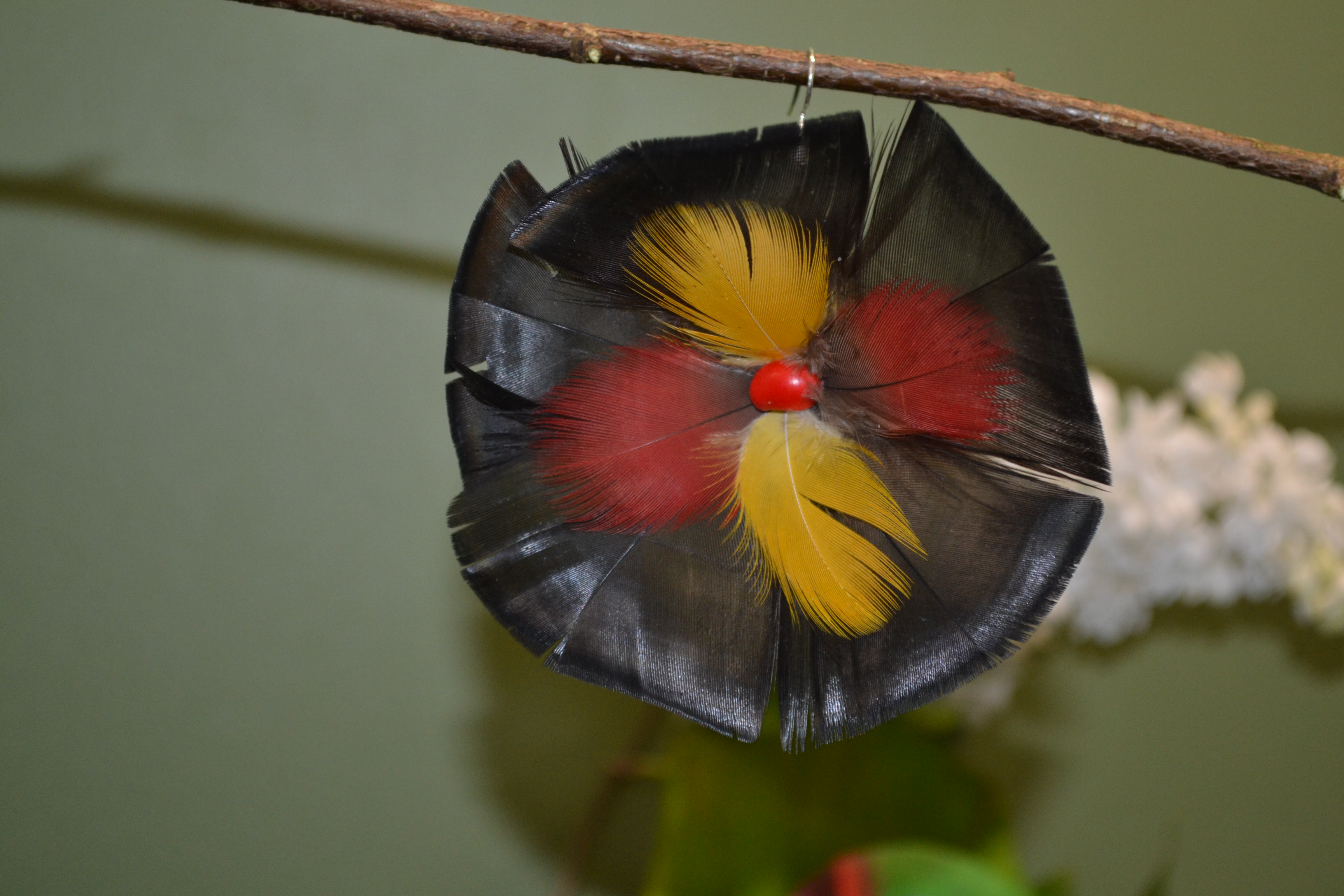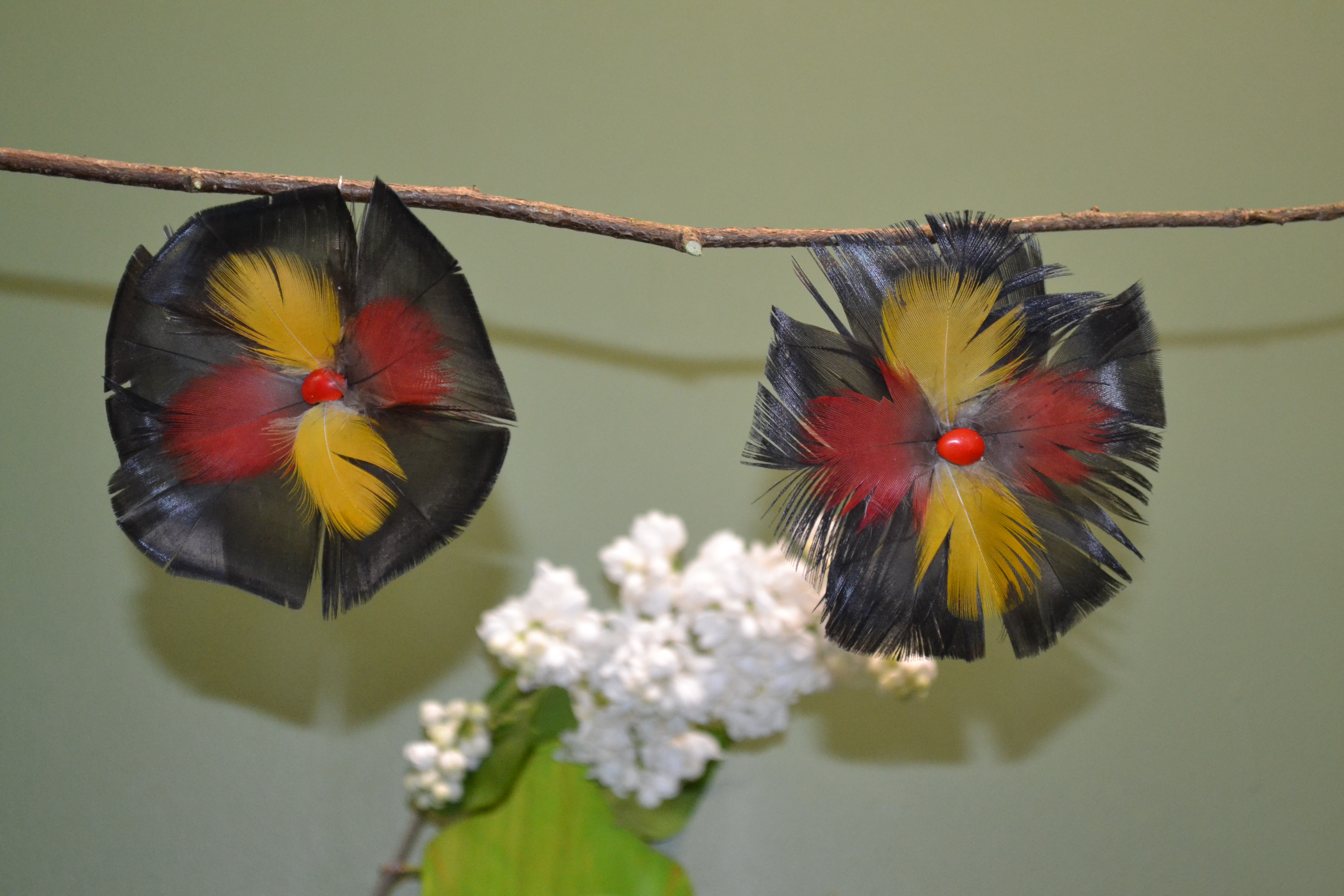 Wykonane są ręcznie z piór zbieranych w hodowlach I ogrodzie zoologicznym na skraju Dżungli Amazońskiej pomiędzy RIO NAPO a RIO CURARAYw Ekwadorze . Zapewniamy że podczas pozyskiwania piór nie cierpi żaden ptak. Skąd to wiem ? Bo osobiście odbieramy te pióra od osoby która je dla nas zbiera . Przywozimy do Polski lekkość wiatru wiejącego u podnóża Andów , tajemnice skrywaną przez Amazońską Dżungle oraz kolory używane przez plemiona Indian Kultury Huaorani zamieszkujące ten obszar. Te trzy cechy zostały zaklęte w kolczyki jakich nie znajdziesz nigdzie indziej na świecie. Skupią na tobie uwagę innych I sprawią że poczujesz się bardziej kobieca niż przedtem. Do wykonania tych kolczyków używamy czerwono czarnych pestek drzewa HUAYRURO . Nasiona te umiejscowione są w centrum kolczyka I na tylnej stronie . Zapięcie typu bigiel otwarty ze stali chirurgicznej pozwala na szybkie I bezproblemowe zakładanie I zdejmowanie
