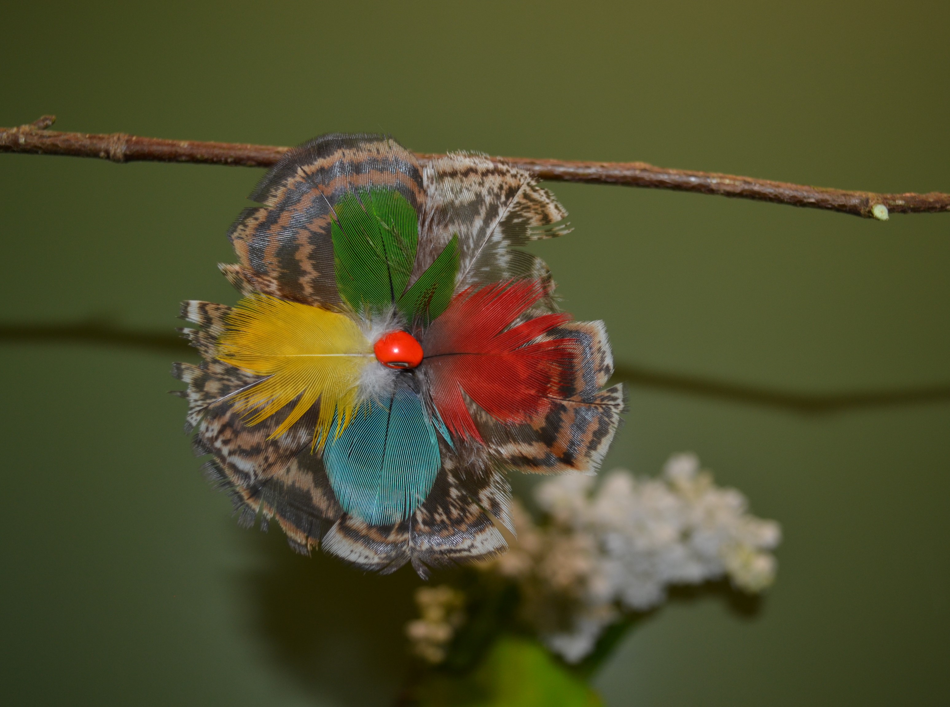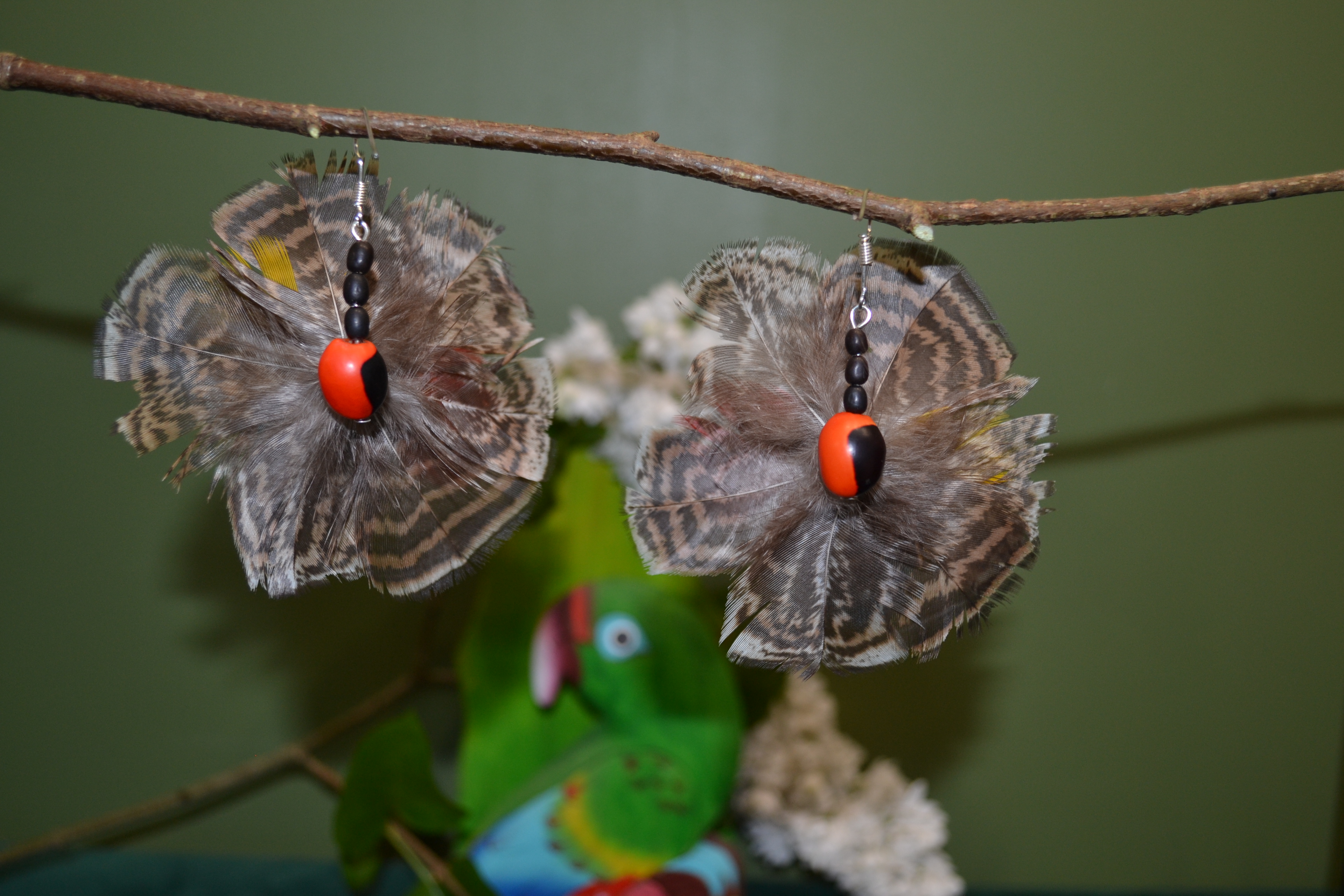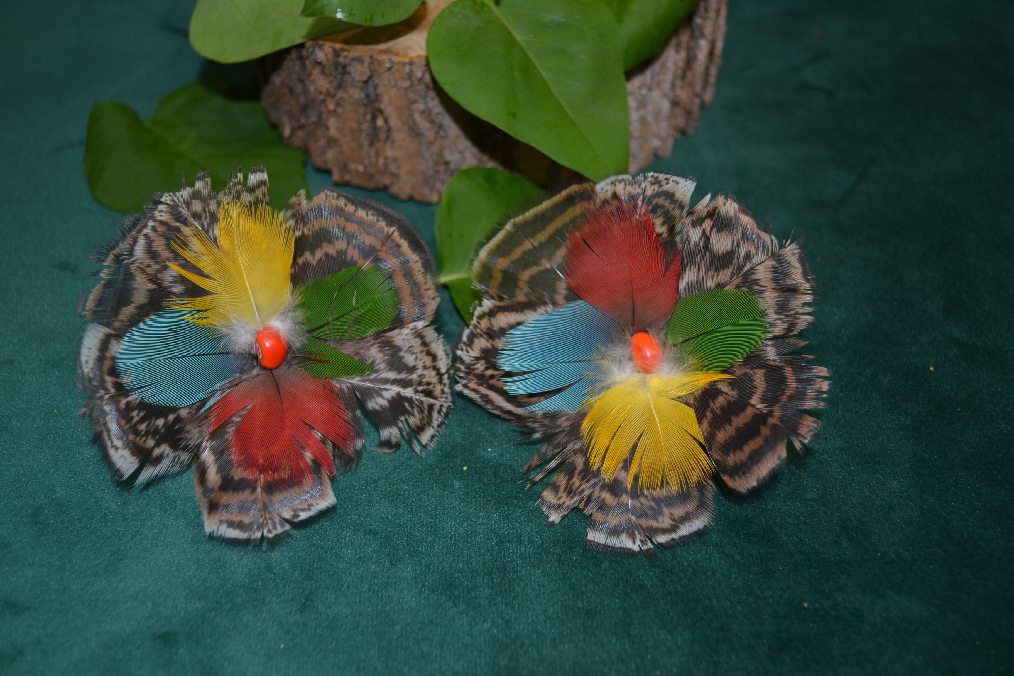 Wykonane są ręcznie z piór zbieranych w hodowlach I ogrodzie zoologicznym na skraju Dżungli Amazońskiej pomiędzy RIO NAPO a RIO CURARAYw Ekwadorze . Zapewniamy że podczas pozyskiwania piór nie cierpi żaden ptak. Skąd to wiem ? Bo osobiście odbieramy te pióra od osoby która je dla nas zbiera . Przywozimy do Polski lekkość wiatru wiejącego u podnóża Andów , tajemnice skrywaną przez Amazońską Dżungle oraz kolory używane przez plemiona Indian Kultury Huaorani zamieszkujące ten obszar. Te trzy cechy zostały zaklęte w kolczyki jakich nie znajdziesz nigdzie indziej na świecie. Skupią na tobie uwagę innych I sprawią że poczujesz się bardziej kobieca niż przedtem. Do wykonania tych kolczyków używamy czerwono czarnych pestek drzewa HUAYRURO . Nasiona te umiejscowione są w centrum kolczyka I na tylnej stronie . Zapięcie typu bigiel otwarty ze stali chirurgicznej pozwala na szybkie I bezproblemowe zakładanie I zdejmowanie