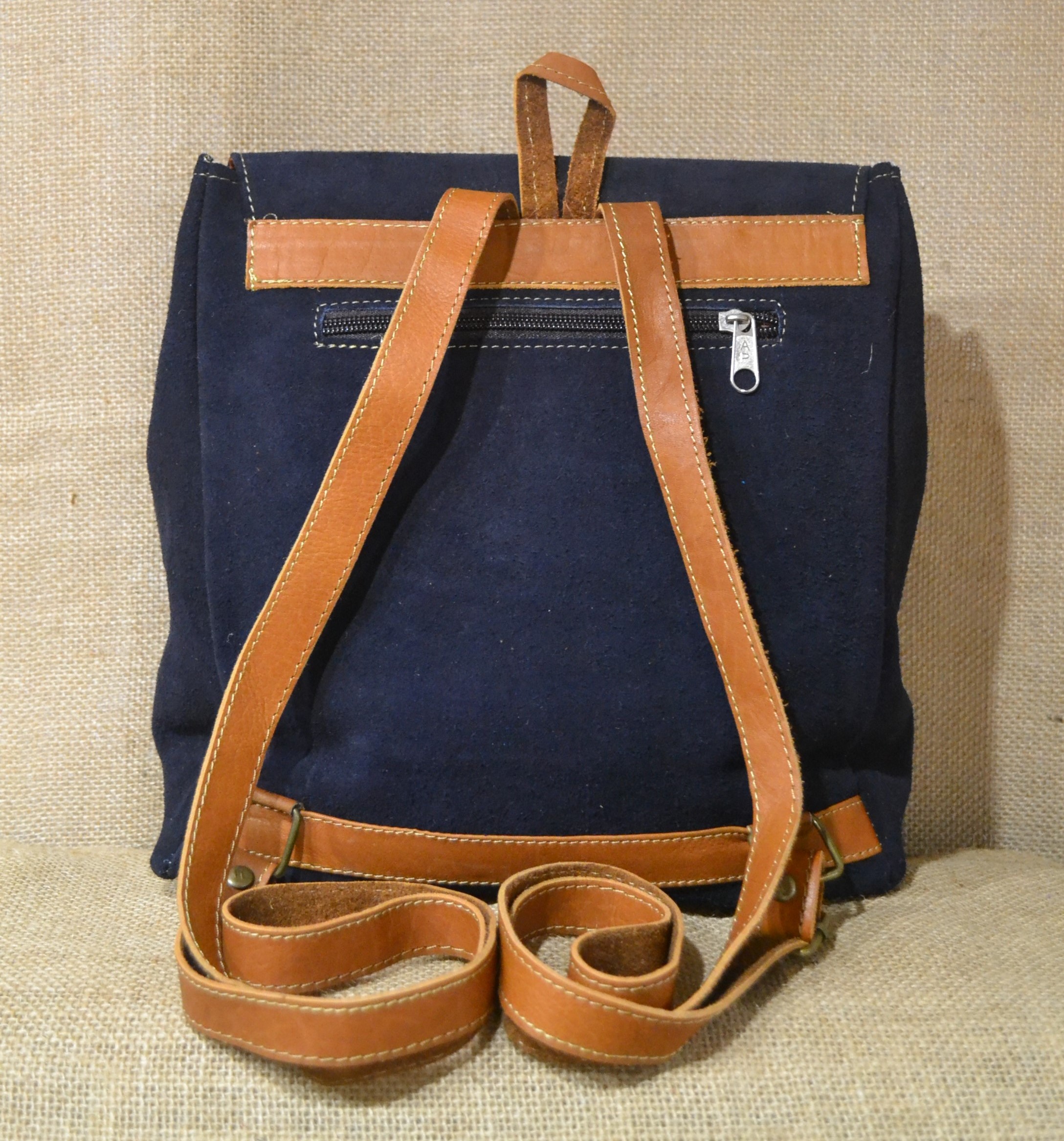 Strona główna » Wyroby ze skóry » Mały plecak ze skóry zamszowej kolor granatowego z kwiatowym haftem