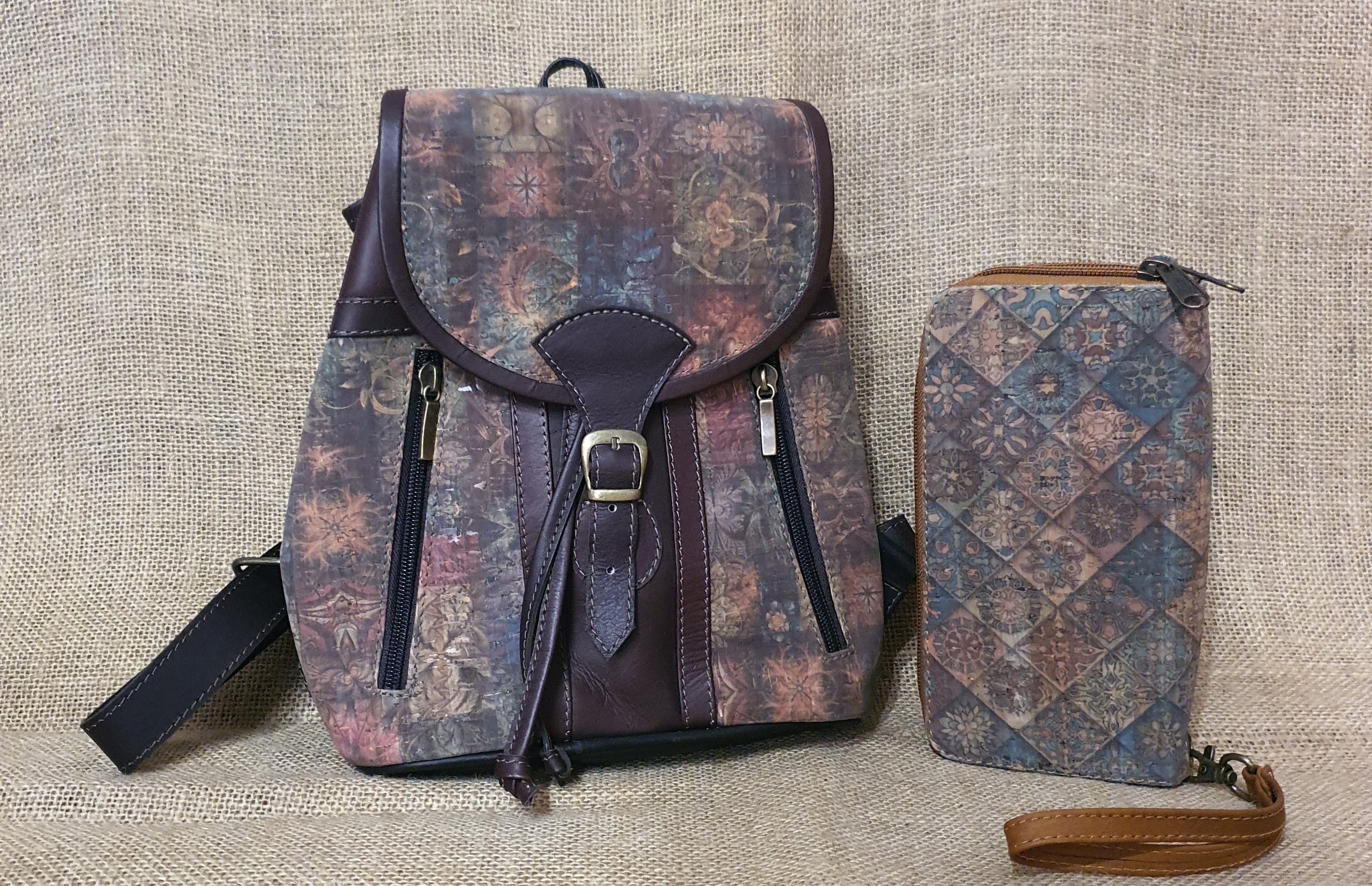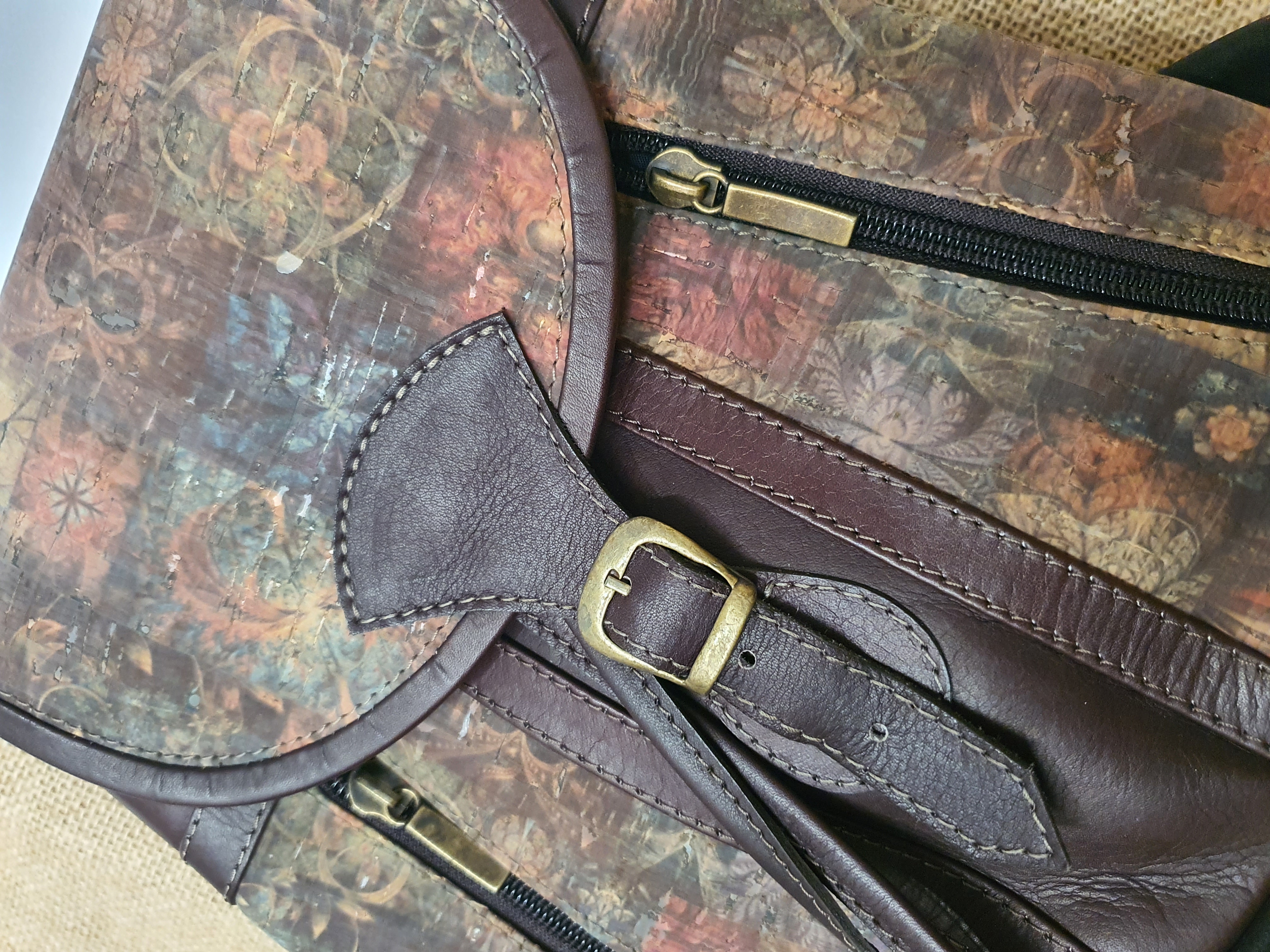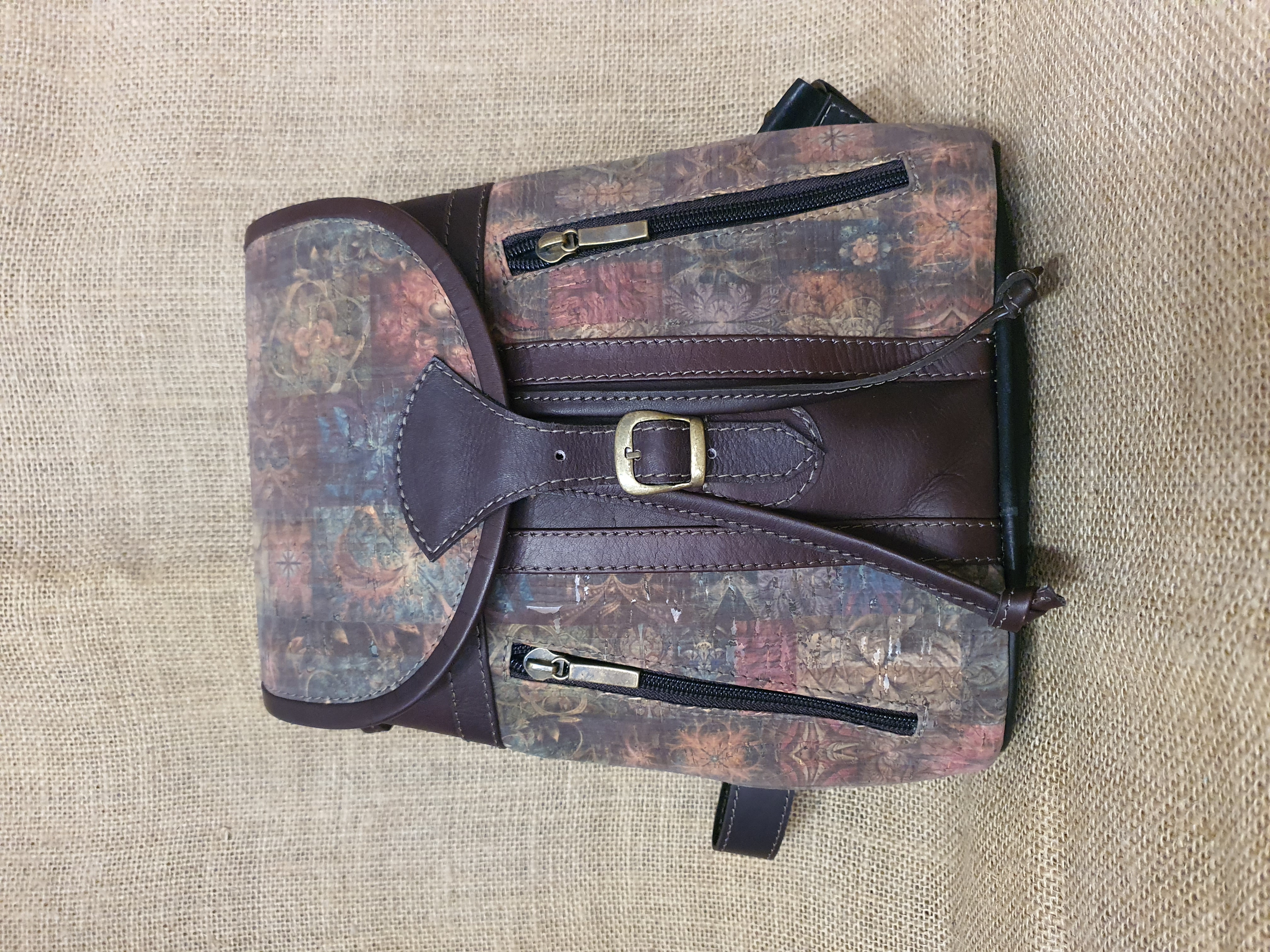 Plecak ze skóry i korka ciemnobrązowy .