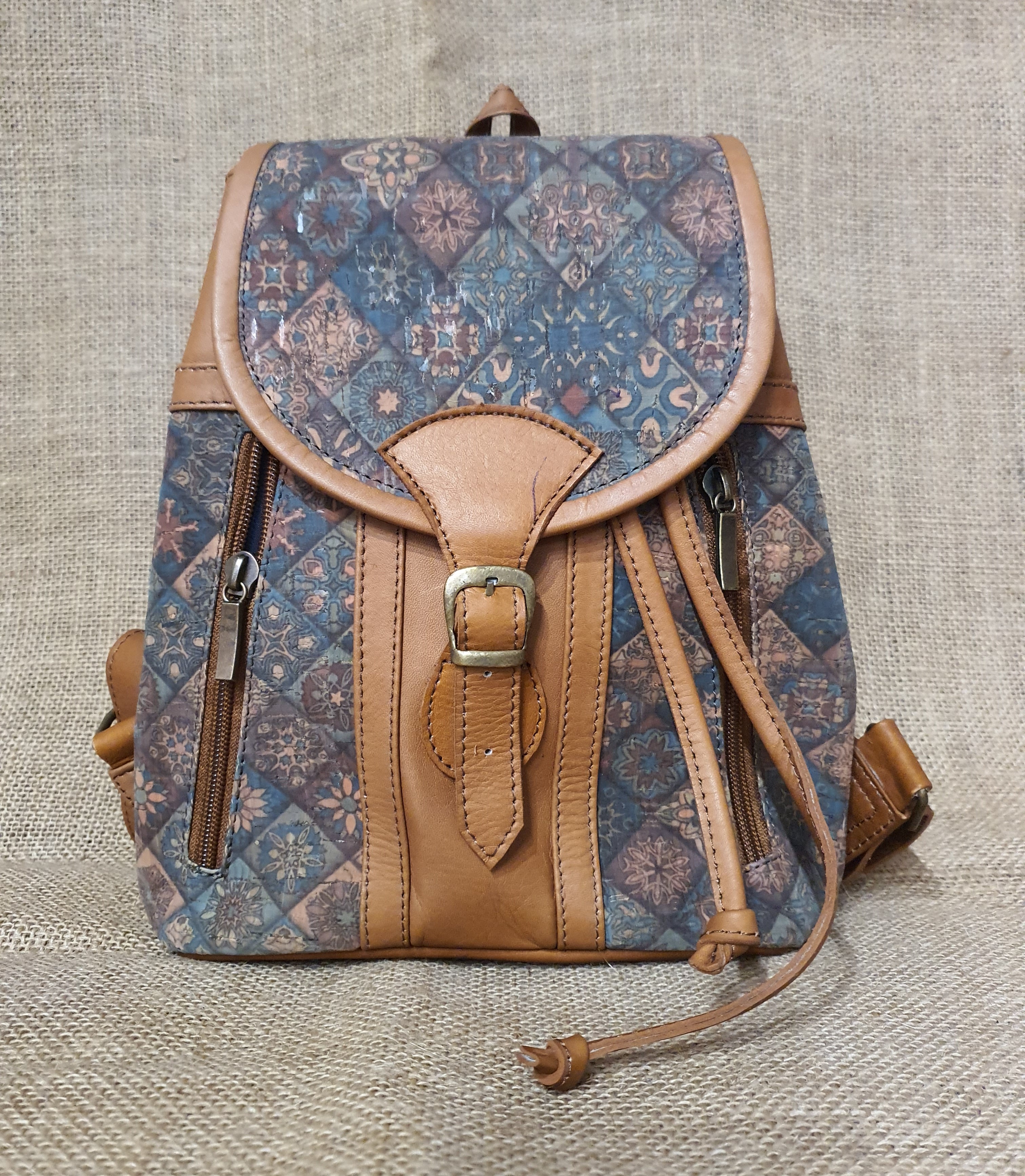 Plecak ze skóry i korka   jasnobrązowy .