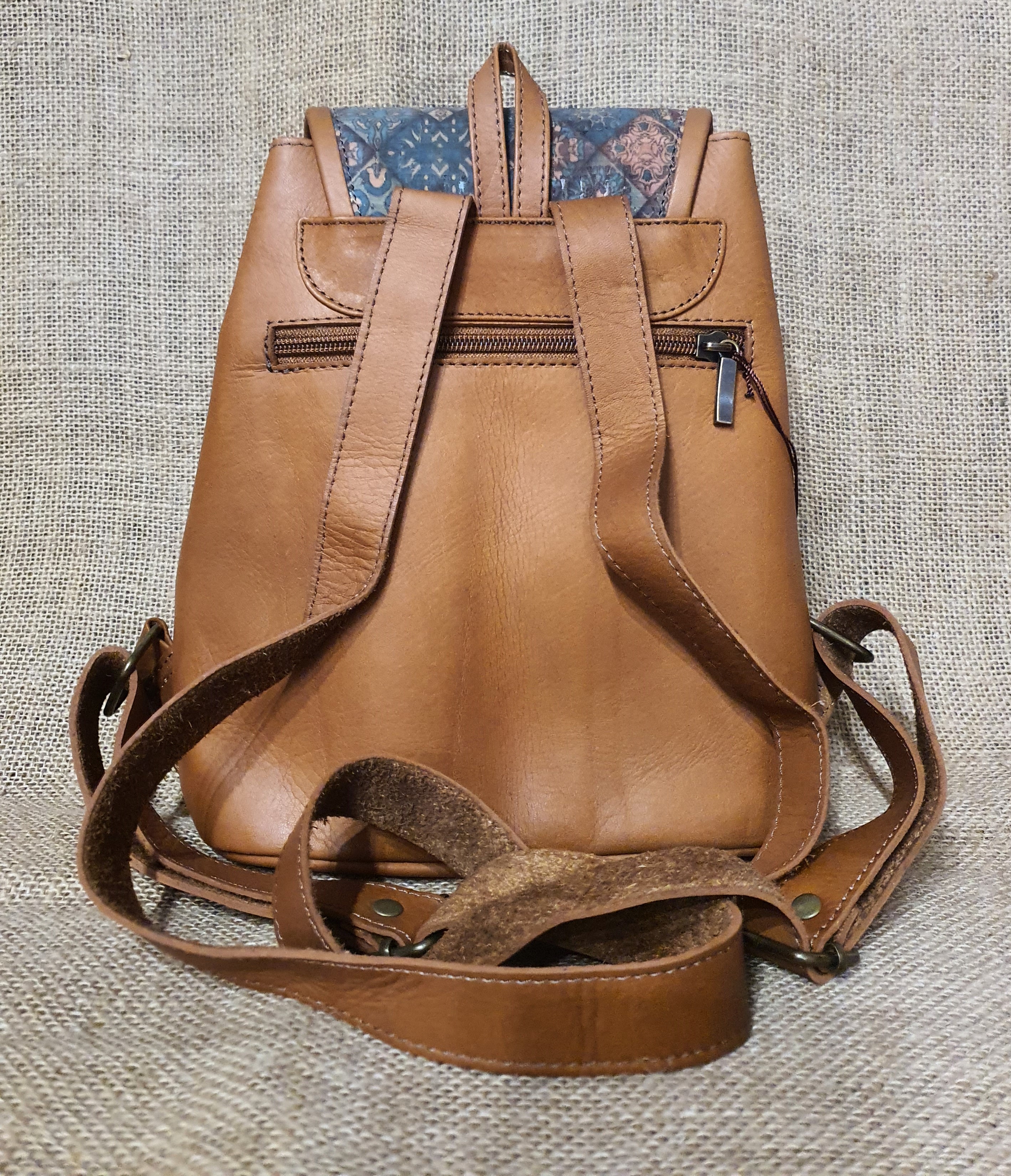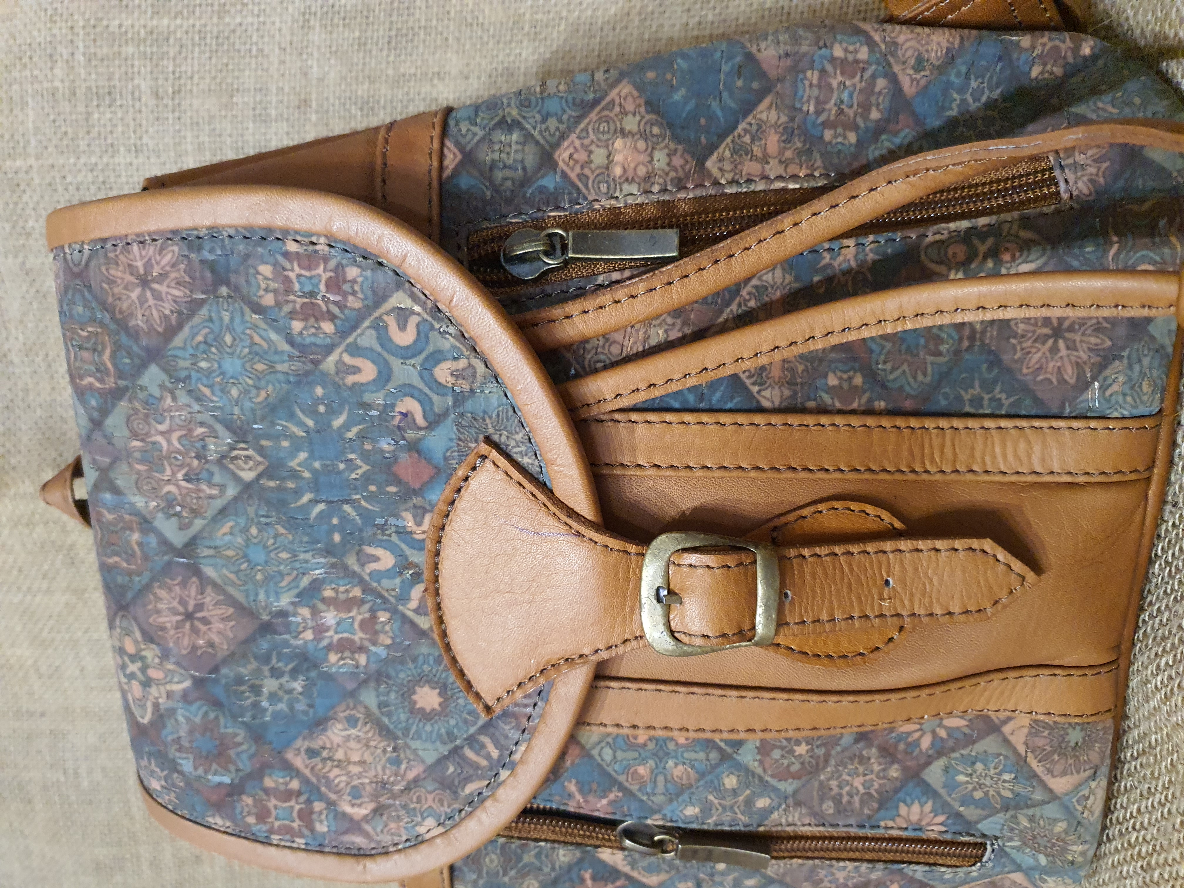 Plecak ze skóry i korka jasnobrązowy .