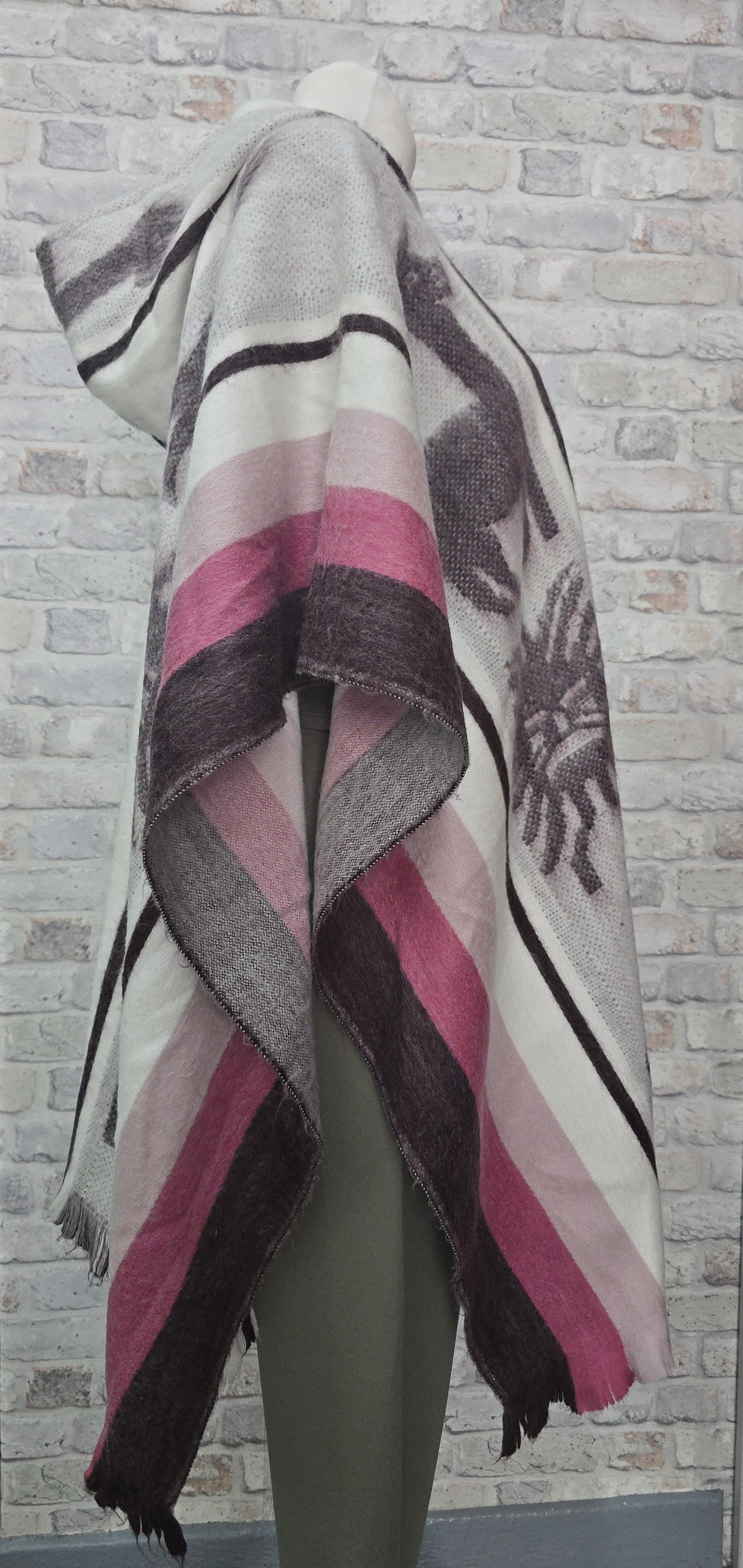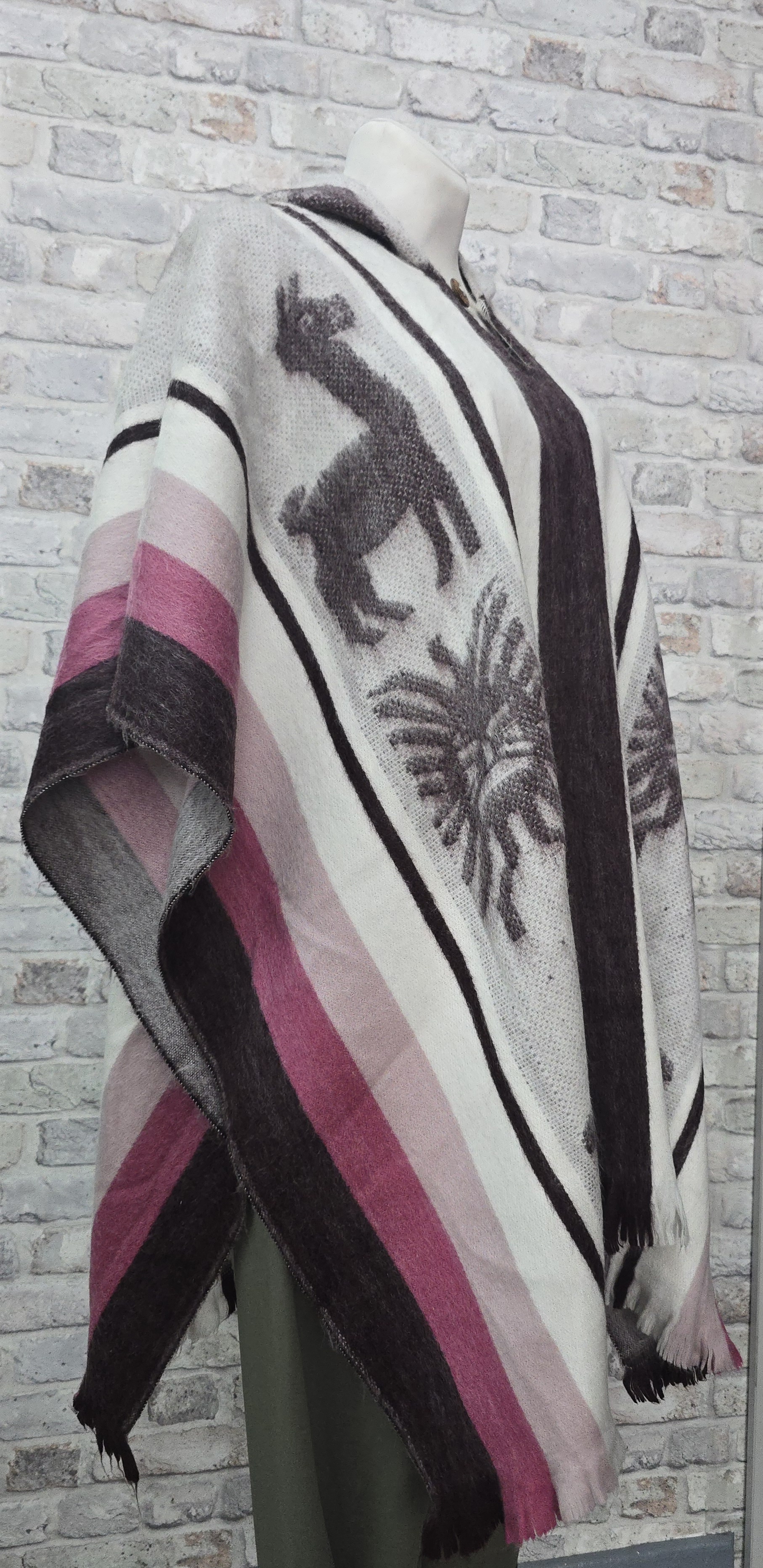 Ponczo z wełny alpaki jest lekkie, miękkie i delikatne w dotyku, zarówno ciepłe i eleganckie .