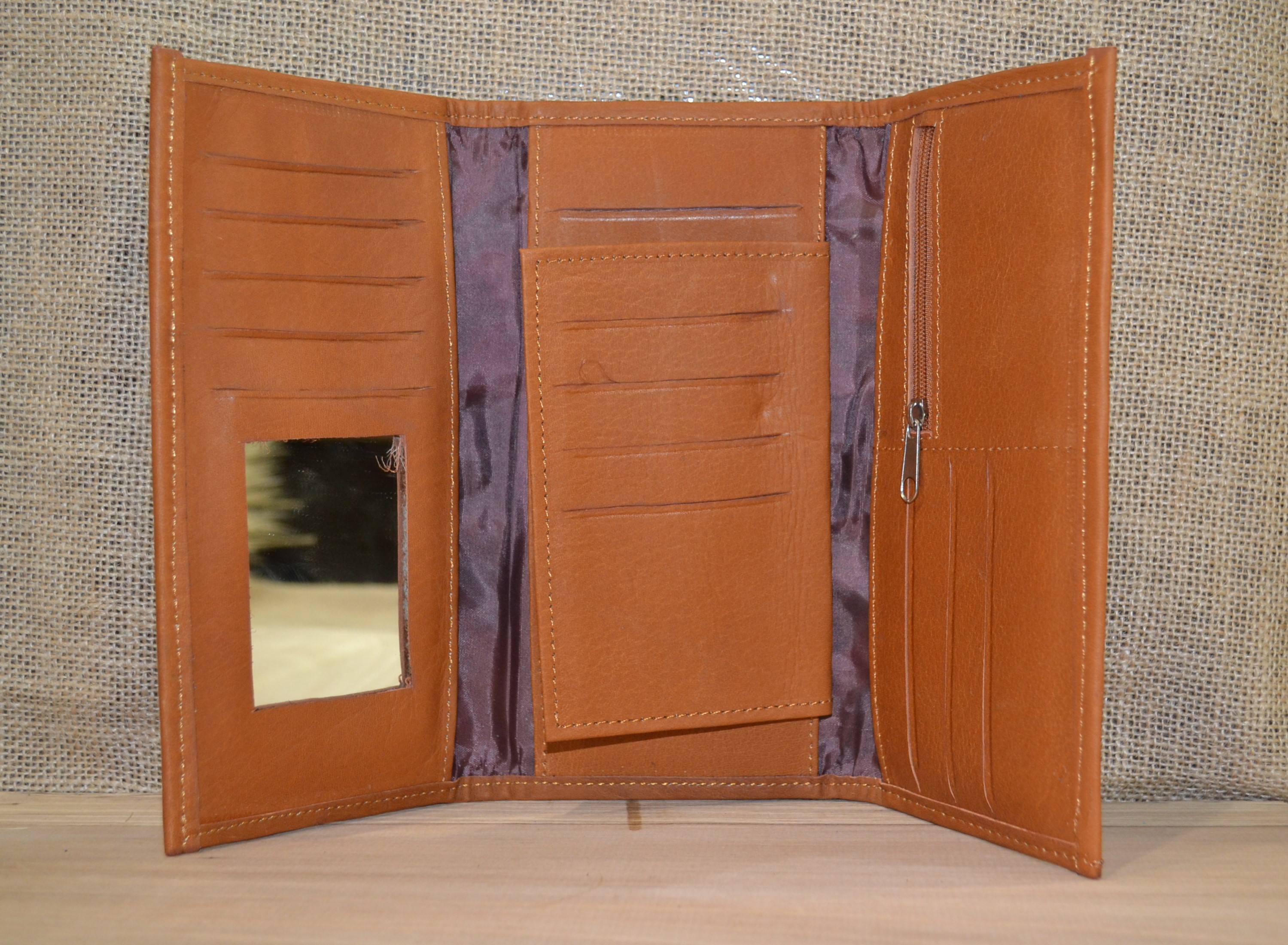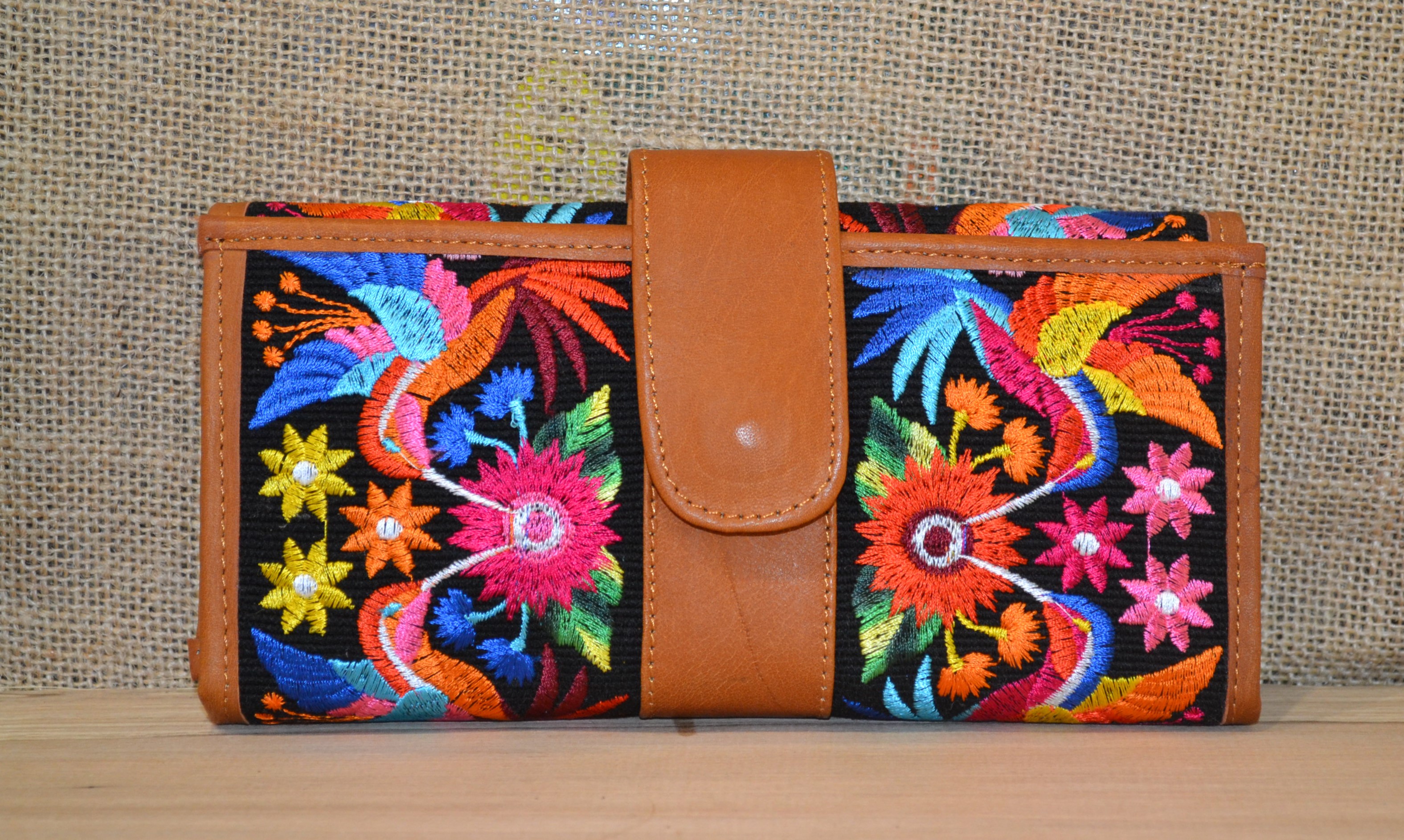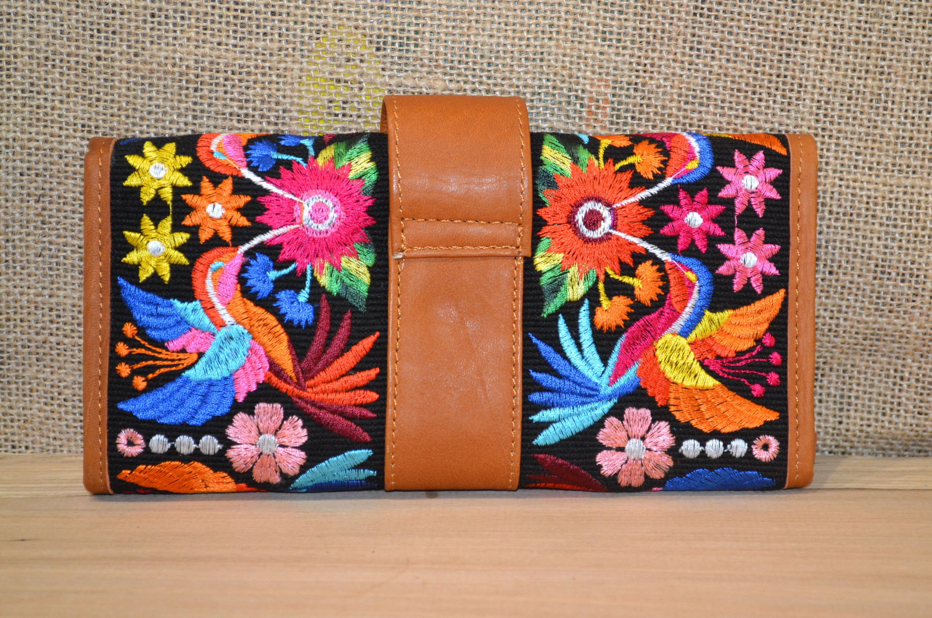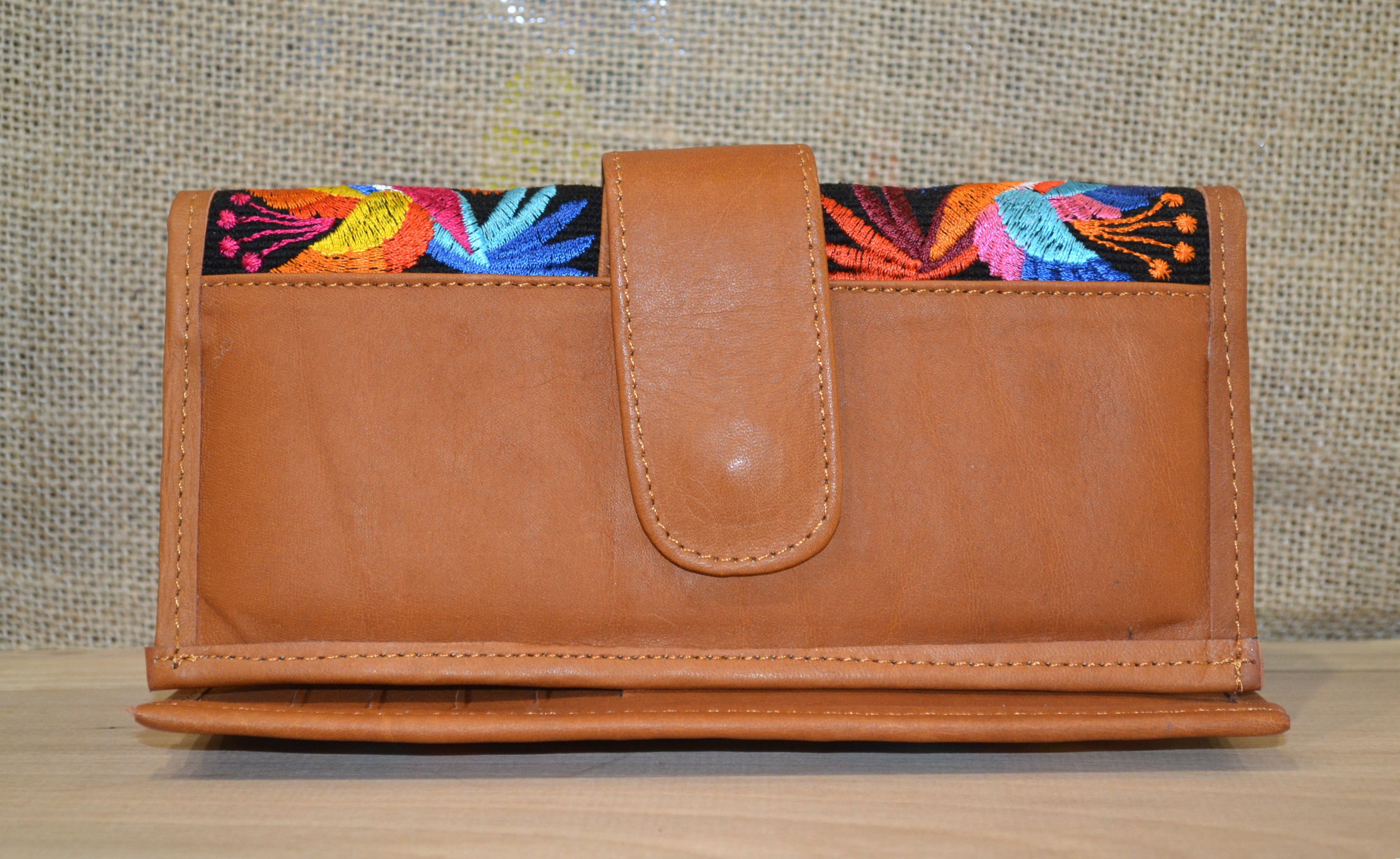 Jeśli szukasz dużego, zgrabnego , pojemnego portfela z portmonetką i lusterkiem to ten model jest dla ciebie . 100% naturalna brązowa  skóra pokryta kwiatowym haftem . Zaprojektowany i uszyty wysoko w Ekwadorskich Andach przez mały rzemieślniczy warsztat kaletniczy. Portfel posiada przegrodę na banknoty i na monety a także kieszonki na karty płatnicze.