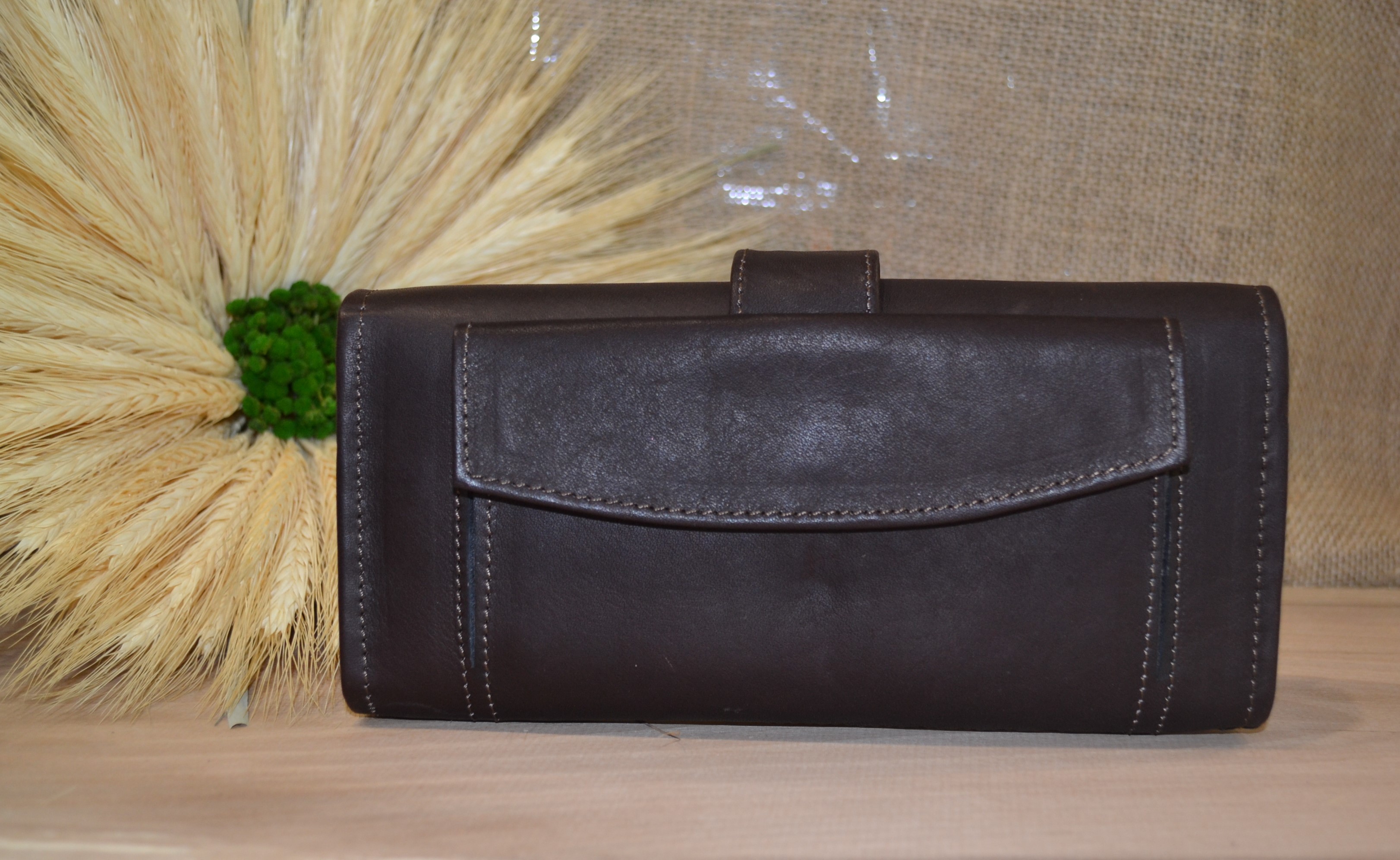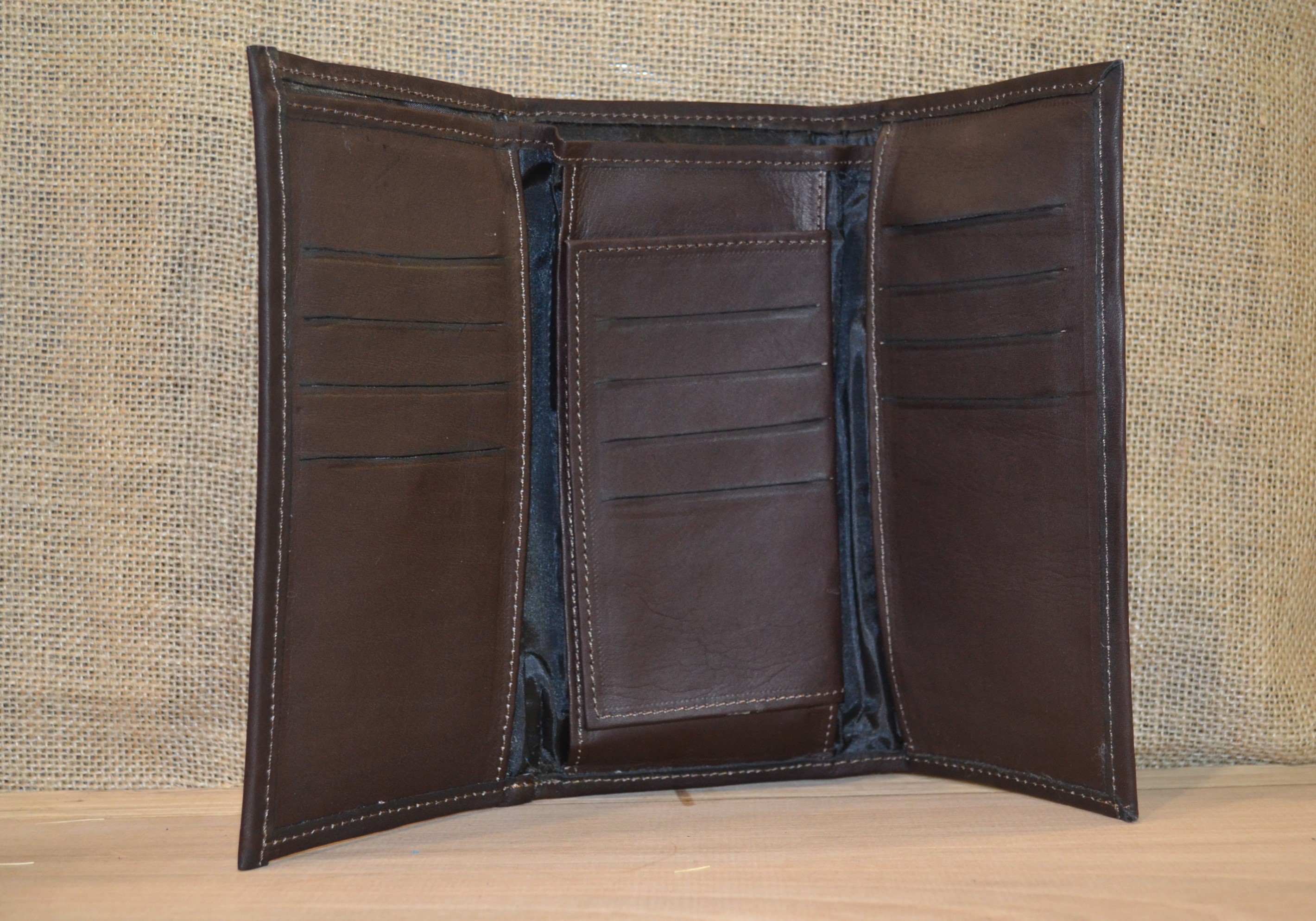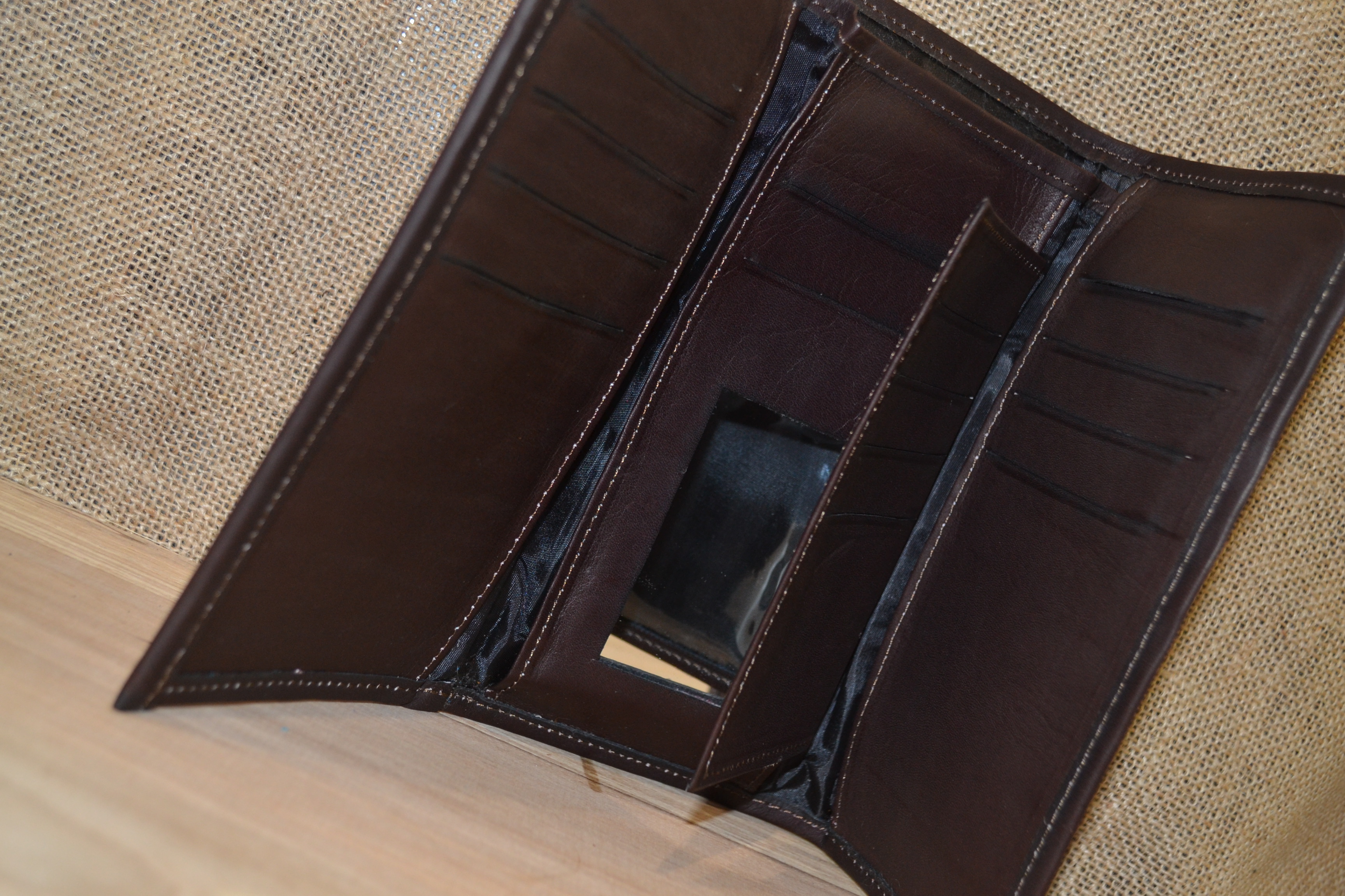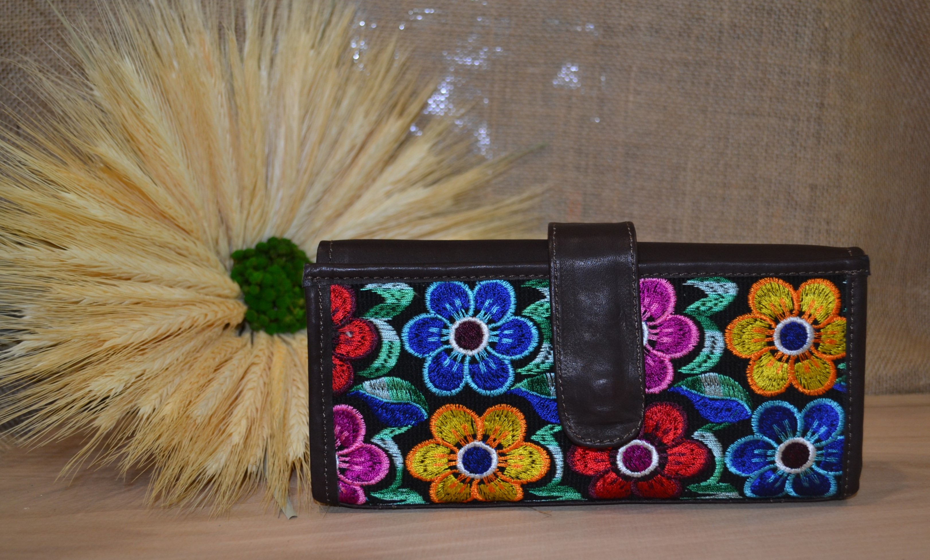 Jeśli szukasz dużego, zgrabnego , pojemnego portfela z portmonetką i lusterkiem to ten model jest dla ciebie . 100% naturalna ciemno brązowa skóra pokryta kwiatowym haftem . Zaprojektowany i uszyty wysoko w Ekwadorskich Andach przez mały rzemieślniczy warsztat kaletniczy. Portfel posiada przegrodę na banknoty i na monety a także kieszonki na karty płatnicze.