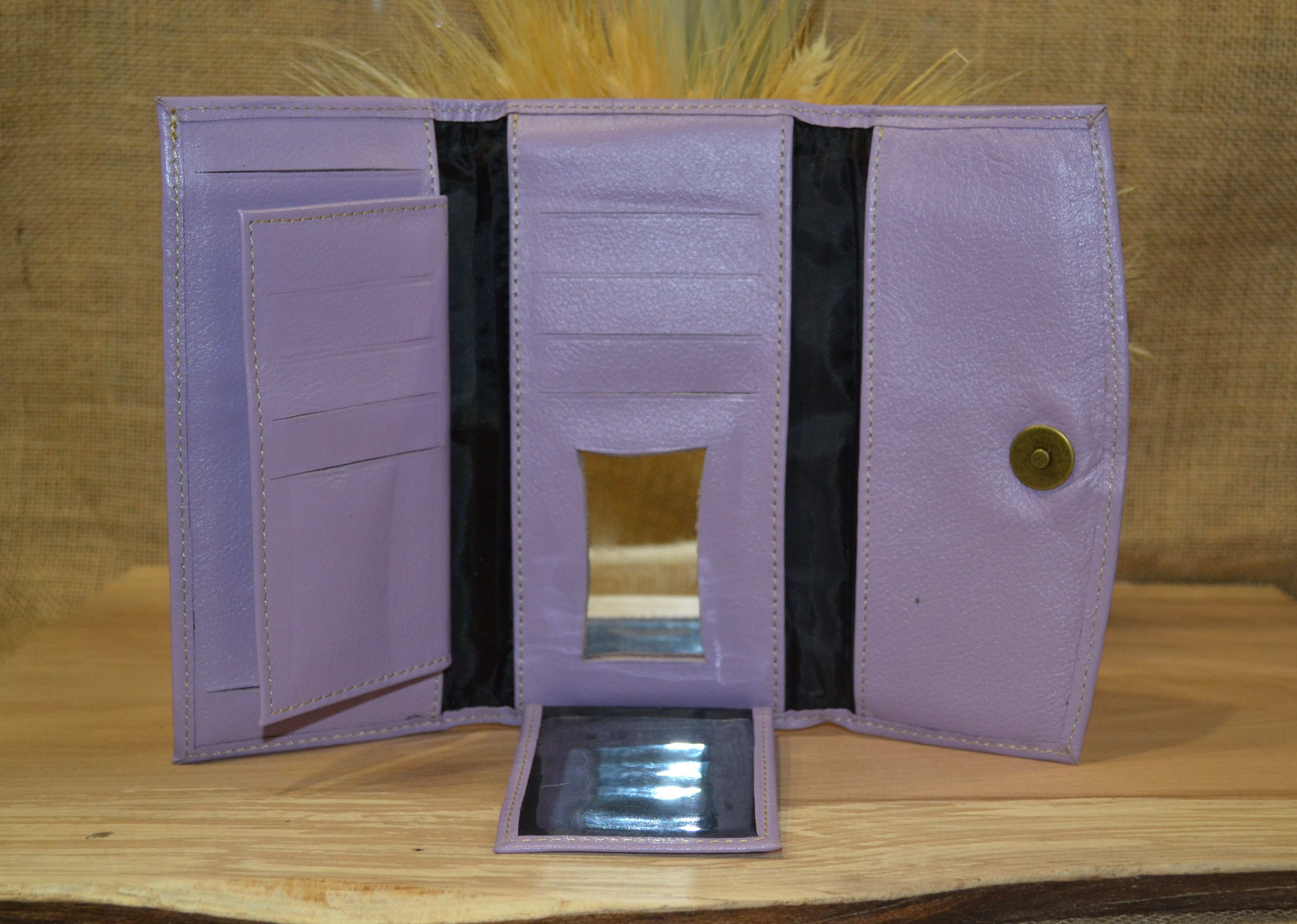 Jeśli szukasz dużego, zgrabnego , pojemnego portfela z portmonetką i lusterkiem to ten model jest dla ciebie . 100% naturalna  fioletowa  skóra pokryta kwiatowym haftem . Zaprojektowany i uszyty wysoko w Ekwadorskich Andach przez mały rzemieślniczy warsztat kaletniczy. Portfel posiada przegrodę na banknoty i na monety a także kieszonki na karty płatnicze.