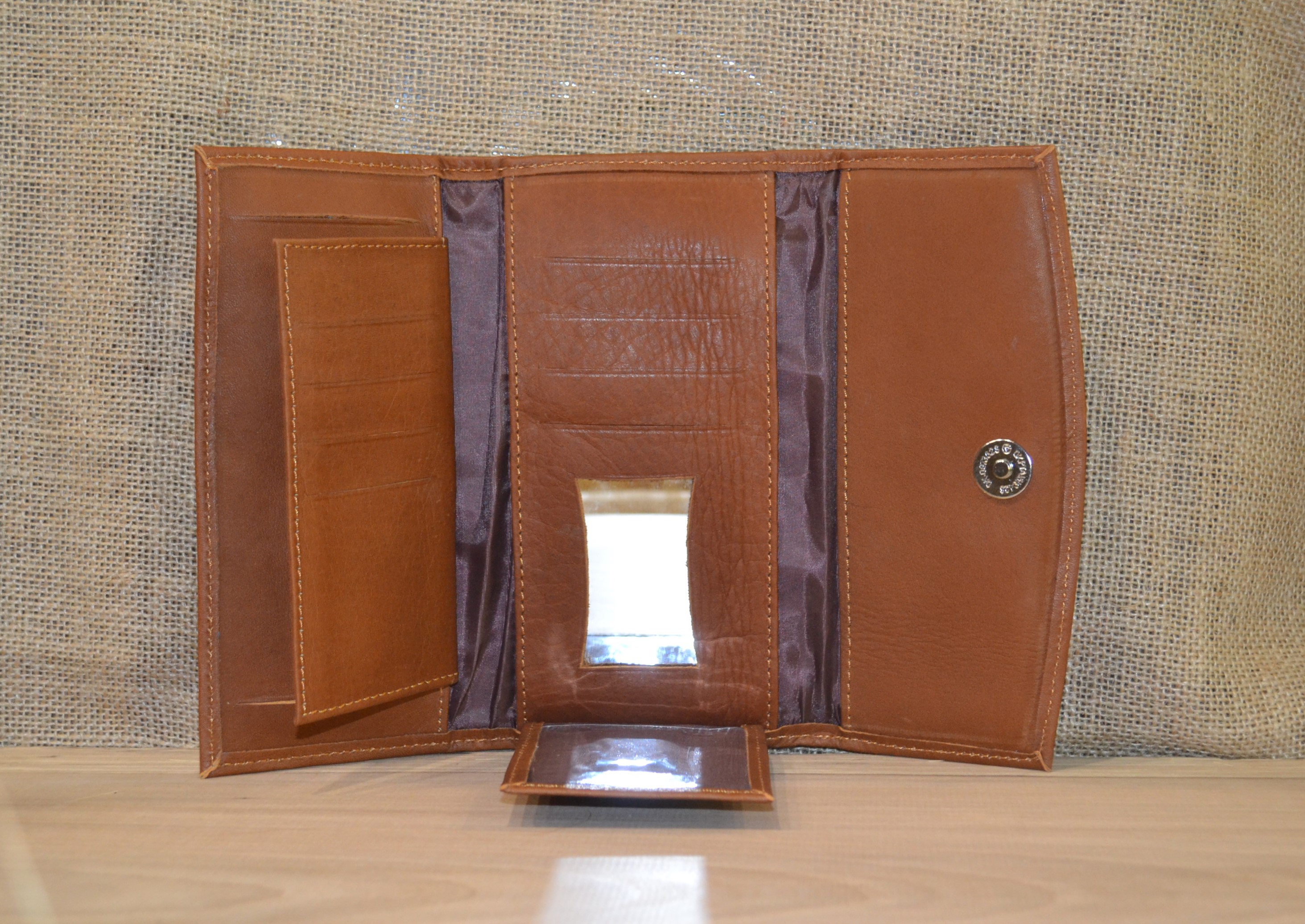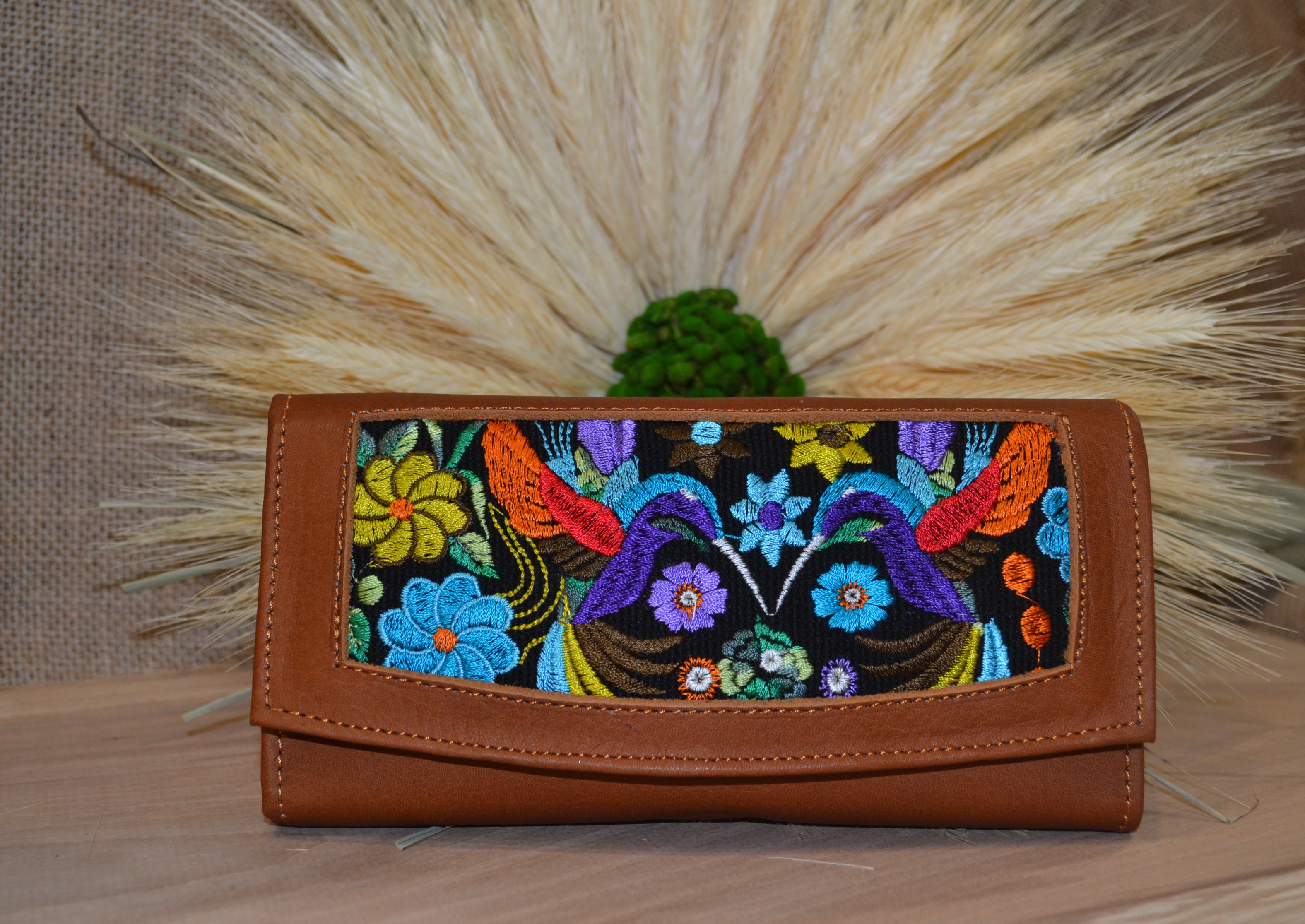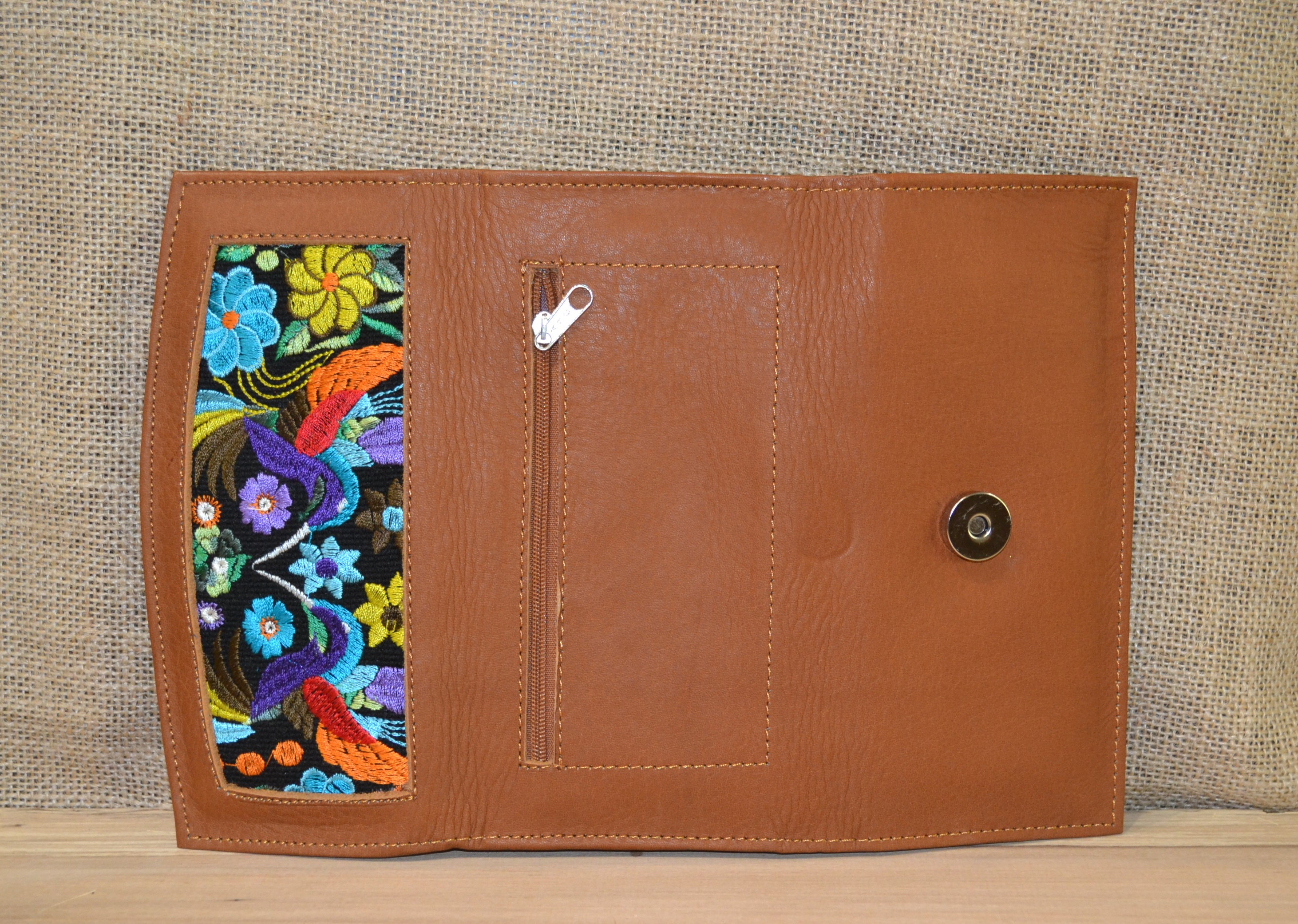 Jeśli szukasz dużego, zgrabnego , pojemnego portfela z portmonetką i lusterkiem to ten model jest dla ciebie . 100% naturalna jasno brązowa skóra pokryta kwiatowym haftem . Zaprojektowany i uszyty wysoko w Ekwadorskich Andach przez mały rzemieślniczy warsztat kaletniczy. Portfel posiada przegrodę na banknoty i na monety a także kieszonki na karty płatnicze.
