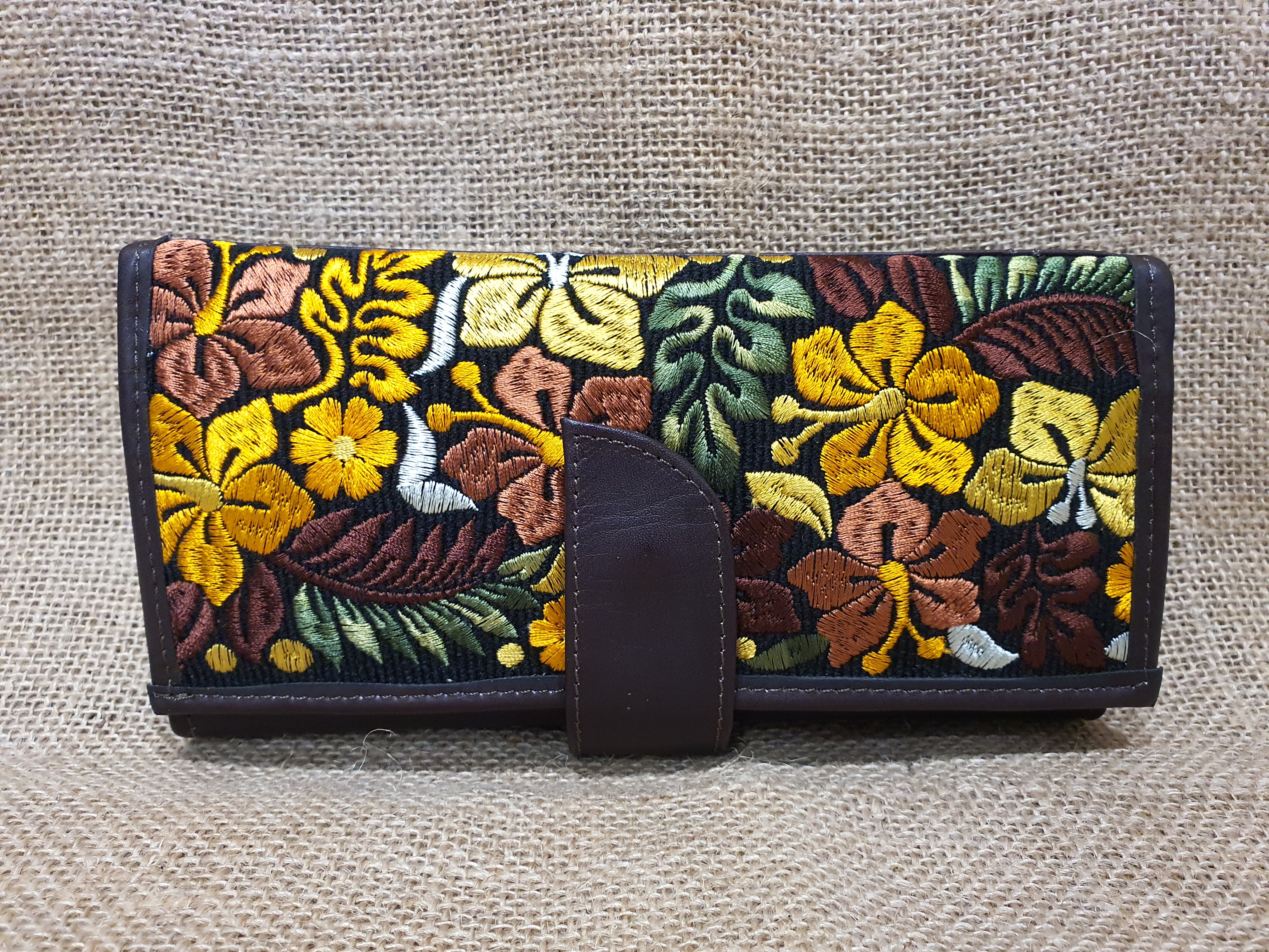 Jeśli szukasz dużego, zgrabnego , pojemnego portfela z portmonetką i lusterkiem to ten model jest dla ciebie . 100% naturalna jasnobrązowa skóra pokryta kolorowym kwiatowym haftem . Zaprojektowany i uszyty wysoko w Ekwadorskich Andach przez mały rzemieślniczy warsztat kaletniczy. Portfel posiada przegrodę na banknoty i na monety a także kieszonki na karty płatnicze.