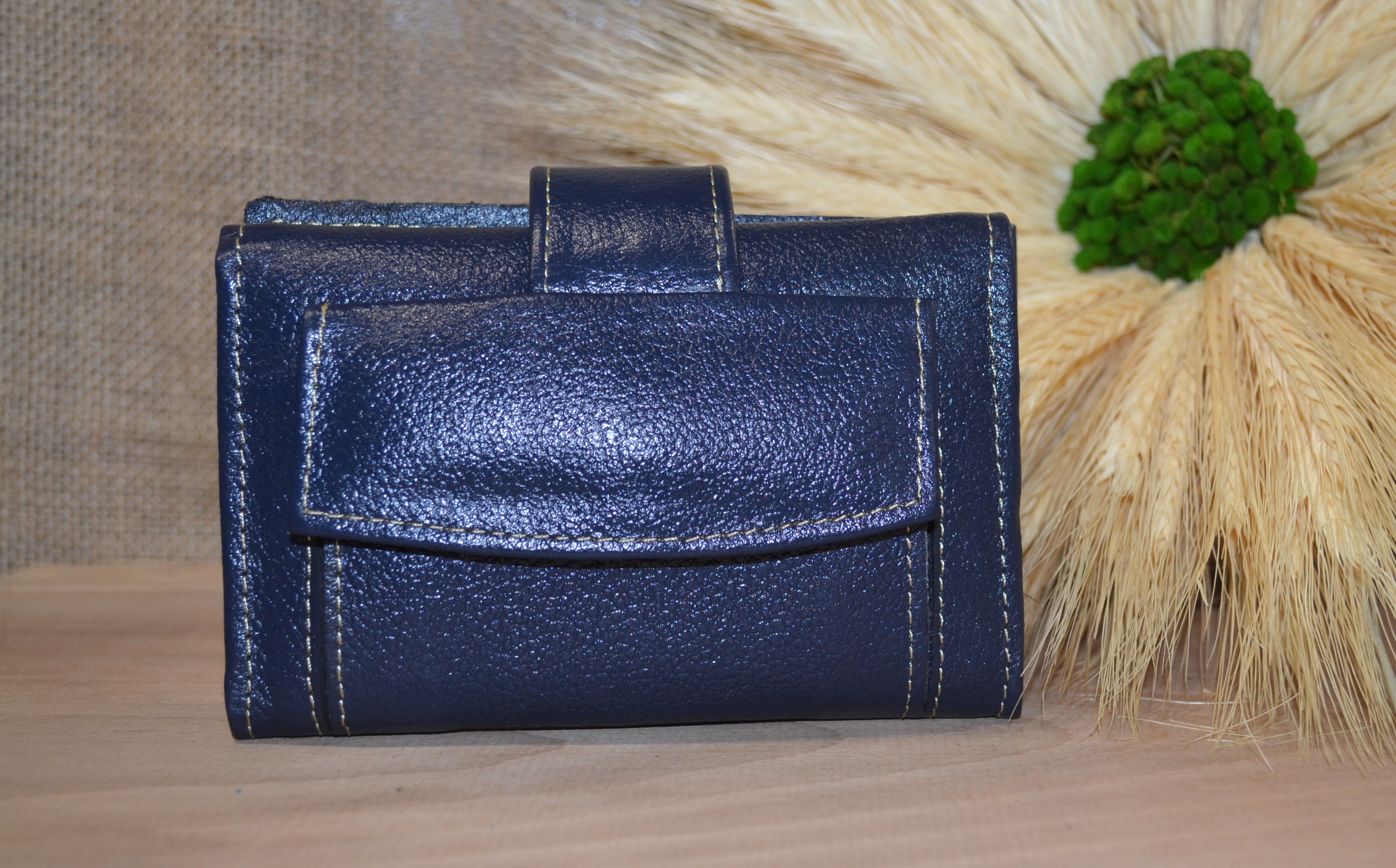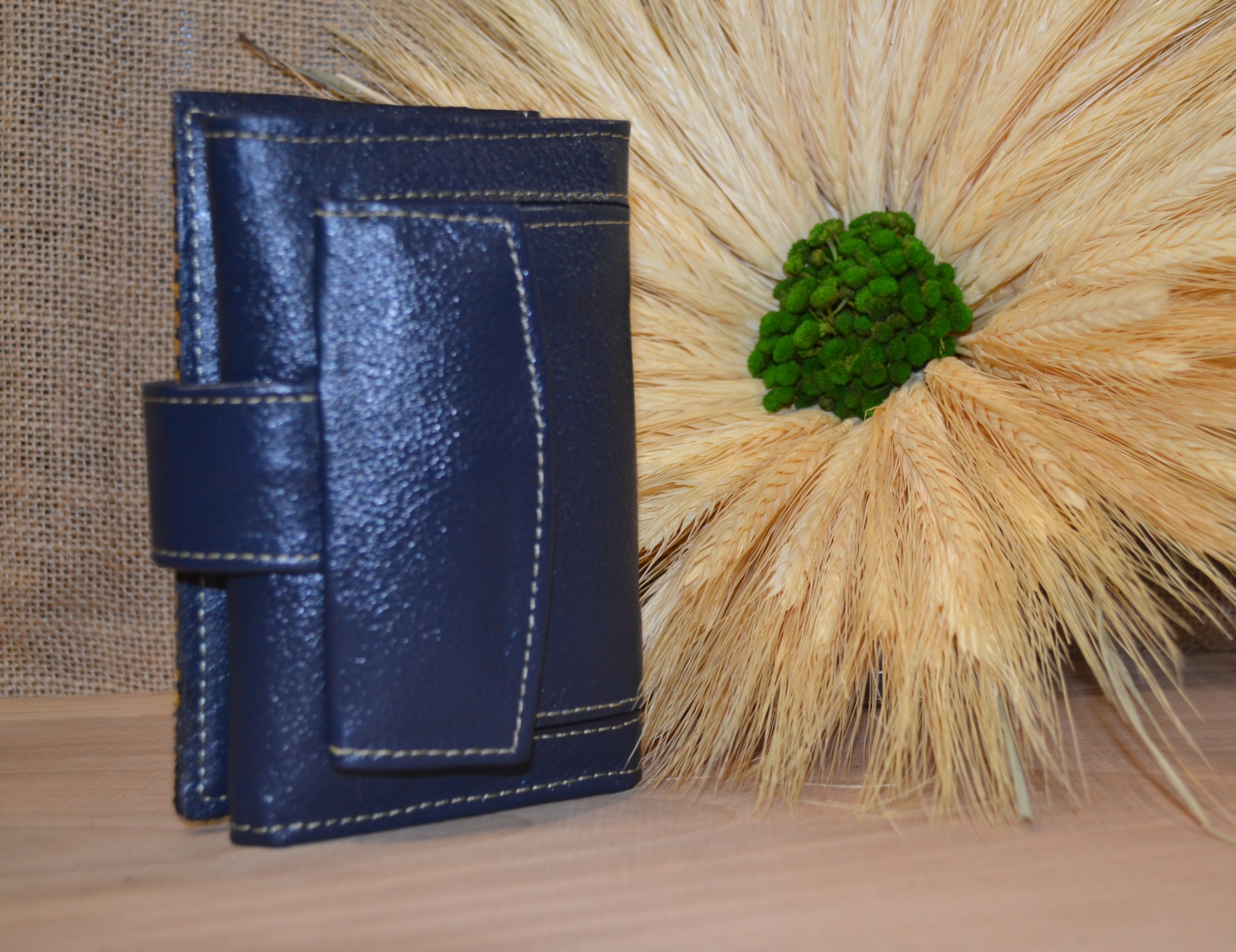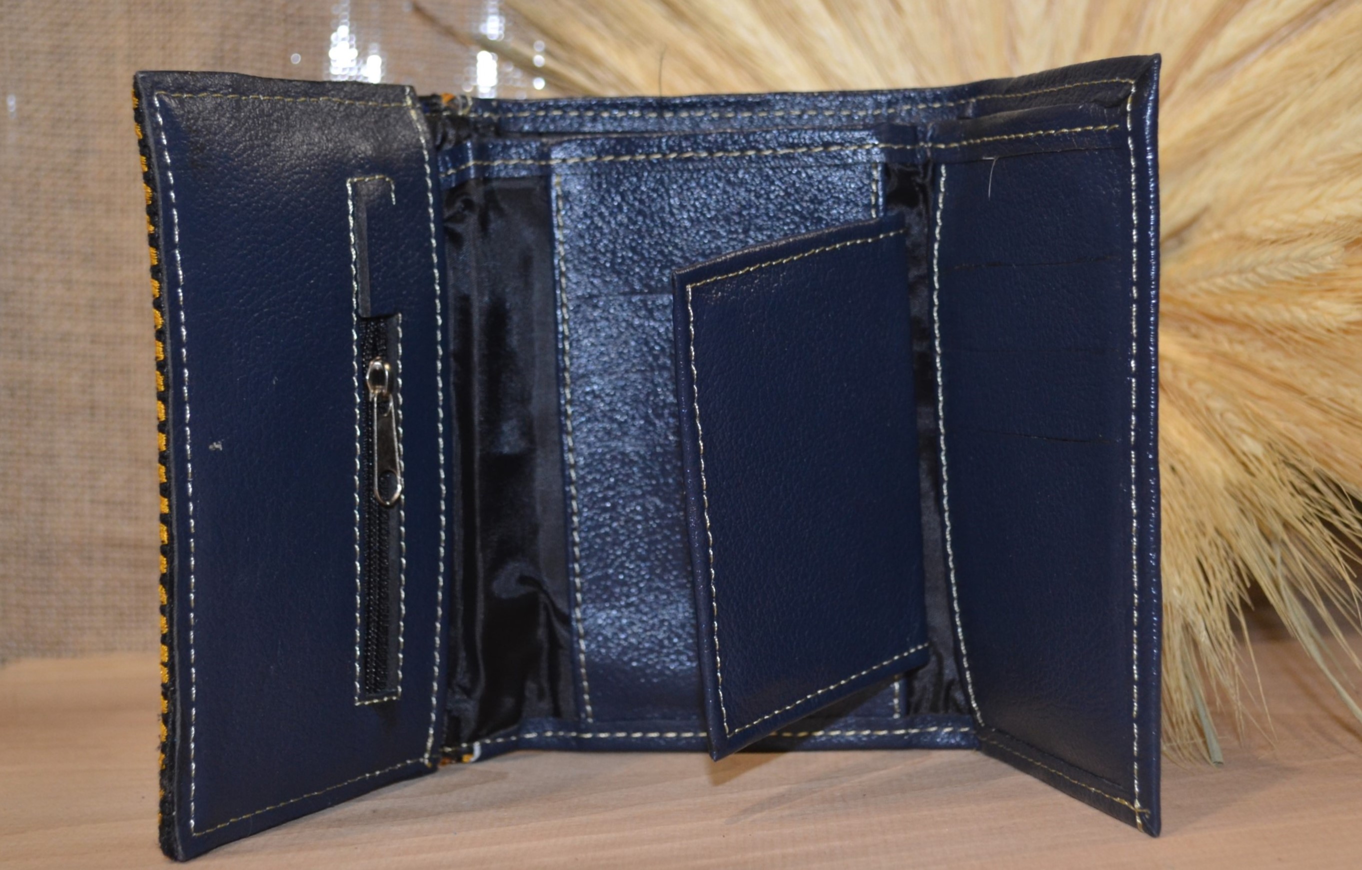 Jeśli szukasz małego zgrabnego portfela z portmonetką to ten model jest dla ciebie . 100 % naturalna granatowa skóra pokryta kwiatowym kolorowym haftem . Zaprojektowany i uszyty wysoko w Ekwadorskich Andach przez mały rzemieślniczy warsztat kaletniczy. Portfel posiada przegrodę na banknoty i na monety a także kieszonki na karty płatnicze.