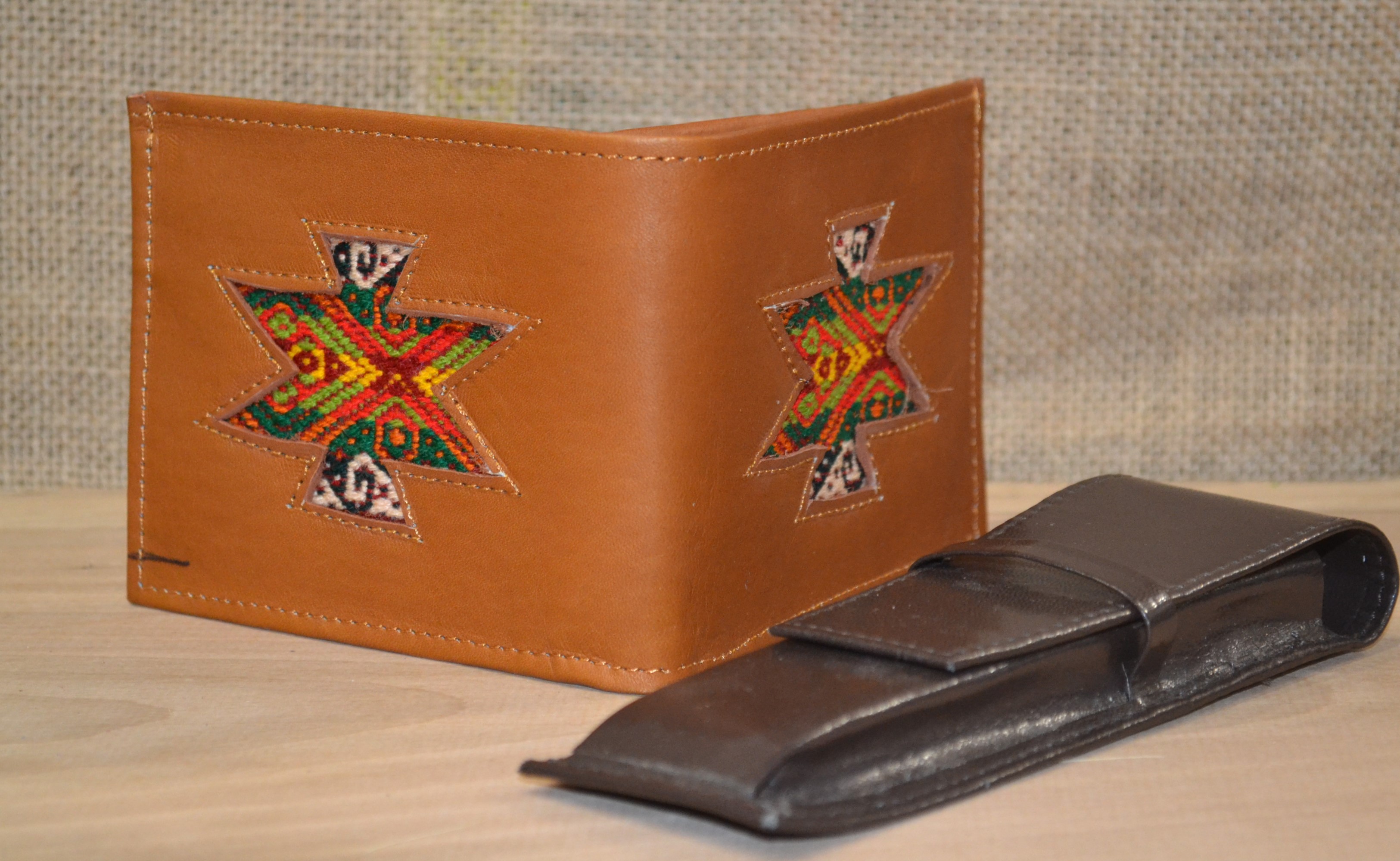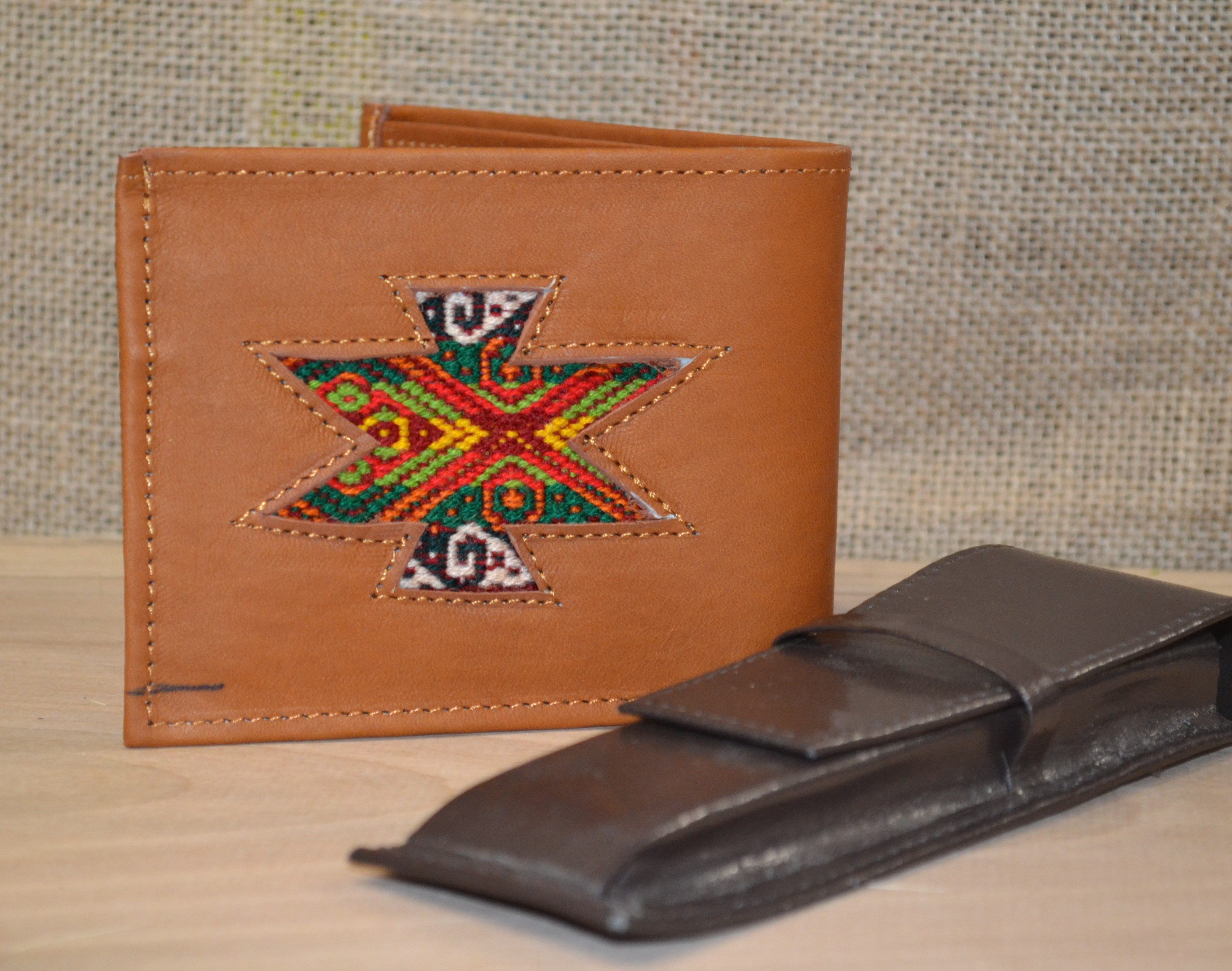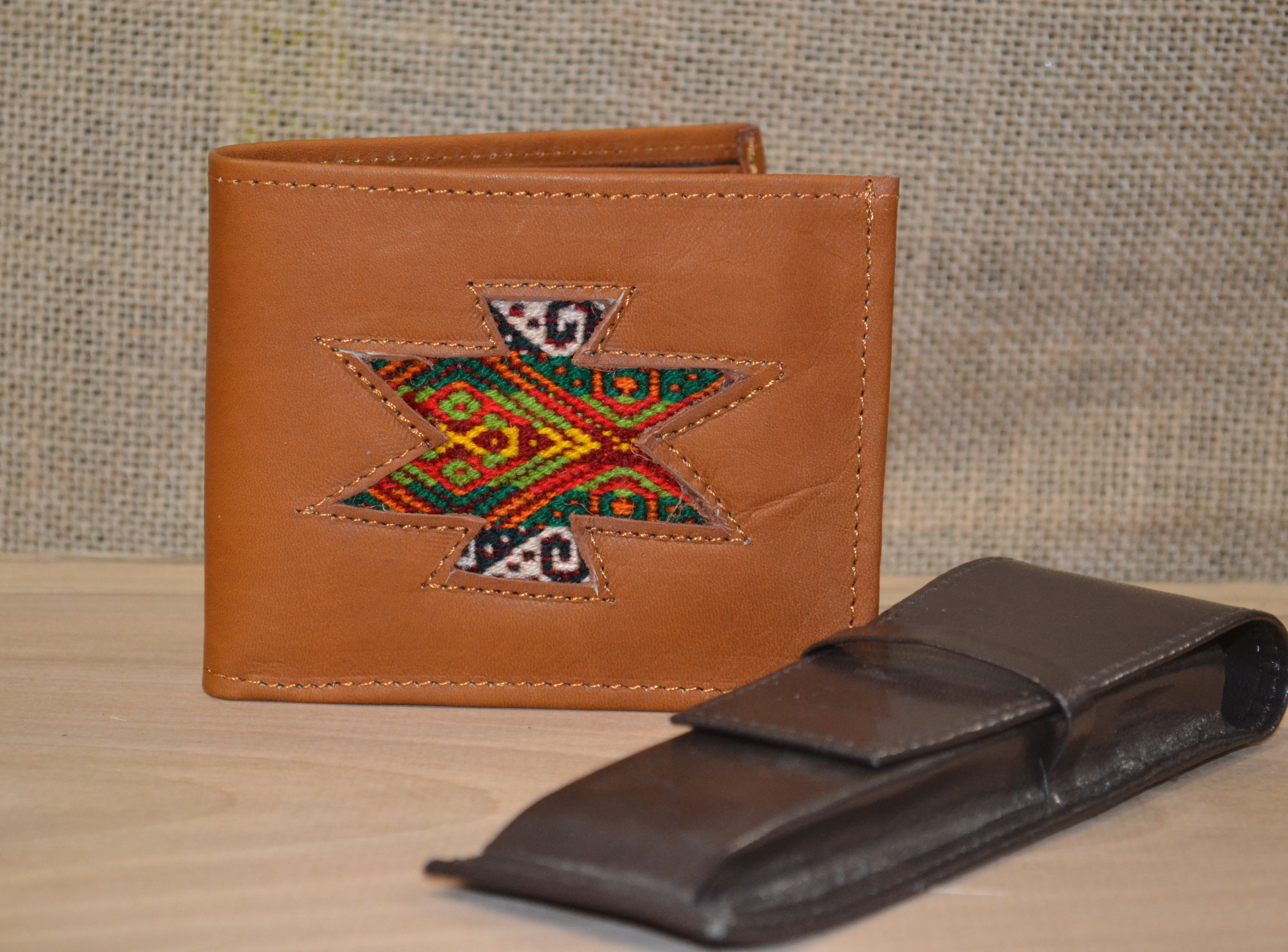 Ten gustowny i elegancki portfel doda każdemu mężczyźnie niepowtarzalnego stylu  . Wykonany w małej ekwadorskiej manufakturze . Prowadzonej od wielu lat przez rodzinę kaletników  wysoko w Andach u podnóża wulkanu Cotacachi . Uszyty ręcznie z delikatnej 100% skóry bydlęcej w brązowym kolorze co nadaje mu niesamowitą miękkość . W portfelu znajdziesz miejsce na banknoty , monety , karty płatnicze i podstawowe dokumenty . Jest również kieszonka na zdjęcie ukochanej osoby . Wszyte zdobienie wykonane jest z wełnianej tkaniny .