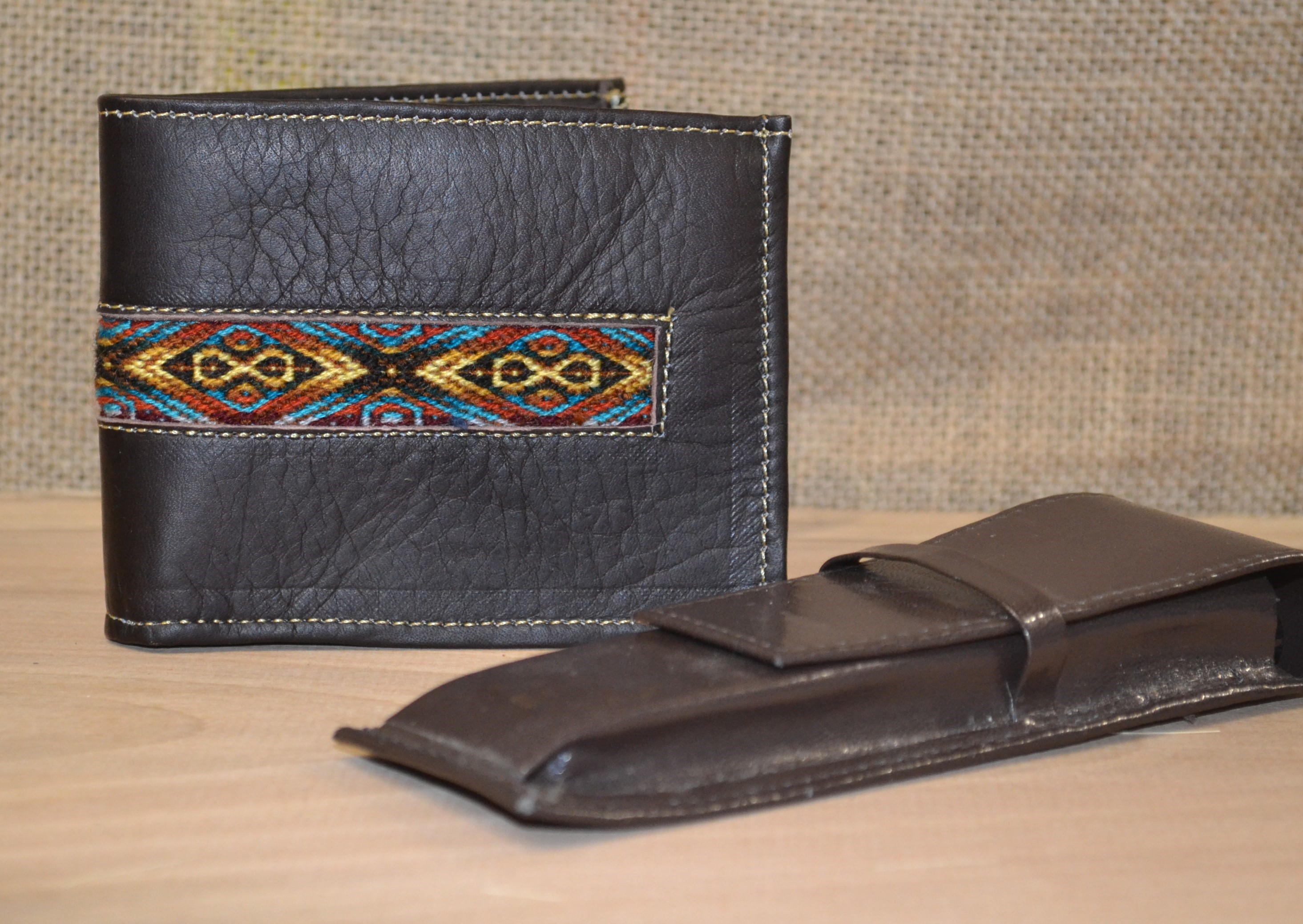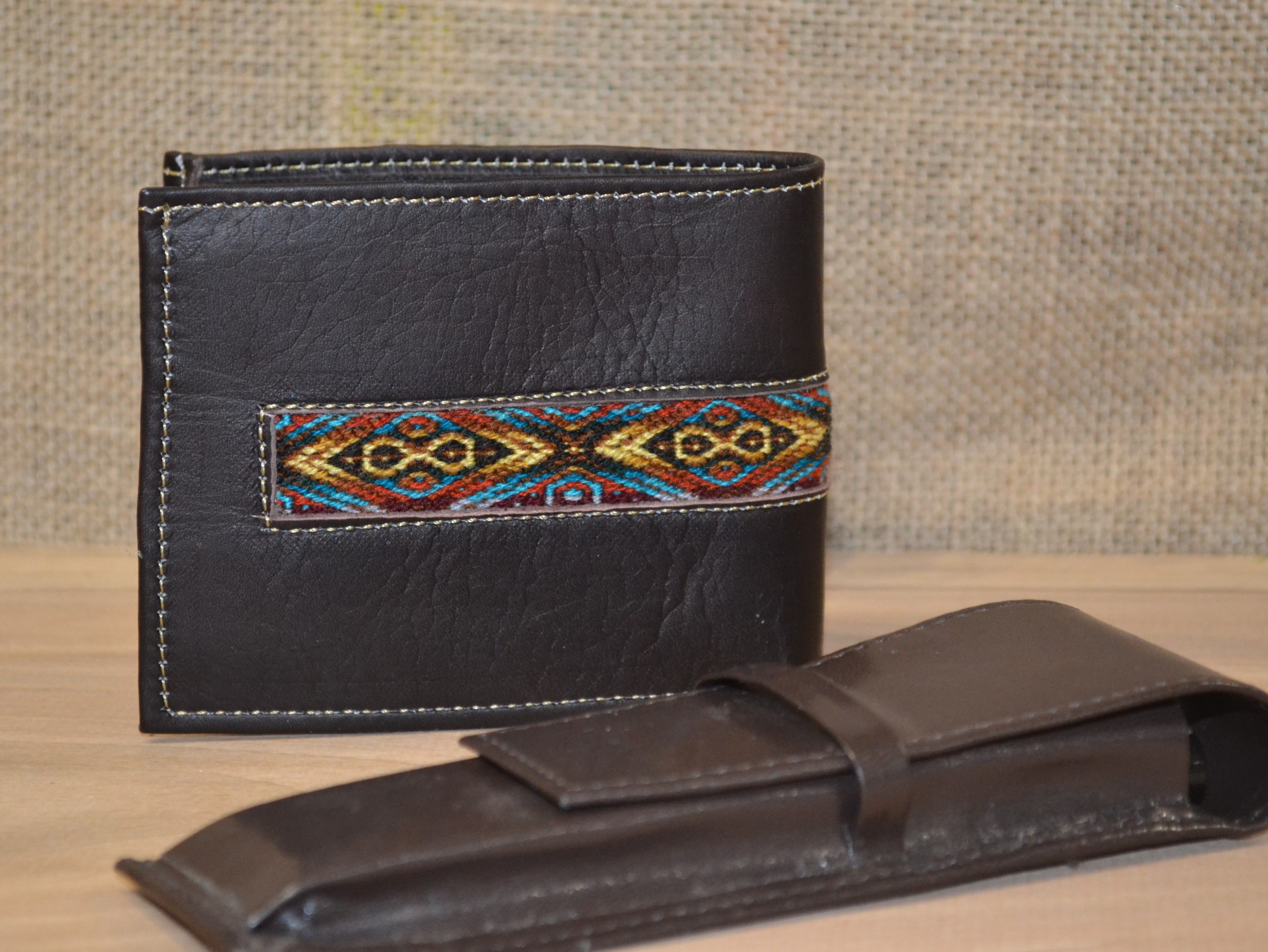 Ten gustowny i elegancki portfel doda każdemu mężczyźnie niepowtarzalnego stylu  . Wykonany w małej ekwadorskiej manufakturze . Prowadzonej od wielu lat przez rodzinę kaletników  wysoko w Andach u podnóża wulkanu Cotacachi . Uszyty ręcznie z delikatnej 100% skóry bydlęcej w czarnym kolorze co nadaje mu niesamowitą miękkość . W portfelu znajdziesz miejsce na banknoty , monety , karty płatnicze i podstawowe dokumenty . Jest również kieszonka na zdjęcie ukochanej osoby . Wszyte zdobienie wykonane jest z wełnianej tkaniny .