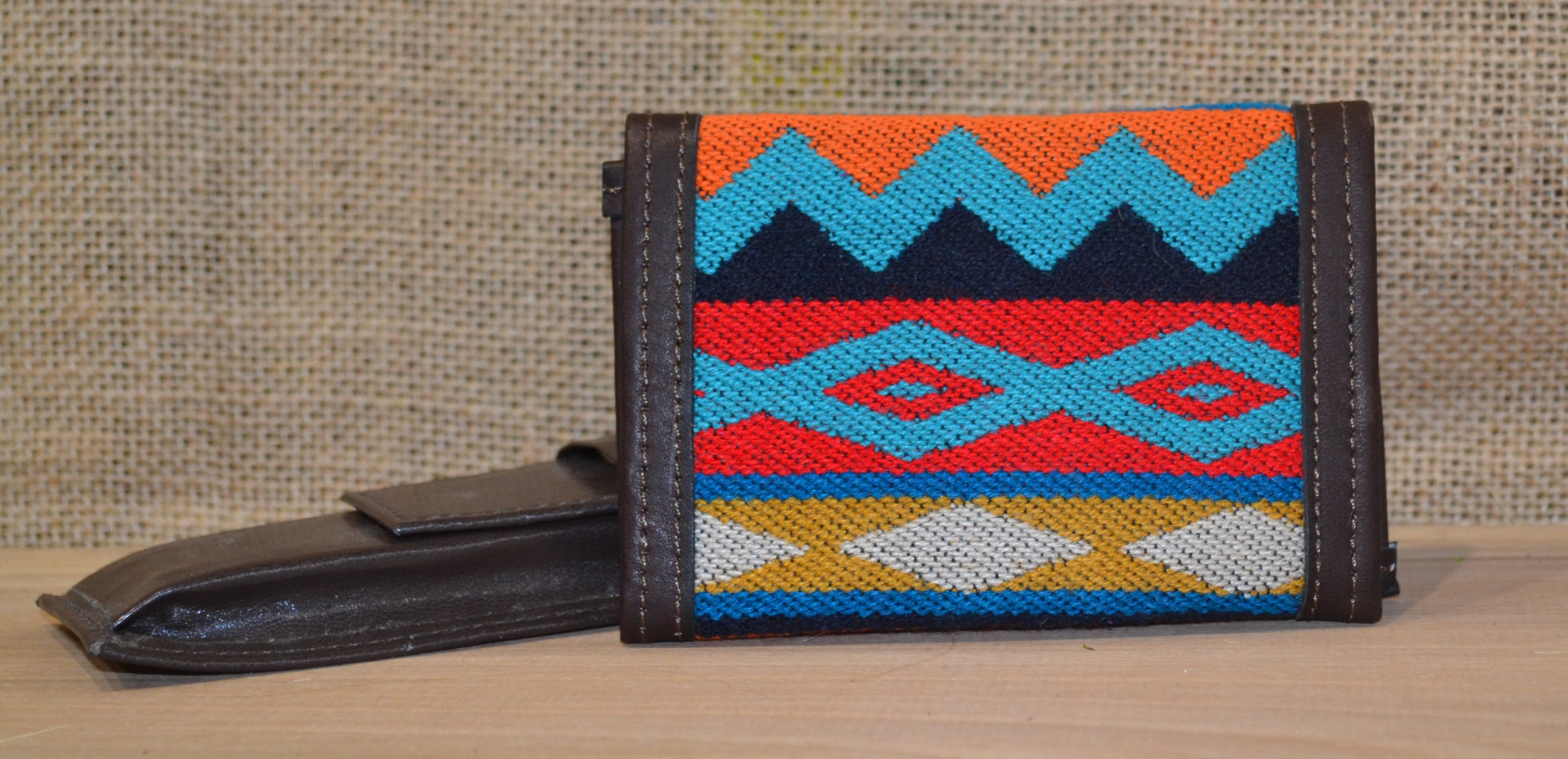 Ten gustowny i elegancki portfel doda każdemu mężczyźnie niepowtarzalnego stylu  . Wykonany w małej ekwadorskiej manufakturze . Prowadzonej od wielu lat przez rodzinę kaletników  wysoko w Andach u podnóża wulkanu Cotacachi . Uszyty ręcznie z delikatnej 100% skóry bydlęcej w ciemnobrązowym kolorze co nadaje mu niesamowitą miękkość . Haftowany etniczny wzór wykonany jest z 100% wełny owczej .W portfelu znajdziesz miejsce na banknoty , monety , karty płatnicze i podstawowe dokumenty . Jest również kieszonka na zdjęcie ukochanej osoby . Wszyte zdobienie wykonane jest z wełnianej tkaniny .