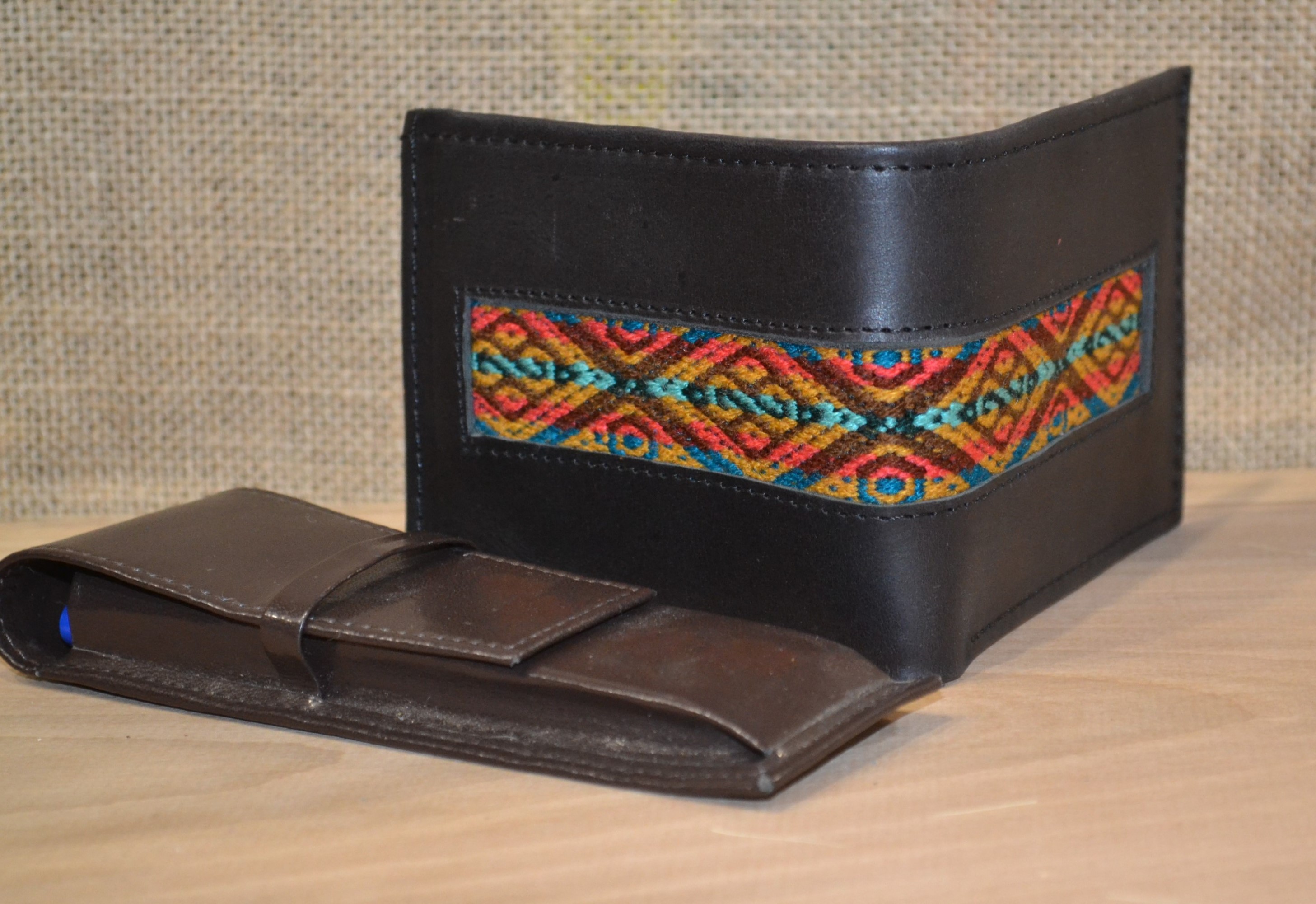 Ten gustowny i elegancki portfel doda każdemu mężczyźnie niepowtarzalnego stylu  . Wykonany w małej ekwadorskiej manufakturze . Prowadzonej od wielu lat przez rodzinę kaletników  wysoko w Andach u podnóża wulkanu Cotacachi . Uszyty ręcznie z delikatnej 100% skóry bydlęcej w czarnym kolorze co nadaje mu niesamowitą miękkość . W portfelu znajdziesz miejsce na banknoty , monety , karty płatnicze i podstawowe dokumenty . Jest również kieszonka na zdjęcie ukochanej osoby . Wszyte zdobienie wykonane jest z wełnianej tkaniny .