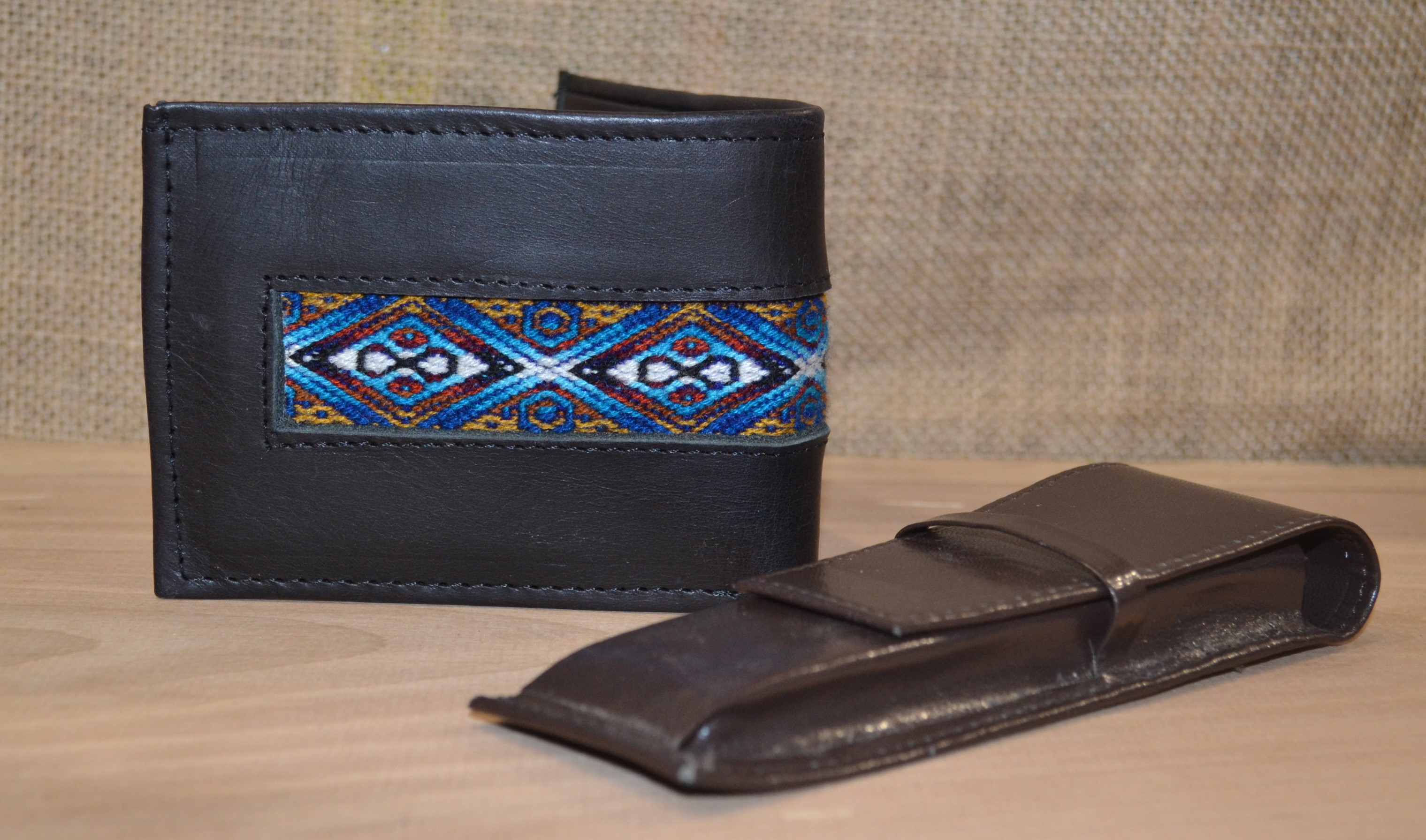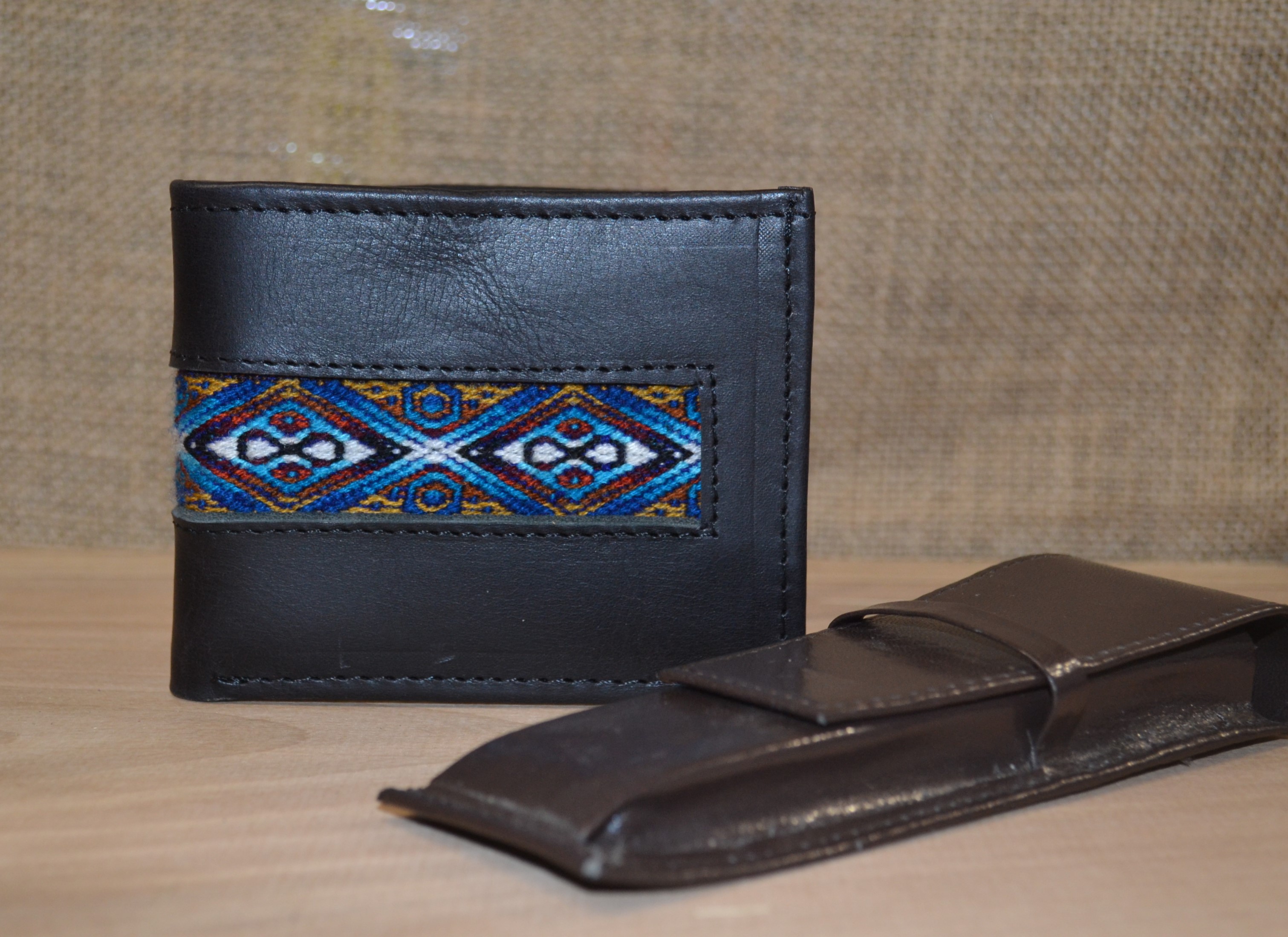 Ten gustowny i elegancki portfel doda każdemu mężczyźnie niepowtarzalnego stylu  . Wykonany w małej ekwadorskiej manufakturze . Prowadzonej od wielu lat przez rodzinę kaletników  wysoko w Andach u podnóża wulkanu Cotacachi . Uszyty ręcznie z delikatnej 100% skóry bydlęcej w czarnym kolorze co nadaje mu niesamowitą miękkość . W portfelu znajdziesz miejsce na banknoty , monety , karty płatnicze i podstawowe dokumenty . Jest również kieszonka na zdjęcie ukochanej osoby . Wszyte zdobienie wykonane jest z wełnianej tkaniny .