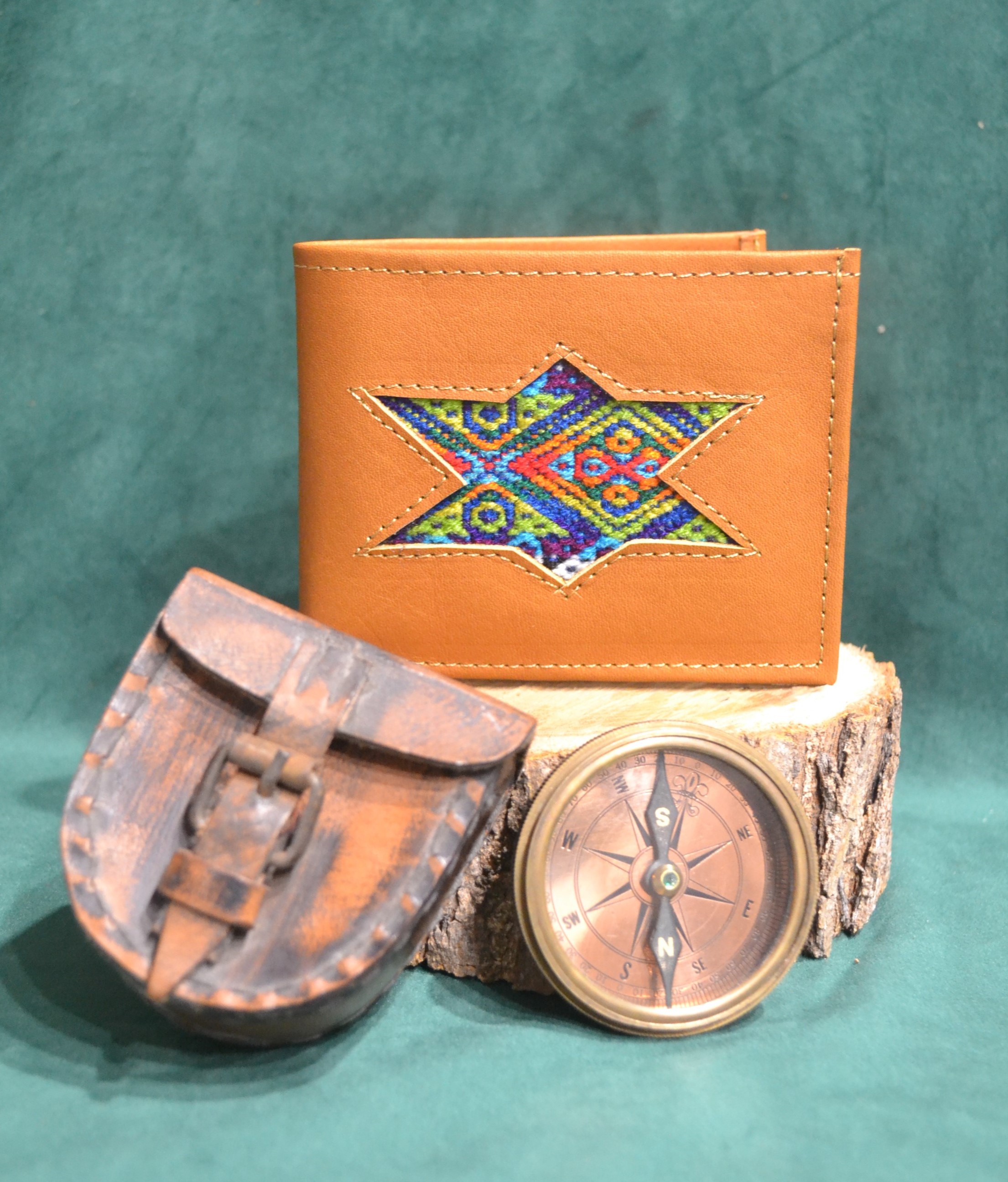 Ten gustowny i elegancki portfel doda każdemu mężczyźnie niepowtarzalnego stylu  . Wykonany w małej ekwadorskiej manufakturze . Prowadzonej od wielu lat przez rodzinę kaletników  wysoko w Andach u podnóża wulkanu Cotacachi . Uszyty ręcznie z delikatnej skóry bydlęcej co nadaje mu niesamowitą miękkość . W portfelu znajdziesz miejsce na banknoty , monety , karty płatnicze i podstawowe dokumenty . Jest również kieszonka na zdjęcie ukochanej osoby . Wszyte zdobienie wykonane jest z wełnianej tkaniny .