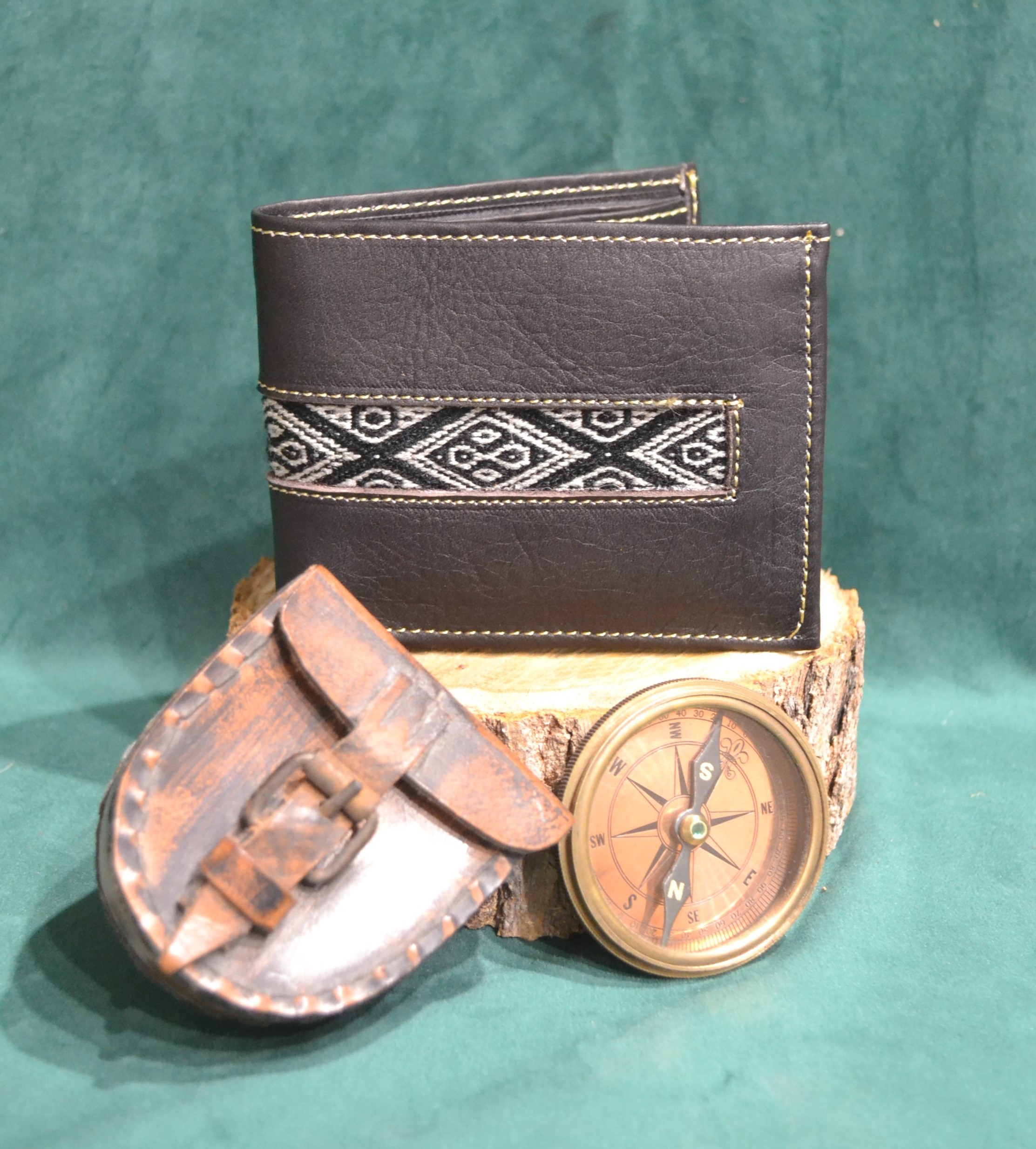 Ten gustowny i elegancki portfel doda każdemu mężczyźnie niepowtarzalnego stylu  . Wykonany w małej ekwadorskiej manufakturze . Prowadzonej od wielu lat przez rodzinę kaletników  wysoko w Andach u podnóża wulkanu Cotacachi . Uszyty ręcznie z delikatnej skóry bydlęcej co nadaje mu niesamowitą miękkość . W portfelu znajdziesz miejsce na banknoty , monety , karty płatnicze i podstawowe dokumenty . Jest również kieszonka na zdjęcie ukochanej osoby . Wszyte zdobienie wykonane jest z wełnianej tkaniny .