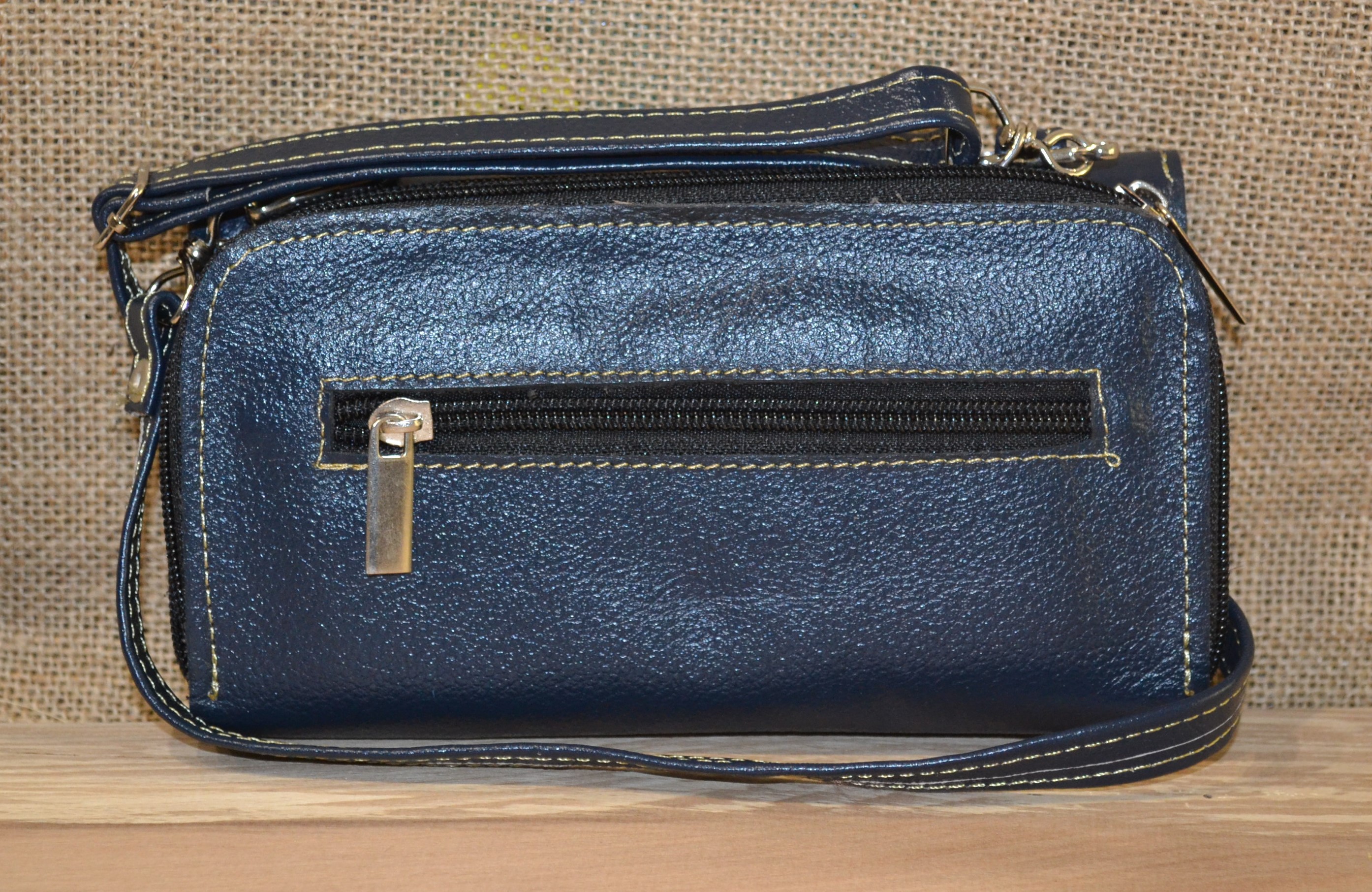 Kiedy duży portfel to dla ciebie za mało a torebka zabiera  zbyt  wiele miejsca . Mamy dla ciebie pośrednie rozwiązanie. Ten wielofunkcyjny portfel kryje w sobie wiele ciekawych rozwiązań których nie znajdziesz nigdzie indziej . Przegroda na banknoty i na bilon . kieszonki na karty płatnicze i dokumenty . Miejsce na mały notes i na zdjęcie ukochanej osoby. Zmieścisz tu też kluczyk od auta i domu . Możesz używać jako portfel a odpinając pasek stworzysz niewielką lecz piękną i funkcjonalną torebkę .100% skóra w granatowym kolorze dodaje mu eleganci i klasy a kolorowy kwiatowy haft nadaje niepowtarzalności i charakteru .