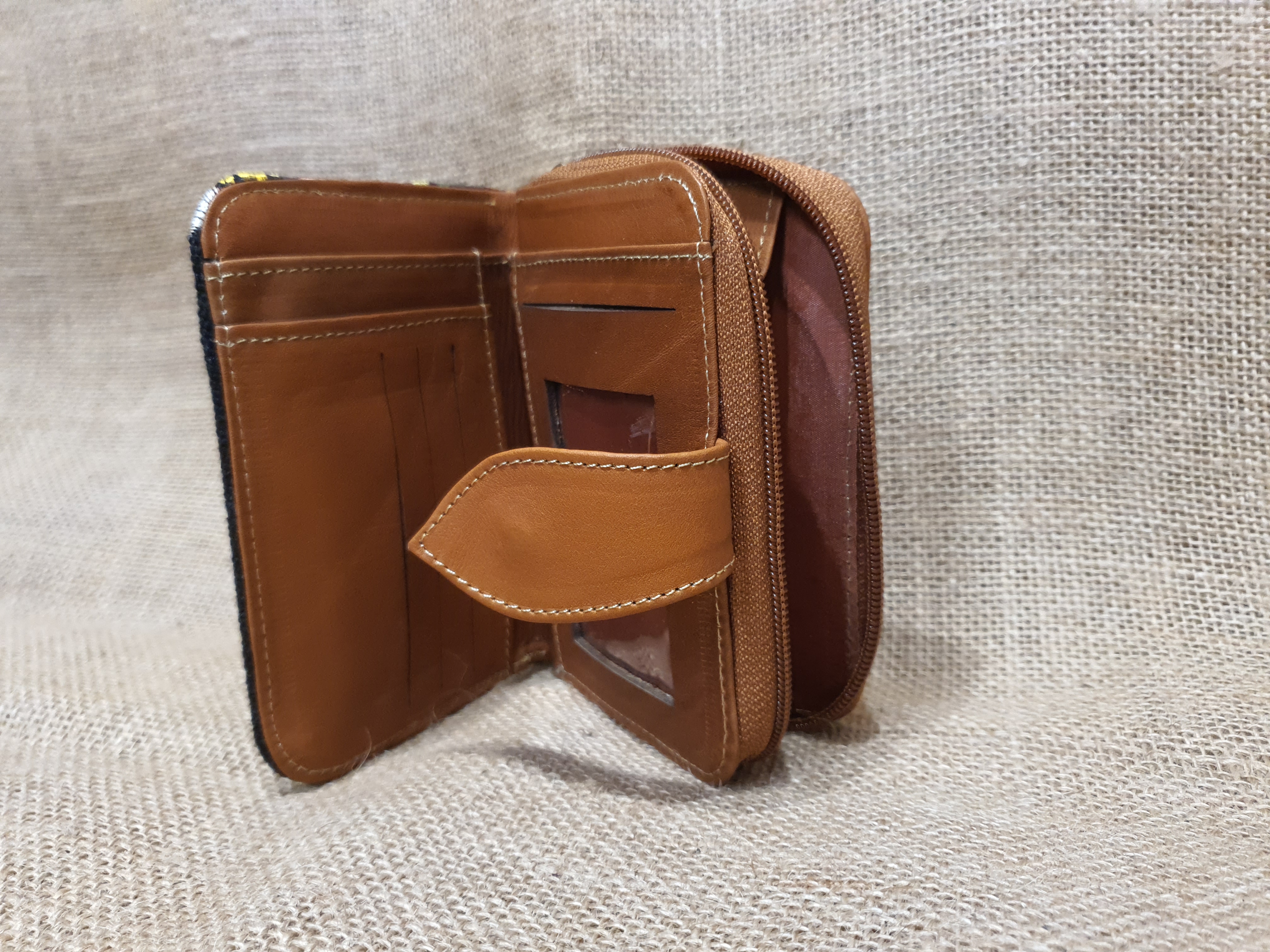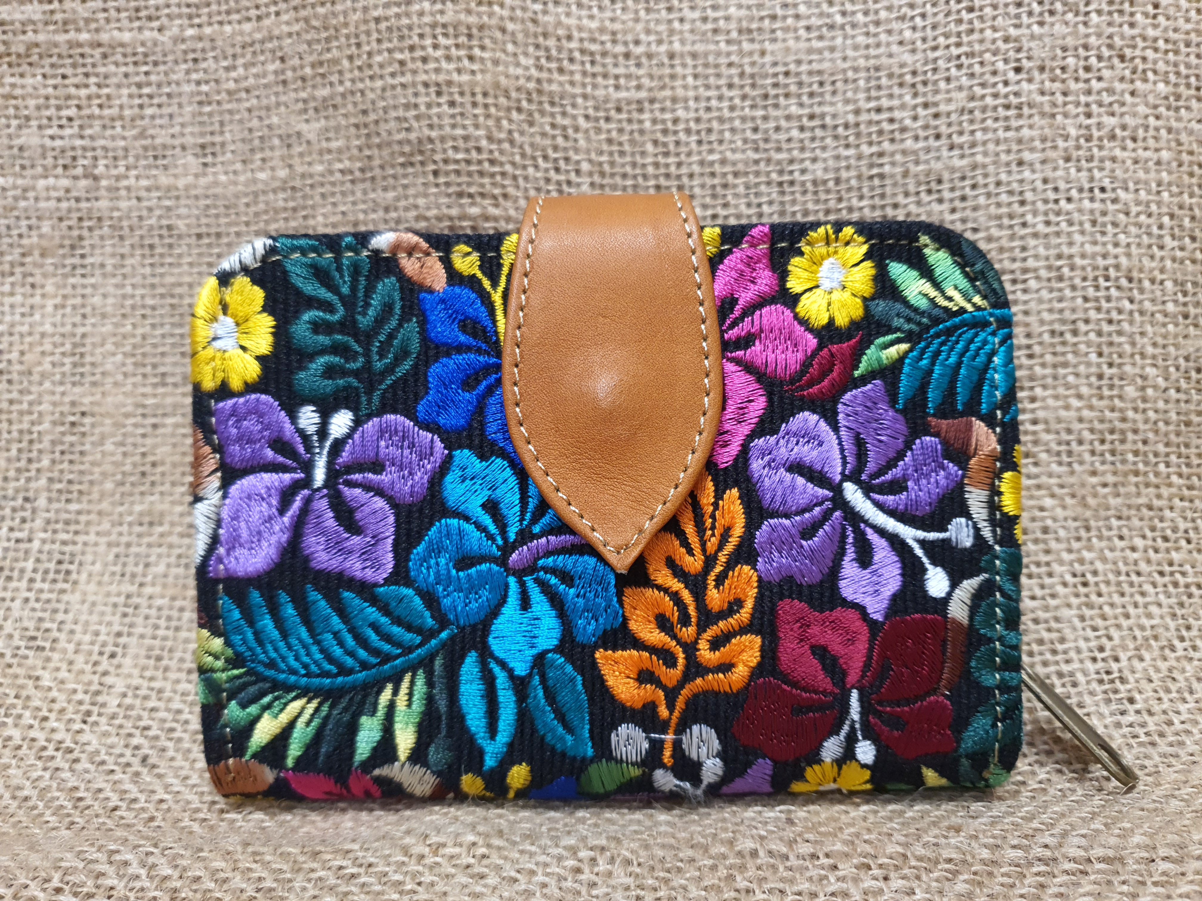 Jeśli potrzebny Tobie mały portfel z portmonetką .  Taki który nie zajmuje wiele miejsca  lub idealnie mieści się w dłoni . Na szybkie zakupy w małym osiedlowym sklepie lub w wielkim markecie .  Zobacz ten model . 100% naturalna jasnobrązowa skóra pokryta kolorowym  kwiatowym haftem . Zaprojektowany i uszyty wysoko w Ekwadorskich Andach przez mały rzemieślniczy warsztat kaletniczy. Portfel posiada przegrodę na banknoty i na monety a także kieszonki na karty płatnicze.