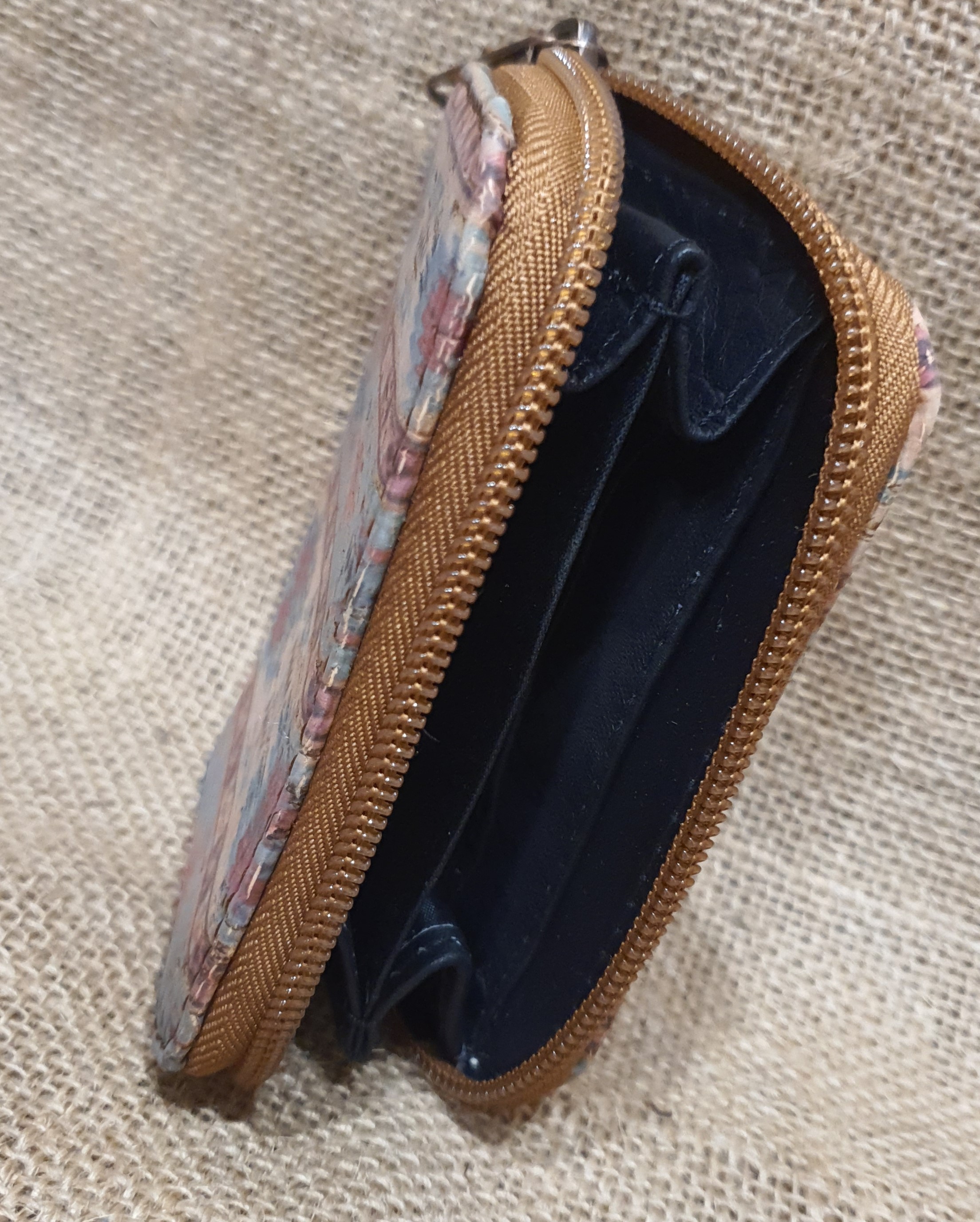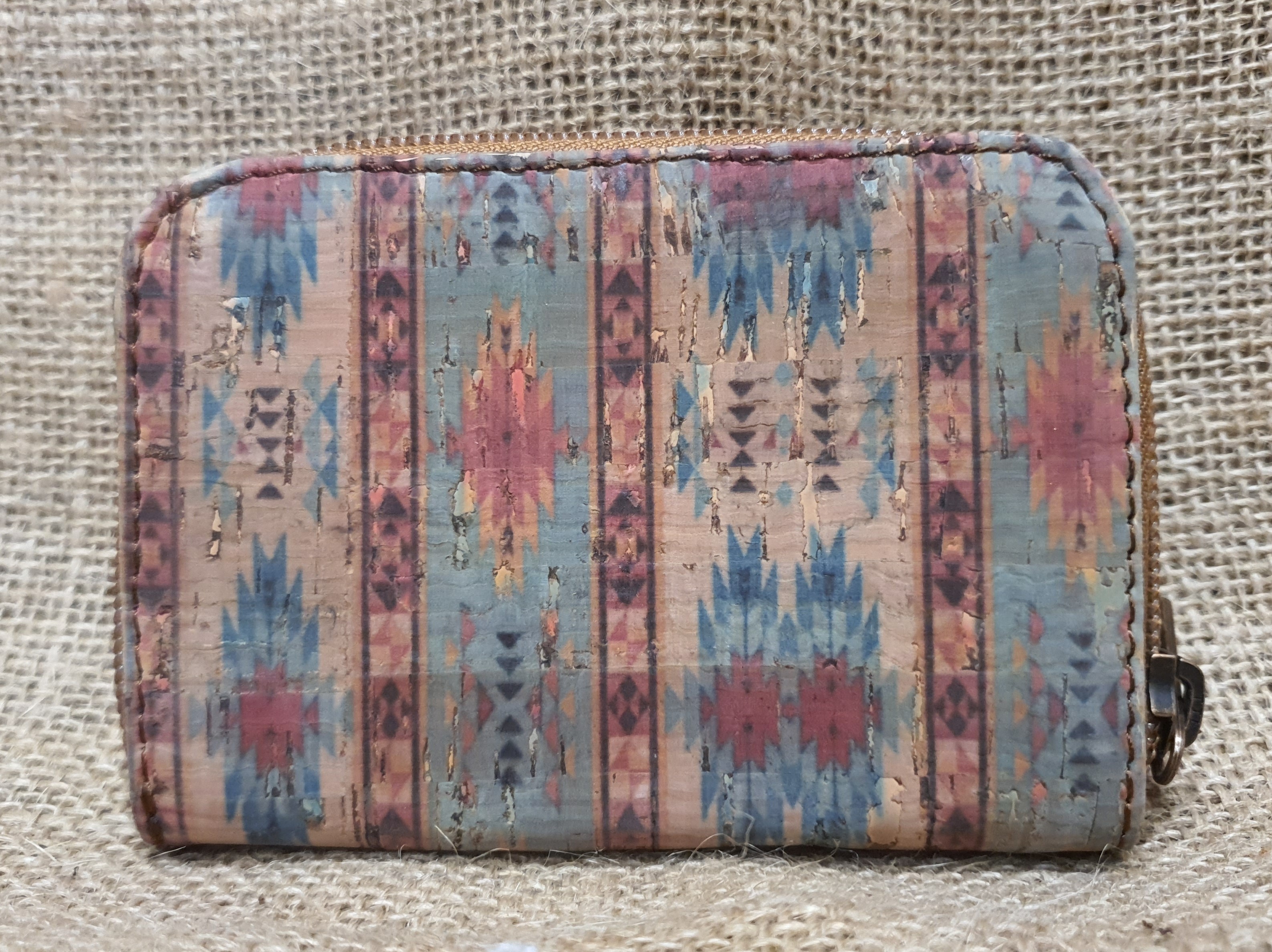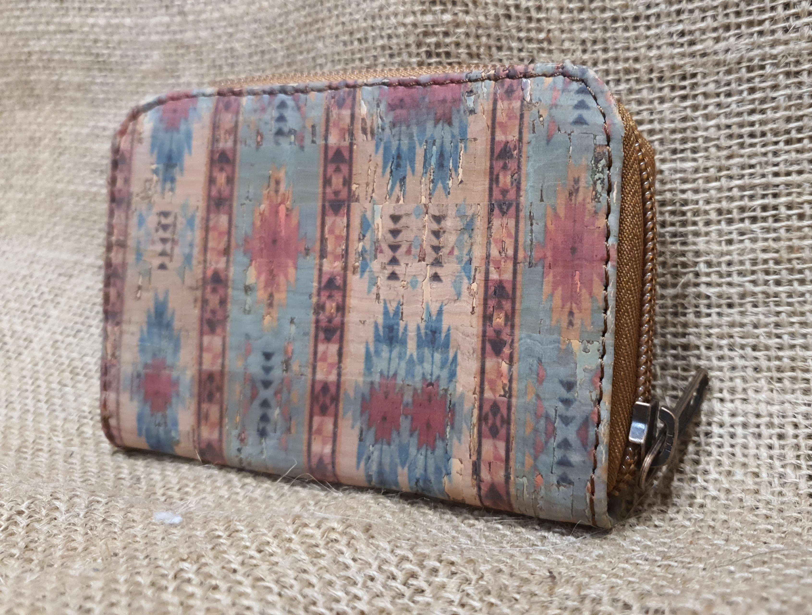 Portmonetka ze skóry i korka  mała jasnobrązowa .
