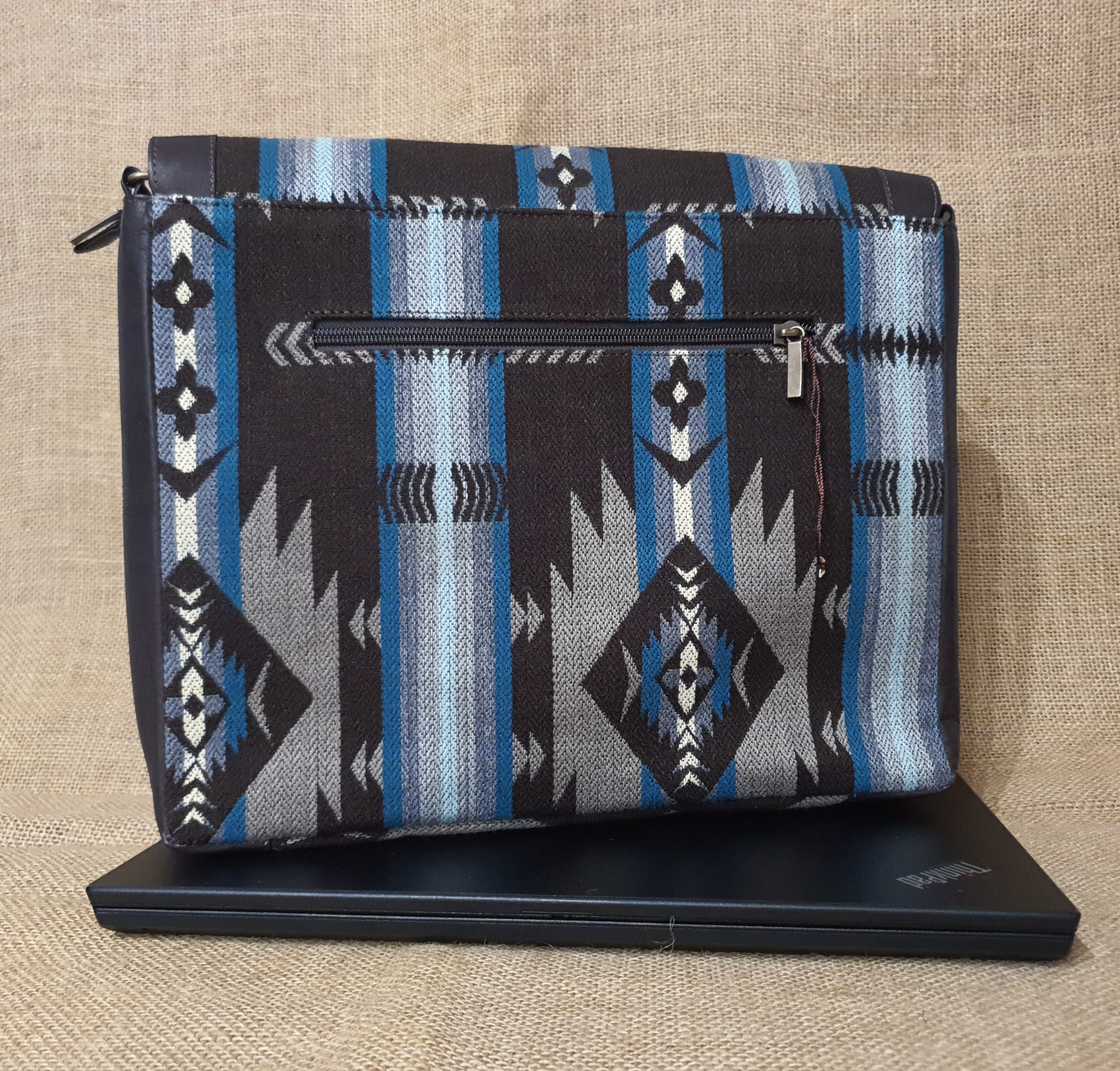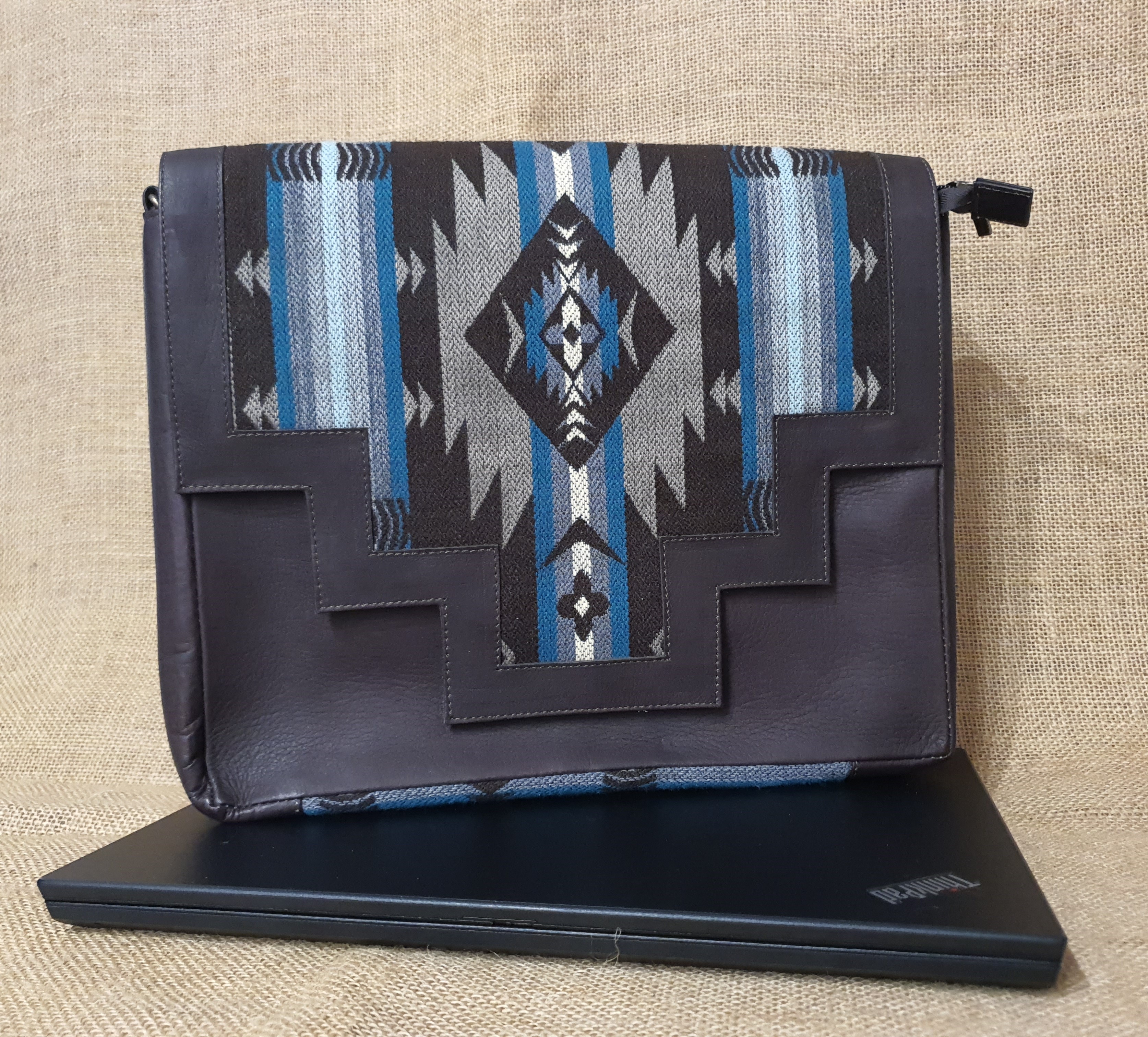 Jeśli szukasz funkcjonalnej torby , do szkoły , na wykłady lub do pracy . Przedstawiamy tę opcję . Eleganckie połączenie 100 % skóry , wełnianej tkaniny z wzorem etnicznym Indian kechua z nowoczesnym stylem i elegancją oraz dbałością o najmniejsze detale .Torba ta posiada wiele miejsca na notatki , dokumenty Tablet , lub małego laptopa . Idealna na spotkania biznesowe . Wewnątrz posiada dwie małe kieszonki w jednej centralnej przegrodzie zamykanej na zamek błyskawiczny . całość zamykana klapą z zatrzaskami magnetycznymi .