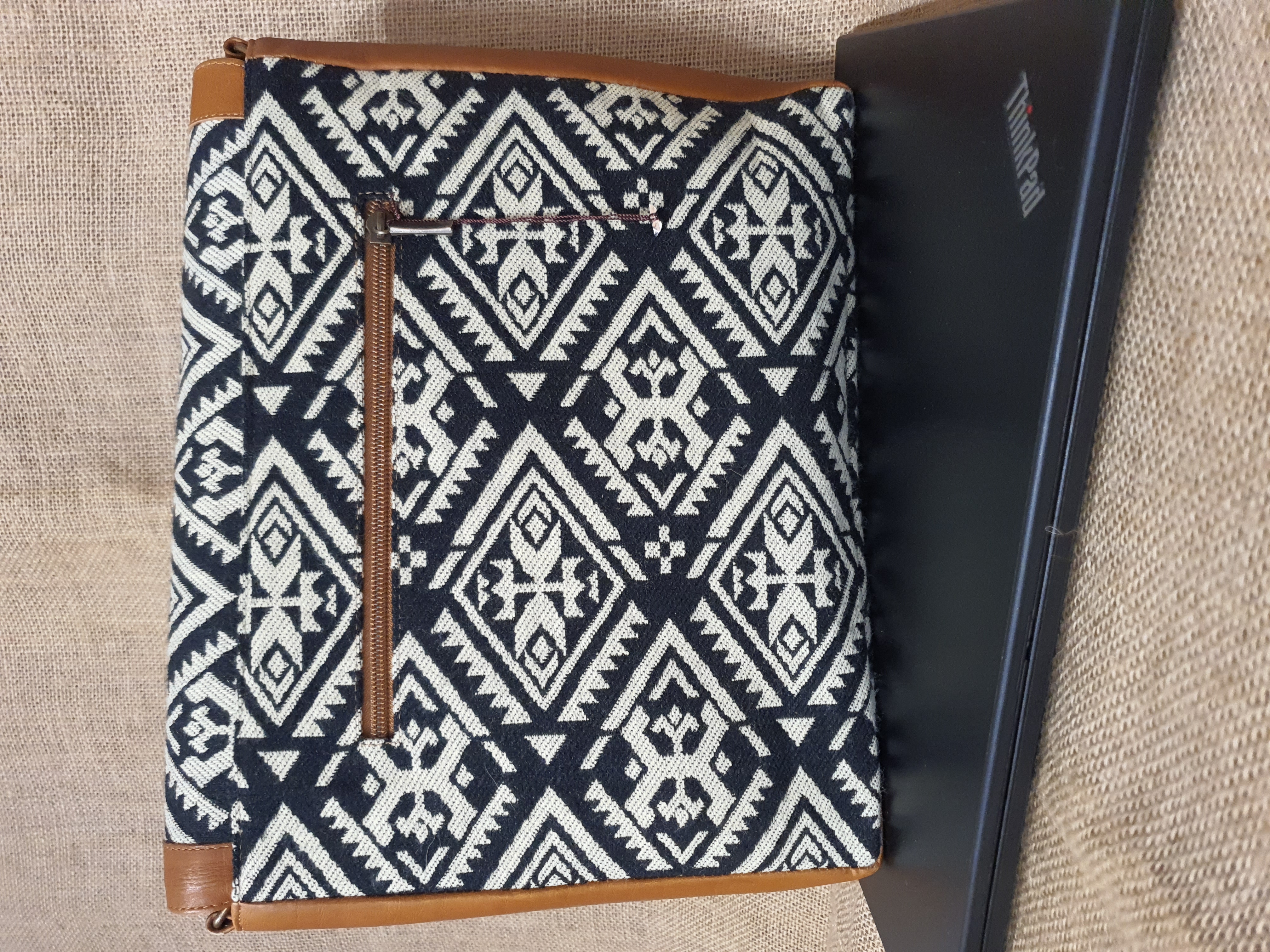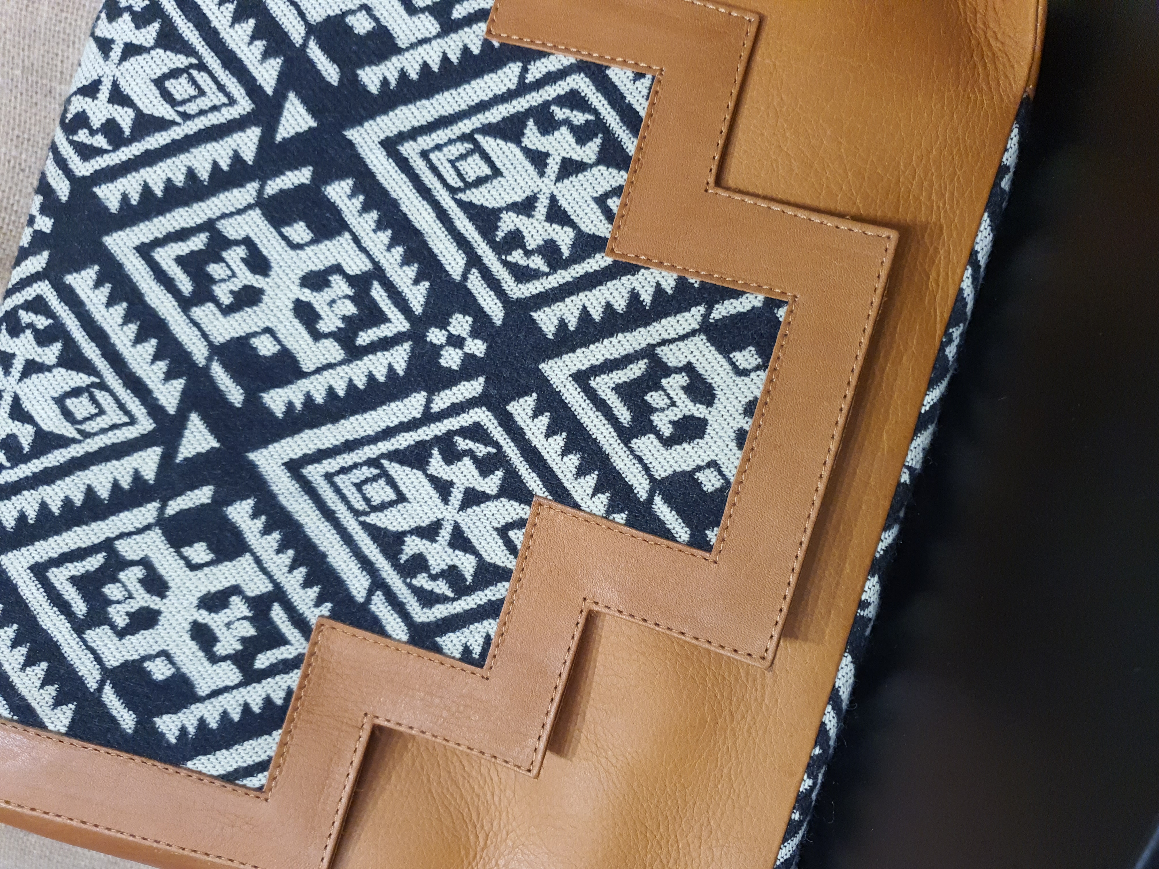 Jeśli szukasz funkcjonalnej torby , do szkoły , na wykłady lub do pracy . Przedstawiamy tę opcję . Eleganckie połączenie 100 % skóry , wełnianej tkaniny z wzorem etnicznym Indian kechua z nowoczesnym stylem i elegancją oraz dbałością o najmniejsze detale .Torba ta posiada wiele miejsca na notatki , dokumenty Tablet , lub małego laptopa . Idealna na spotkania biznesowe . Wewnątrz posiada  dwie małe kieszonki w jednej centralnej przegrodzie zamykanej na zamek błyskawiczny . całość zamykana klapą z zatrzaskami magnetycznymi