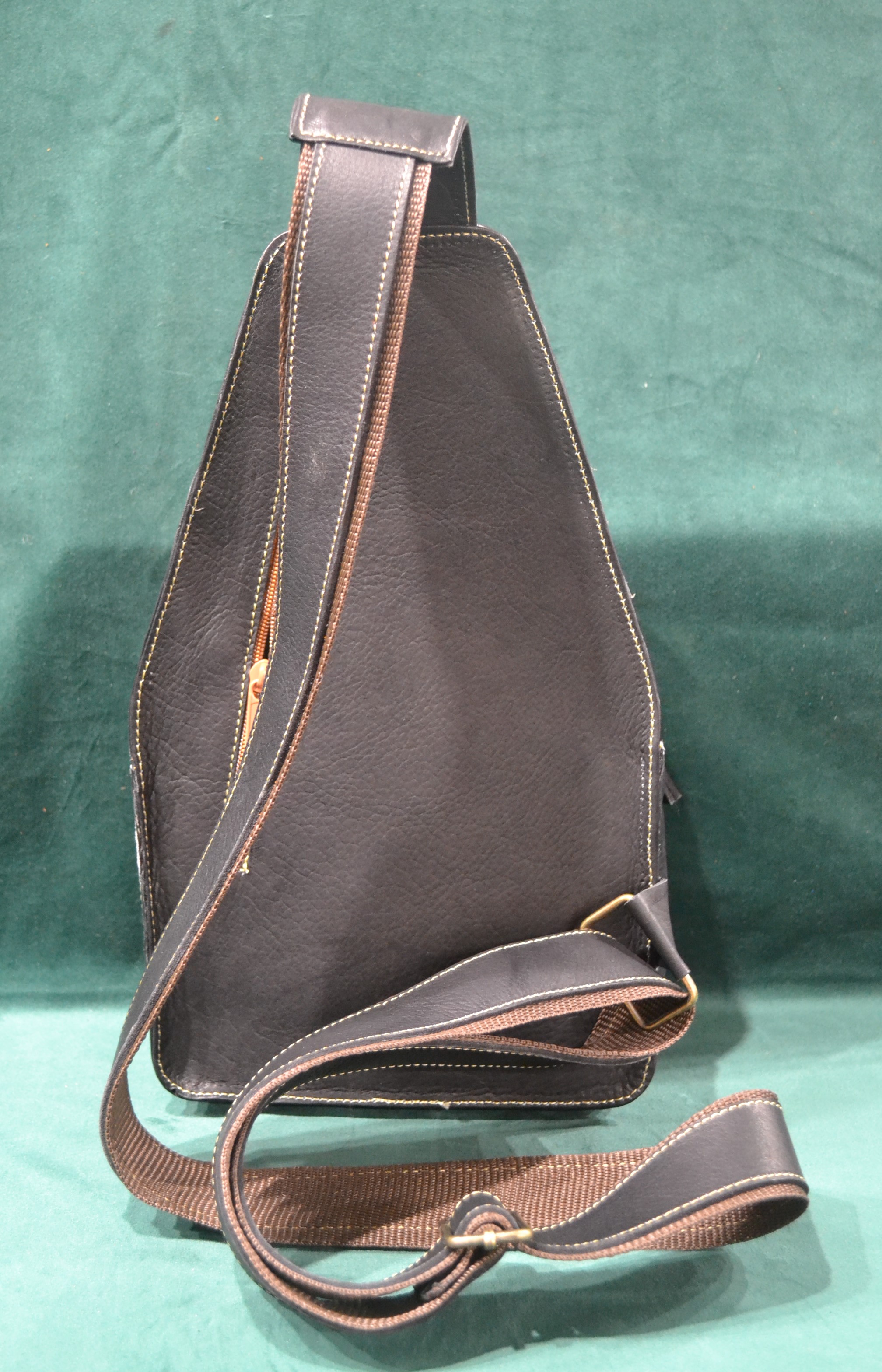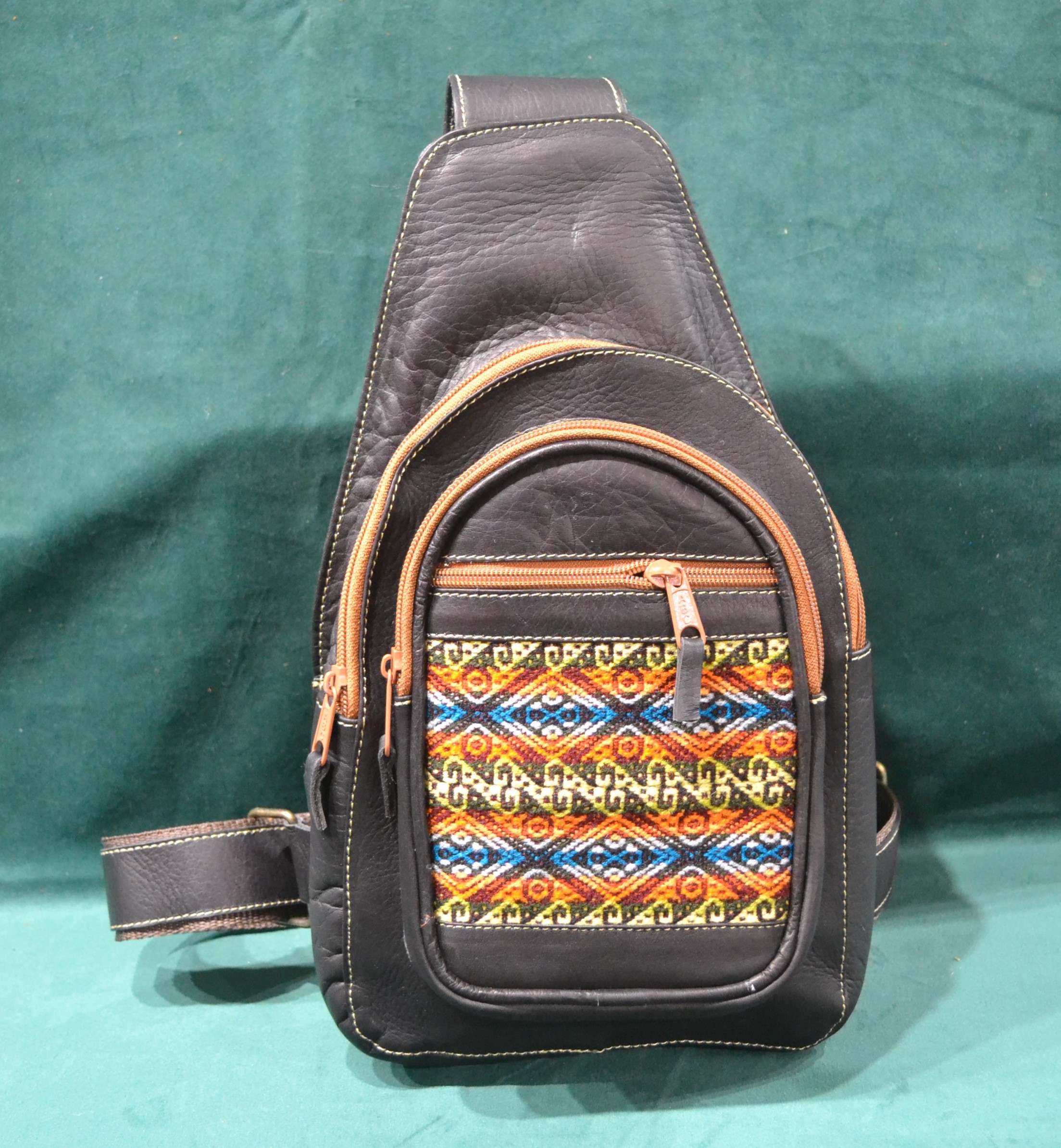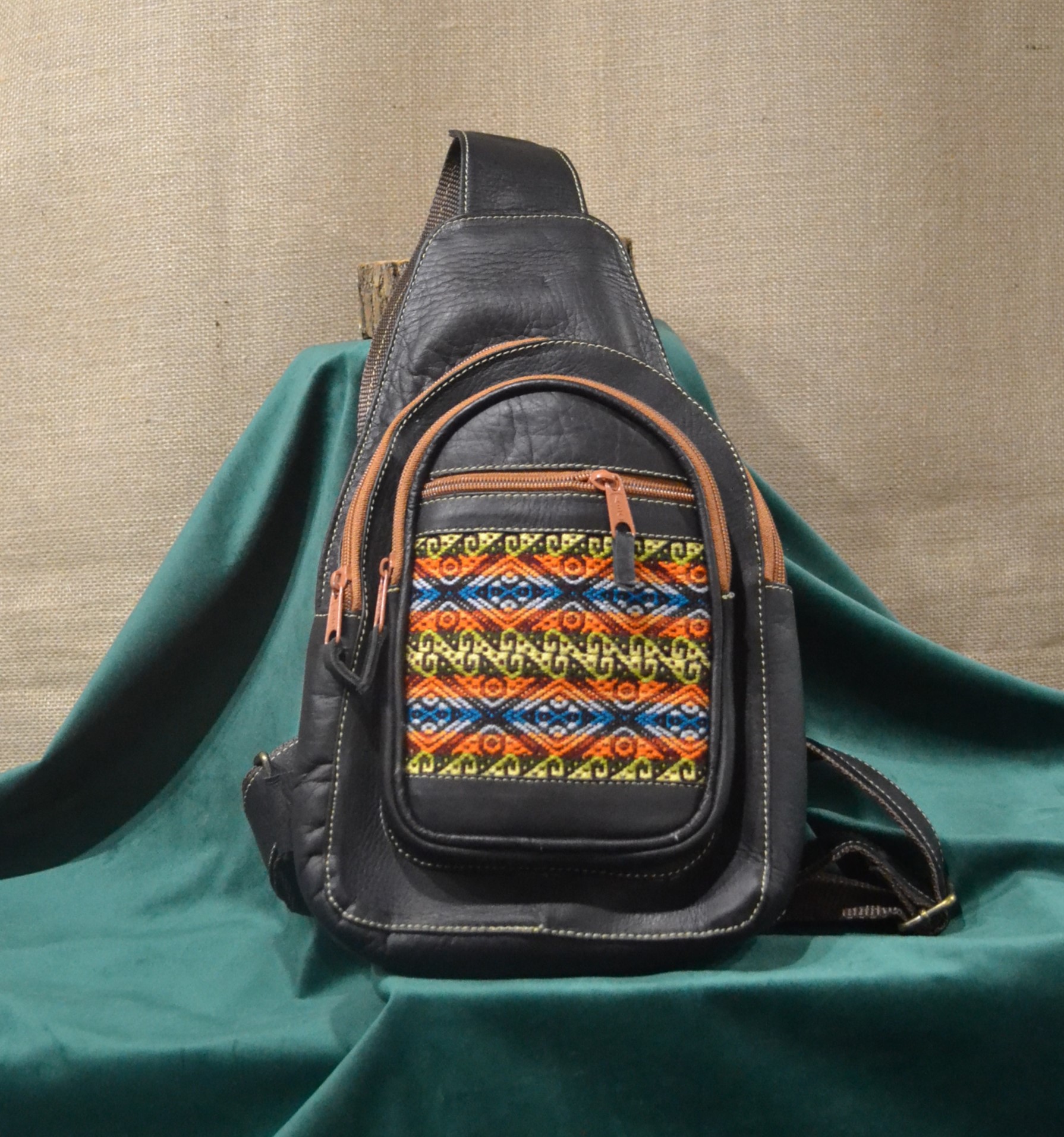 Szukasz torebki innej niż wszystkie , unikalnej w stylu jakiego nikt nie ma . Ten model jest idealny dla ciebie . Naturalna wytrzymała skóra i haftowane  kolorowe detale to idealne połączenie . Tę torebkę można nosić założona przez plecy jak i przez pierś. Jej krój i szeroki pasek sprawiają że idealnie przylega do każdej sylwetki. Posiada cztery kieszenie zamykane zamkiem błyskawicznym.