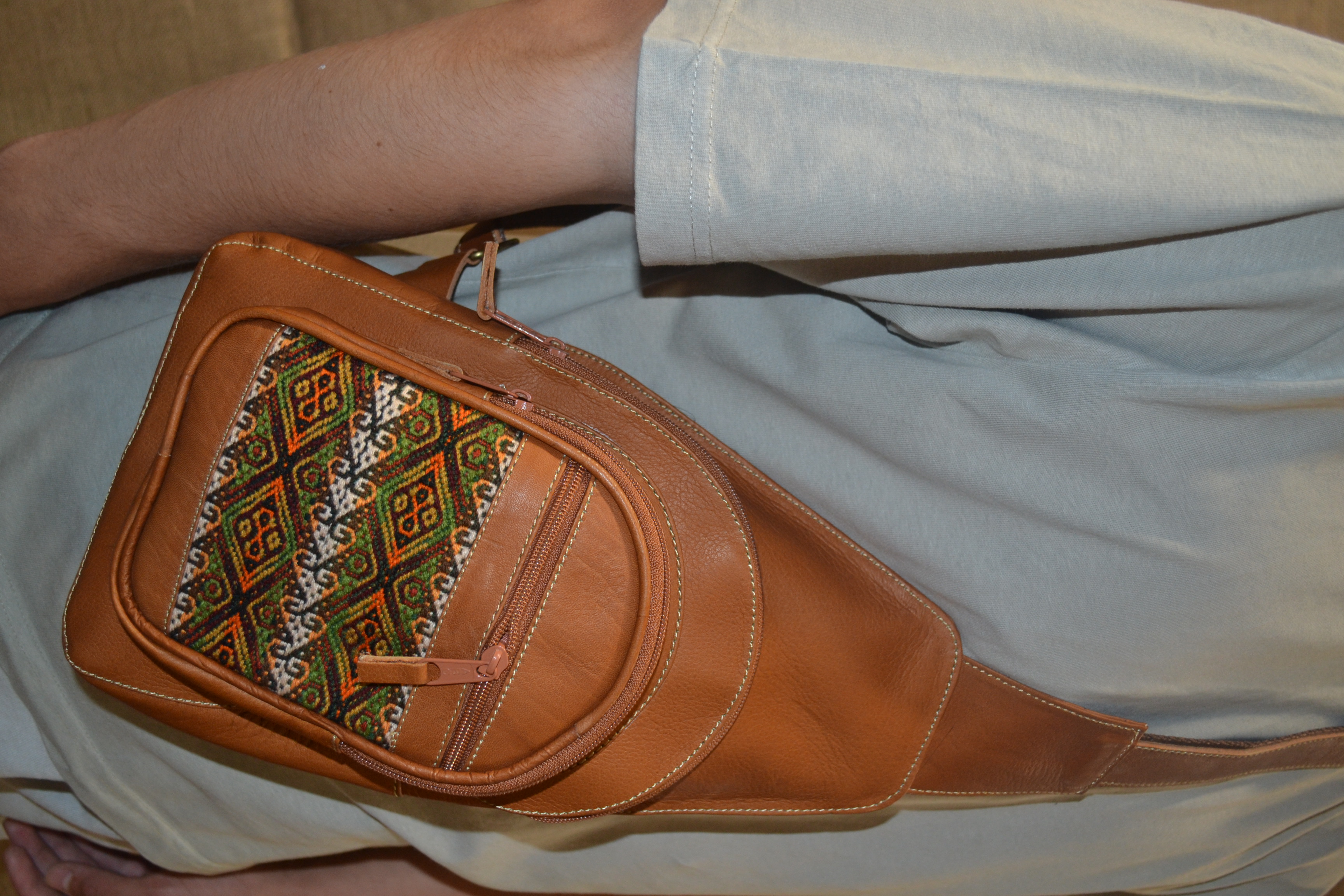 Torba skórzana męska jasnobrązowa  z etnicznym wełnianym haftem .Torba skórzana męska jasnobrązowa  z etnicznym wełnianym haftem .Torba skórzana męska jasnobrązowa  z etnicznym wełnianym haftem .Torba skórzana męska jasnobrązowa  z etnicznym wełnianym haftem .