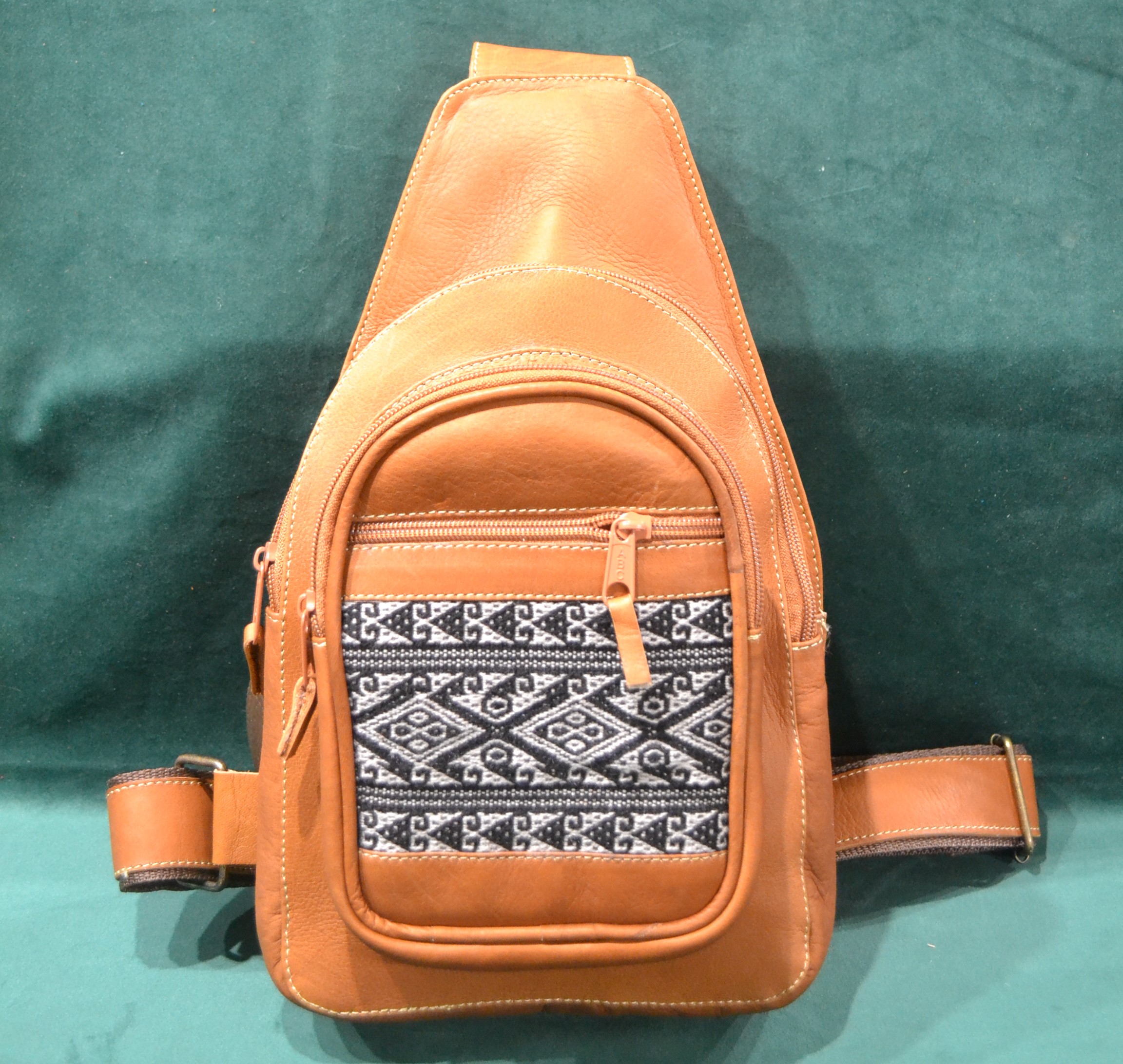 Strona główna » Wyroby ze skóry » Torba skórzana męska jasnobrązowa z etnicznym wełnianym haftem .