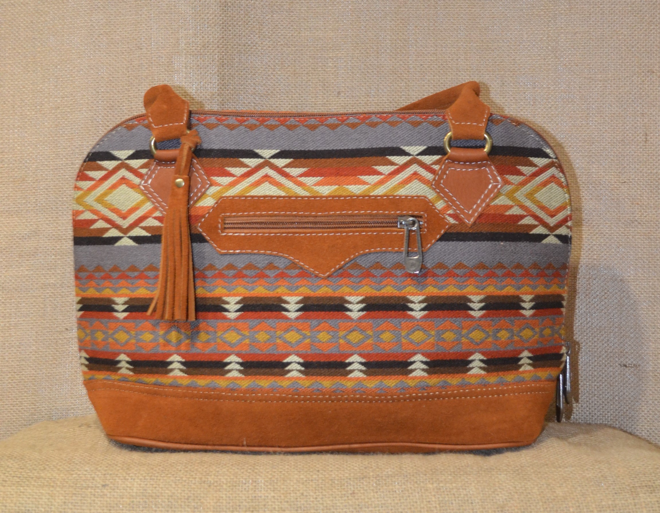 W naszym sklepie mamy dla ciebie idealny model torebki. Jeśli zależy tobie na torebce innej niż te które można kupić na chińskich stronach lub oklepanych wzorach w drogich sieciowych sklepach których funkcjonalność nie jest adekwatna do ceny a cena nie zawsze idzie w parze z jakością . Zobacz! Wykonana w 100 % ręcznie . Szyta w Ekwadorskich Andach w małym warsztacie kaletniczym ze skóry bydlęcej w kolorze jasnobrązowym i wełnianej tkaniny . Tkanina ta utkana na krosnach z wełny owczej , pokryta etnicznymi wzorami w odcieniach brązu i szarości które od setek lat używane są przez Indian Keczua i stanowią nieodłączny element ich kultury . Solidne wykonie , dobre gatunkowo materiały oraz użyte wzory świadczą o niepowtarzalności tego produktu.