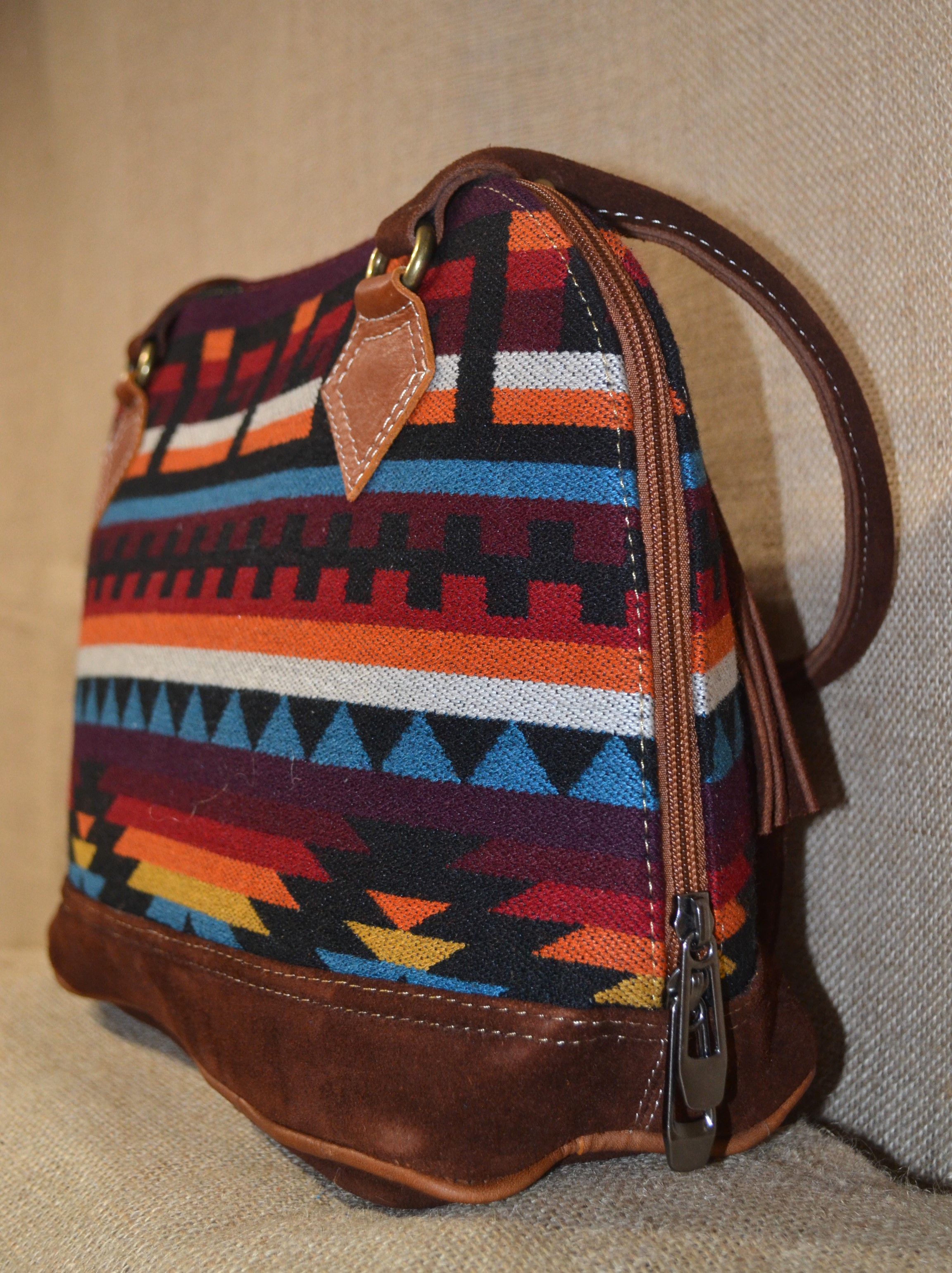 Potrzebna jest tobie torebka na każdy dzień . W naszym sklepie mamy dla ciebie idealny model torebki. Jeśli zależy tobie na torebce innej niż te które można kupić na chińskich stronach lub oklepanych wzorach w drogich sieciowych sklepach których funkcjonalność nie jest adekwatna do ceny a cena nie zawsze idzie w parze z jakością . Zobacz! Wykonana w 100 % ręcznie . Szyta w Ekwadorskich Andach w małym warsztacie kaletniczym ze skóry bydlęcej i wełnianej tkaniny . Tkanina ta utkana na krosnach z wełny owczej , pokryta etnicznymi wzorami które od setek lat używane są przez Indian Keczua i stanowią nieodłączny element ich kultury . Solidne wykonie , dobre gatunkowo materiały oraz użyte wzory świadczą o niepowtarzalności tego produktu.