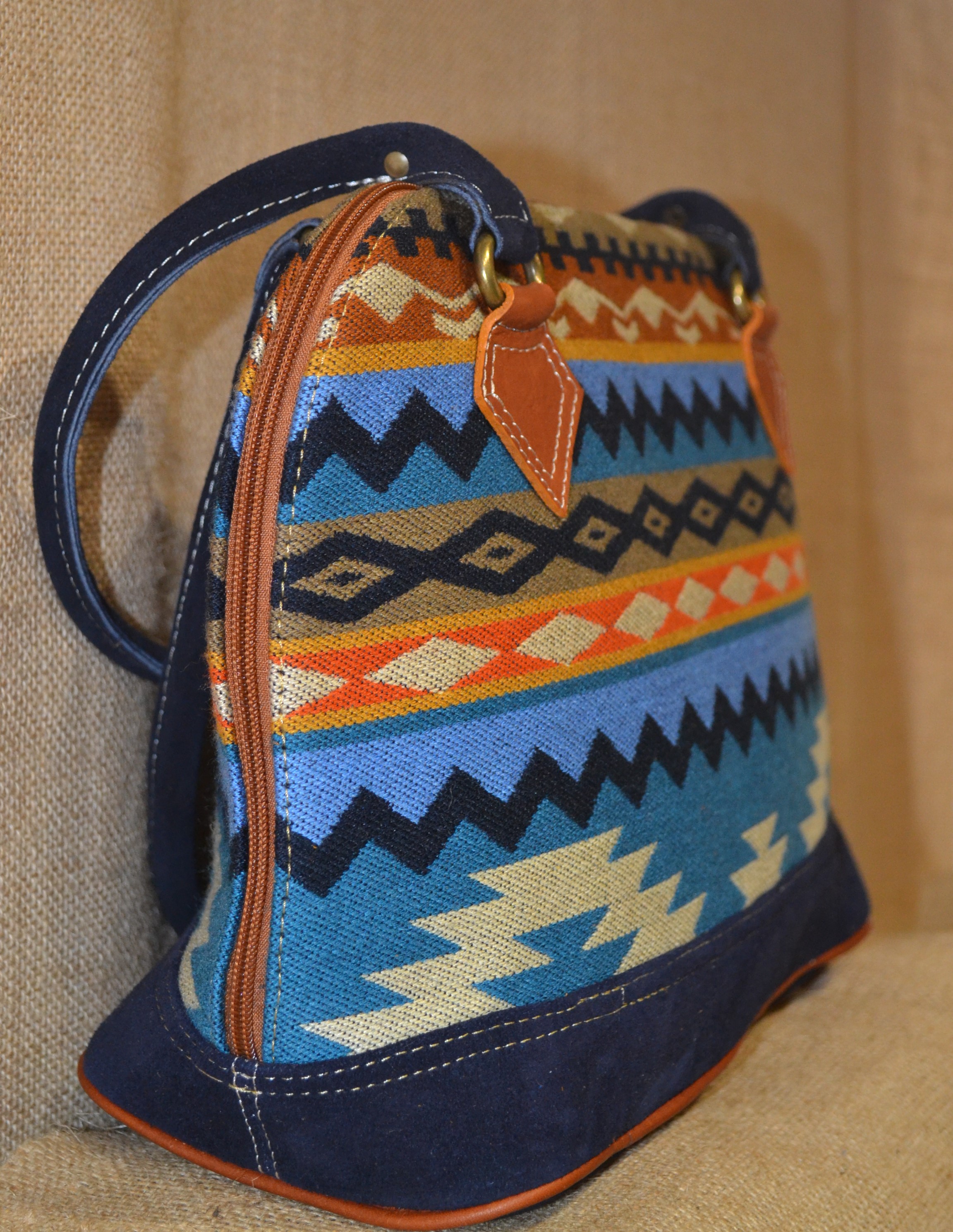 W naszym sklepie mamy dla ciebie idealny model torebki. Jeśli zależy tobie na torebce innej niż te które można kupić na chińskich stronach lub oklepanych wzorach w drogich sieciowych sklepach których funkcjonalność nie jest adekwatna do ceny a cena nie zawsze idzie w parze z jakością . Zobacz! Wykonana w 100 % ręcznie . Szyta w Ekwadorskich Andach w małym warsztacie kaletniczym ze skóry bydlęcej i wełnianej tkaniny . Tkanina ta utkana na krosnach z wełny owczej , pokryta etnicznymi wzorami które od setek lat używane są przez Indian Keczua i stanowią nieodłączny element ich kultury . Solidne wykonie , dobre gatunkowo materiały oraz użyte wzory świadczą o niepowtarzalności tego produktu.