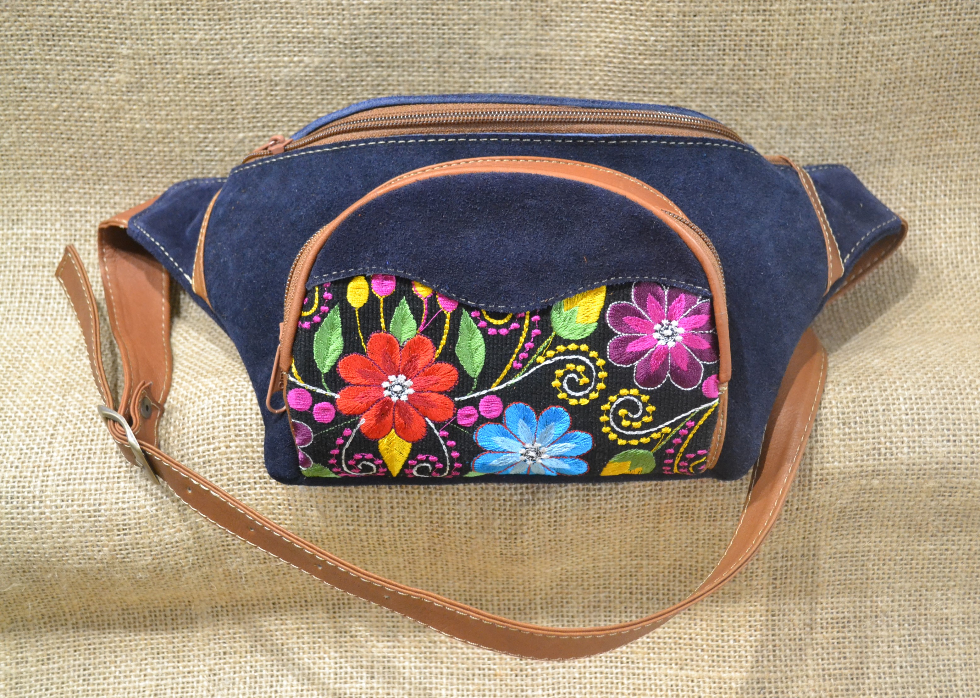 Poczuj się swobodnie z tą 100% skórzaną zamszową torebką typu kangur w kolorze granatowym która będąc na twoich biodrach da ci swobodę ruchów i wolne ręce podczas twojej kolejnej przygody. Solidne wykonanie oryginalne kolory oraz niepowtarzane wzory haftu przyciągają wzrok.