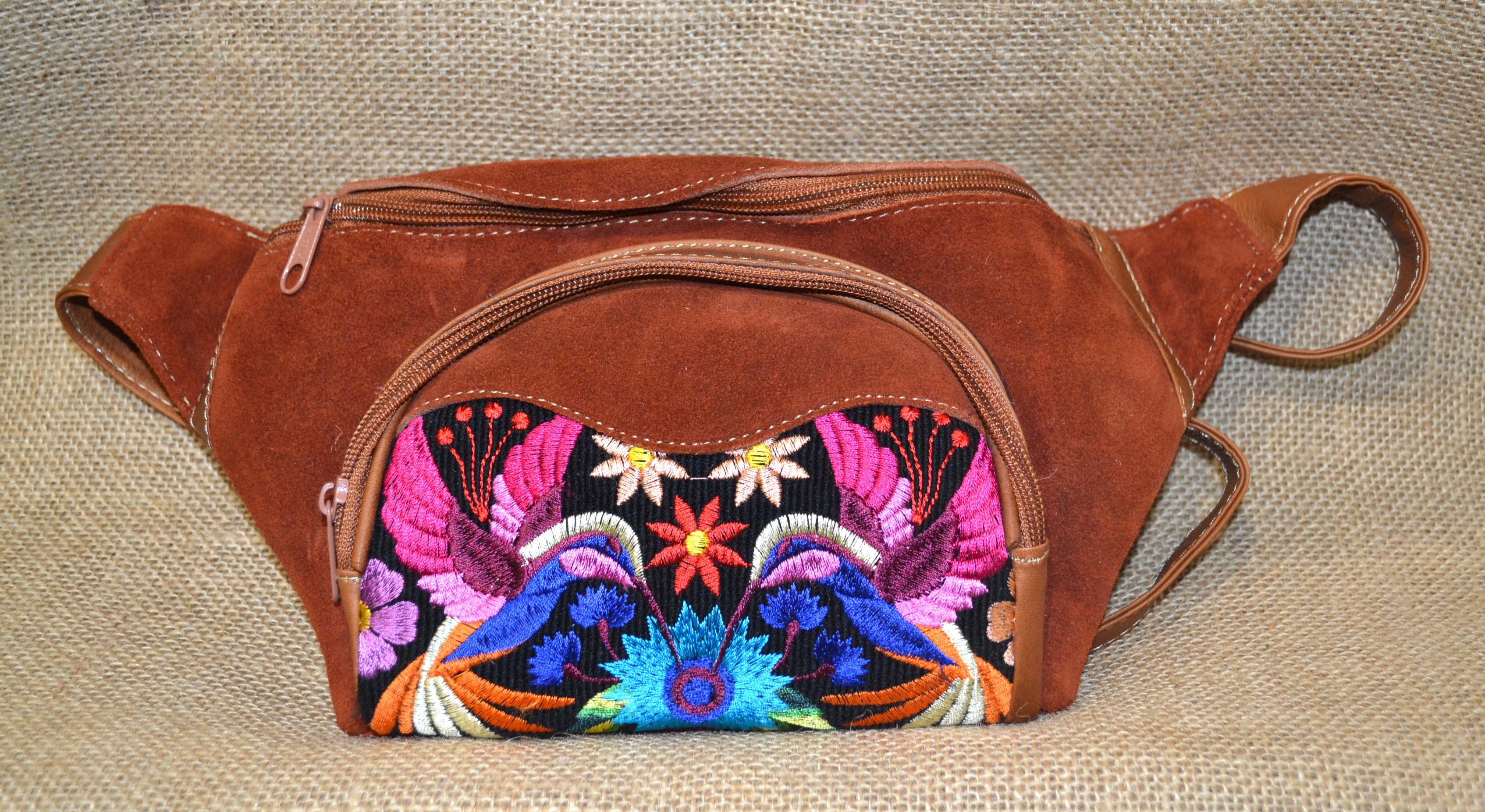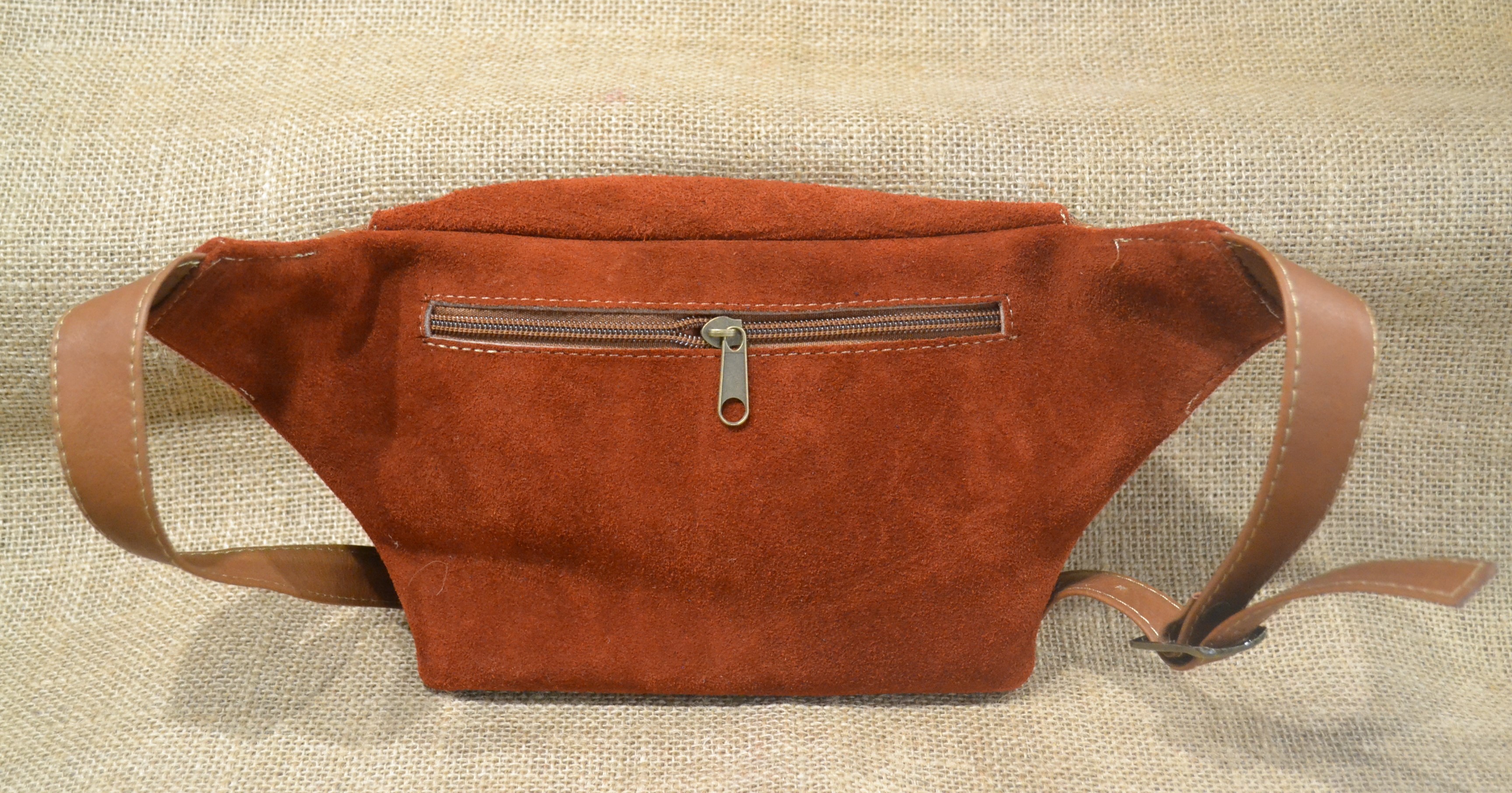 Poczuj się swobodnie z tą 100% skórzaną zamszową torebką typu kangur w kolorze czerwonej cegły która będąc na twoich biodrach da ci swobodę ruchów i wolne ręce podczas twojej kolejnej przygody. Solidne wykonanie oryginalne kolory oraz niepowtarzane wzory haftu przyciągają wzrok.