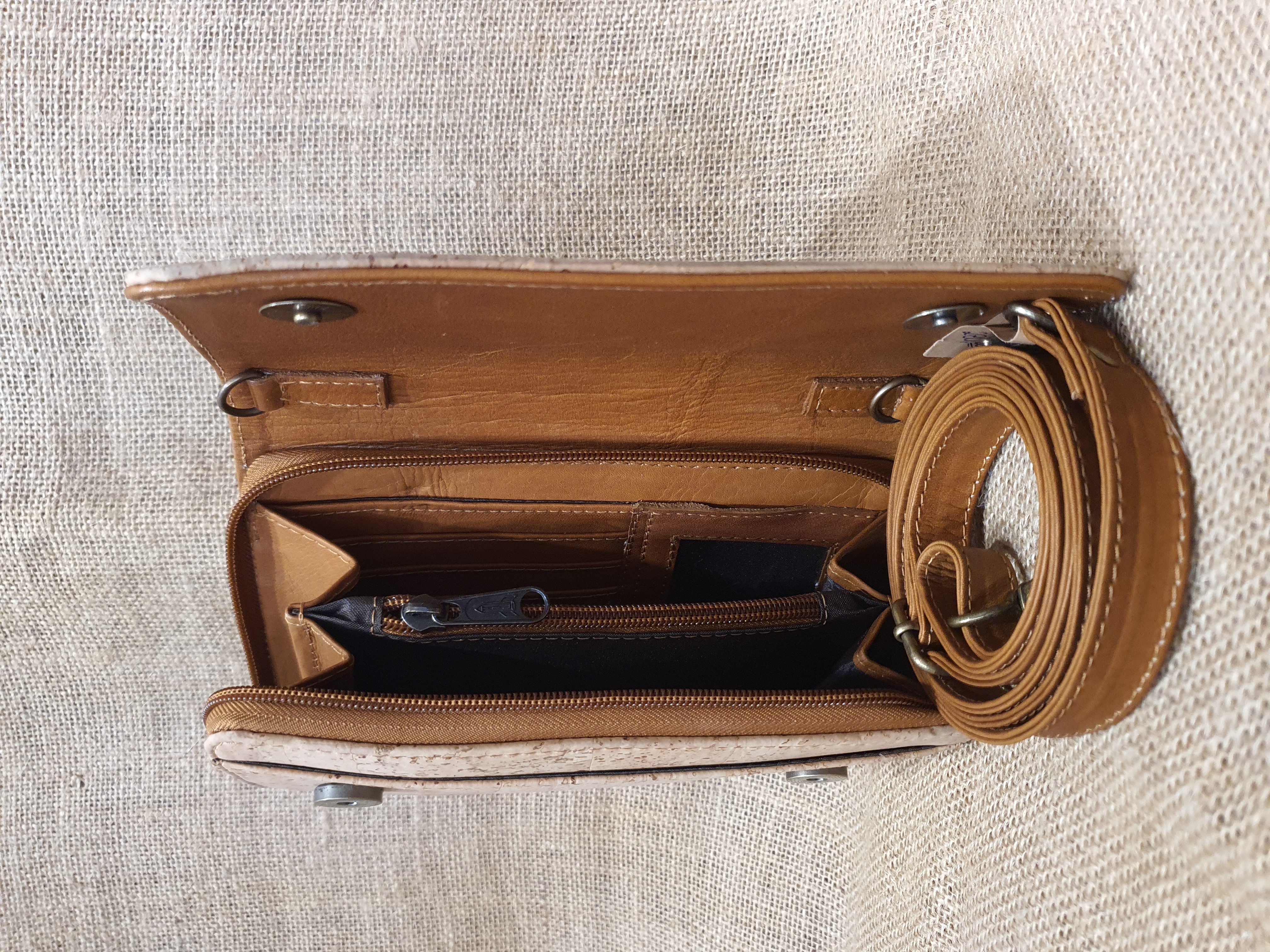 Bardzo przestronna torebka lub nowoczesny portfel ze 100% skóry i naturalnego korka wewnątrz posiada trzy przegrody i wiele kieszonek na karty i dokumenty. Całość zamykana na zamek błyskawiczny i klapę z magnetycznymi zatrzaskami . W komplecie regulowany pasek który pozwala zamienić portfel w małą bardzo elegancką torebkę .