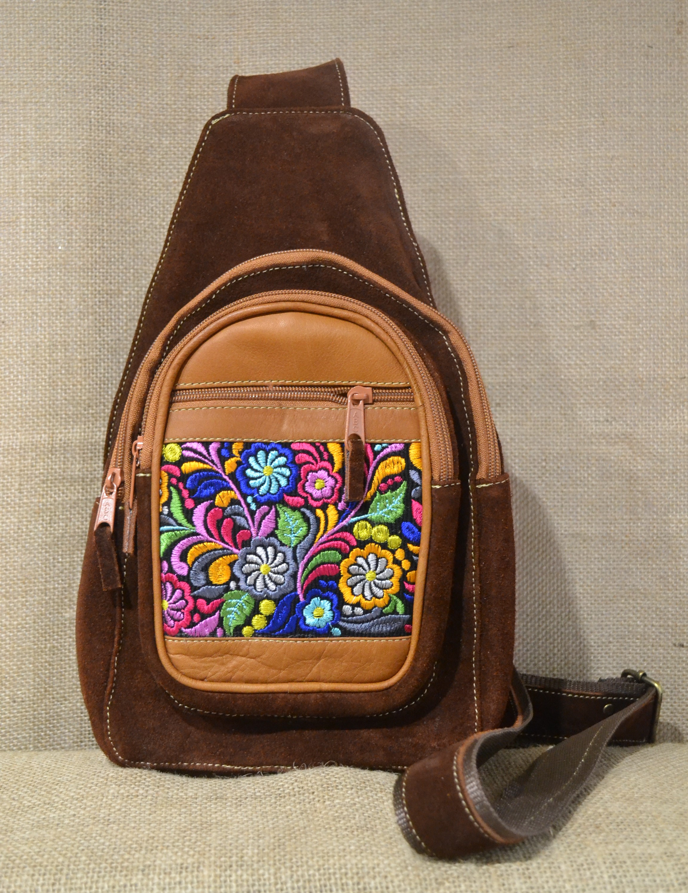 Szukasz torebki innej niż wszystkie , unikalnej w stylu jakiego nikt nie ma . Ten model jest idealny dla ciebie . Sprowadzony przez nas prosto z Ekwadoru . Naturalna  100% wytrzymała skóra zamszowa w kolorze ciemnego brązu i haftowane  kolorowe kwiatowe detale to idealne połączenie . Tę torebkę można nosić założona przez plecy jak i przez pierś. Jej krój i szeroki pasek sprawiają że idealnie przylega do każdej sylwetki. Posiada cztery kieszenie zamykane zamkiem błyskawicznym.