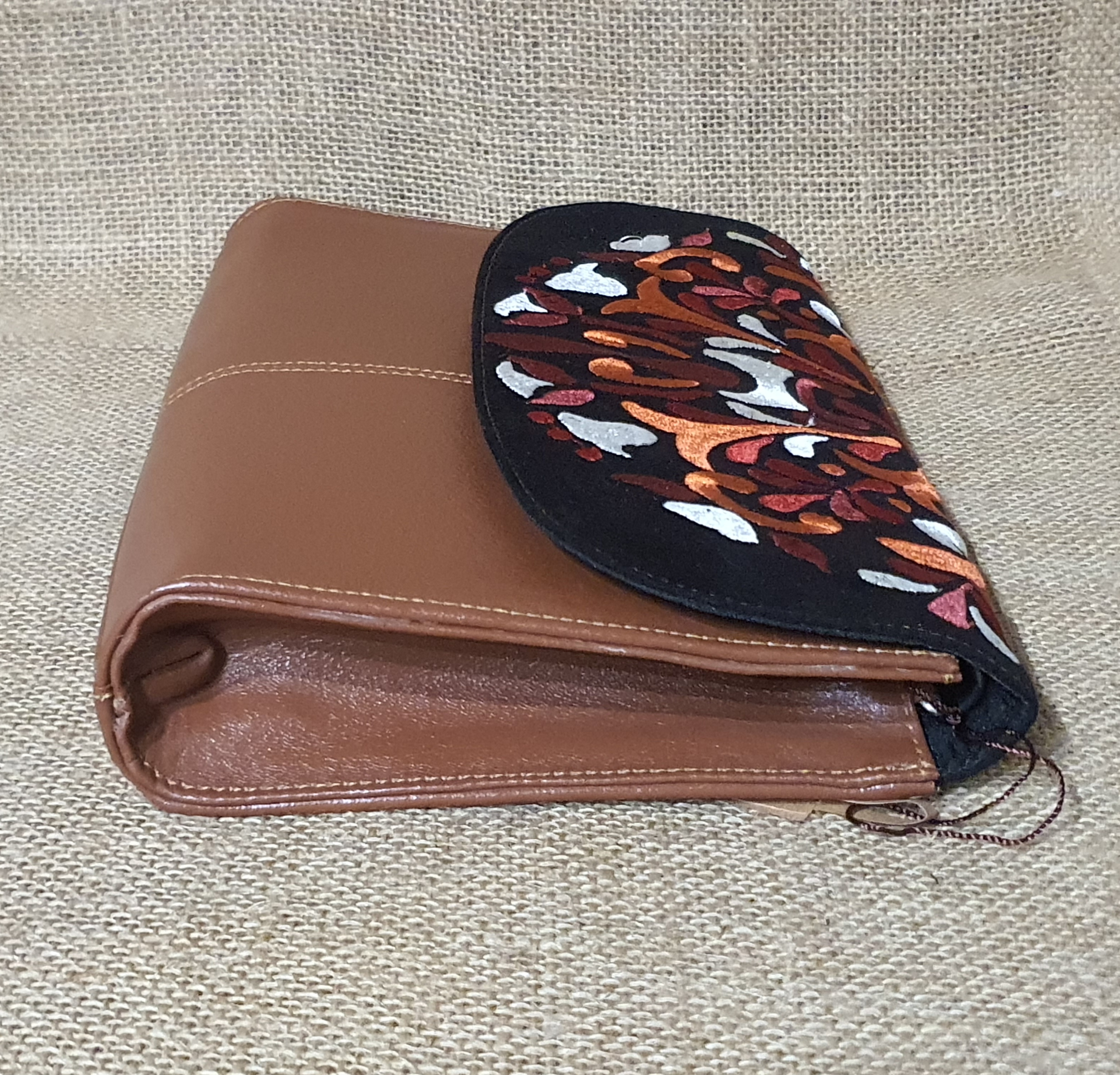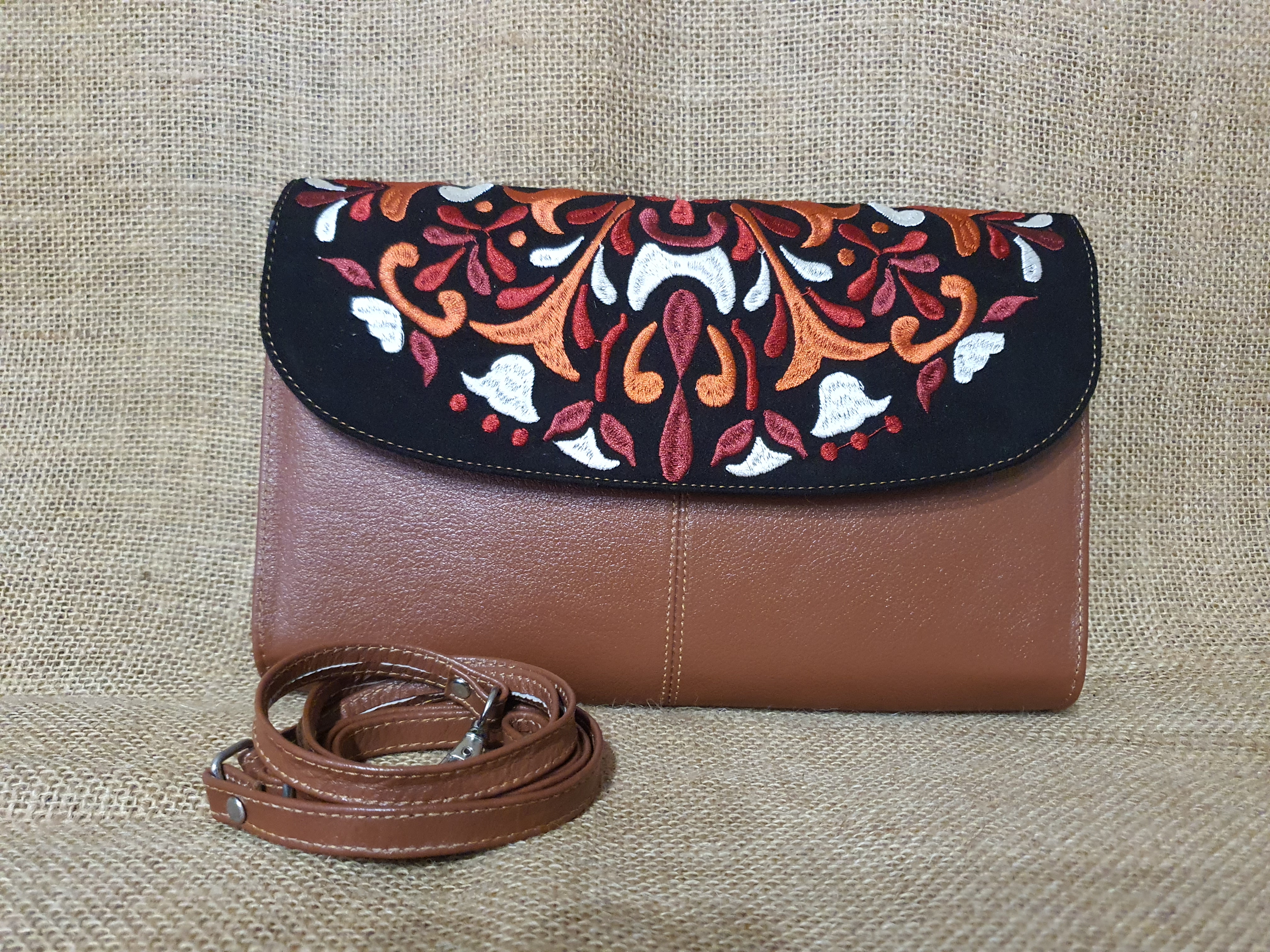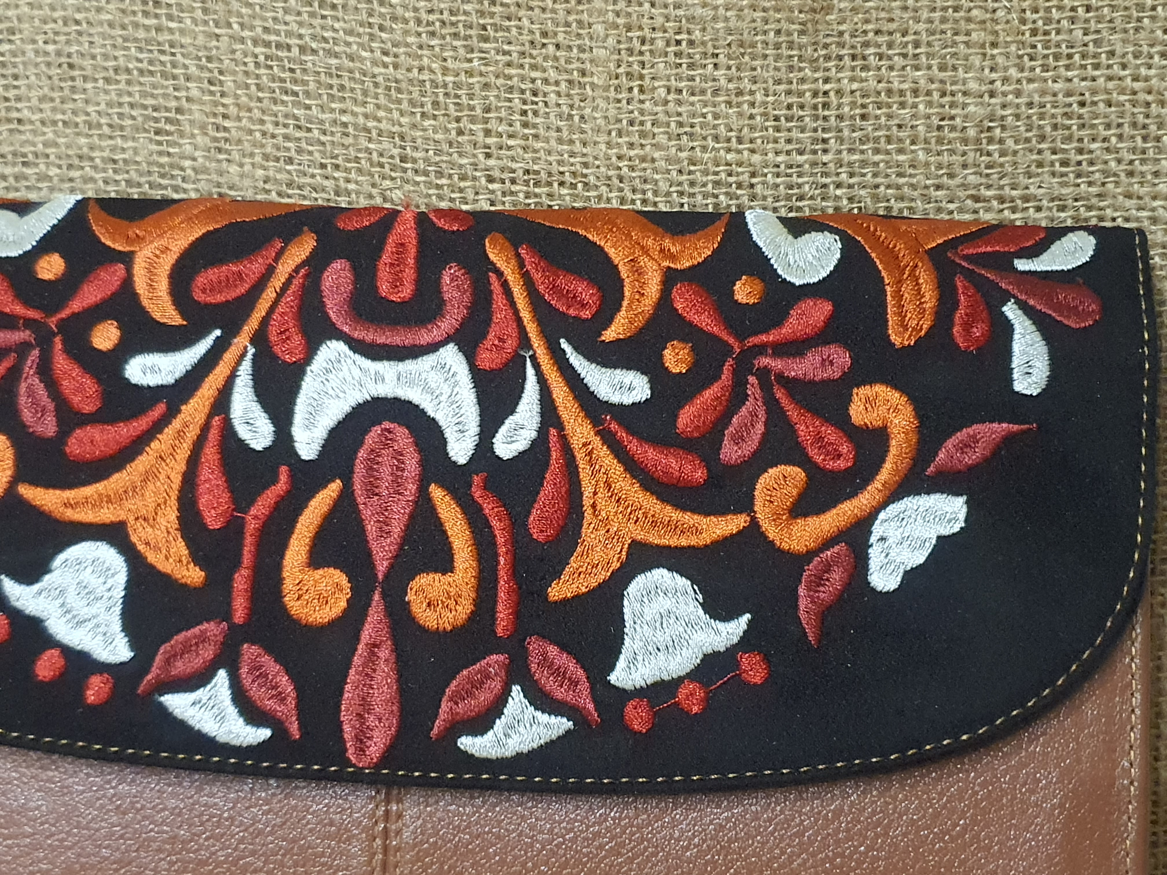 A jeśli mówimy o elegancji , mamy również opcje torebki kopertowej , brązowej wykonanej ze 100% skóry, zdobionej czerwonym haftem kwiatowym . Przyjechała do nas prosto z Ekwadorskich Andów . Kompozycja kolorów i haftu przyciąga uwagę, czyniąc jej posiadaczkę wyjątkową w otoczeniu. Kopertówka posiada centralną kieszeń i małą kieszonkę . Zamykana jest klapą z zatrzaskiem magnetycznym. Profesjonalne rzemieślnicze wykonanie i najlepsze gatunkowo lokalne materiały , sprawiają że te wyroby mocno wyprzedzają oklepane wzory taśmowo szytych torebek drogich sieciowych marek które widząc w sklepie zastanawiasz się zawsze .Czy to jest oryginał ?