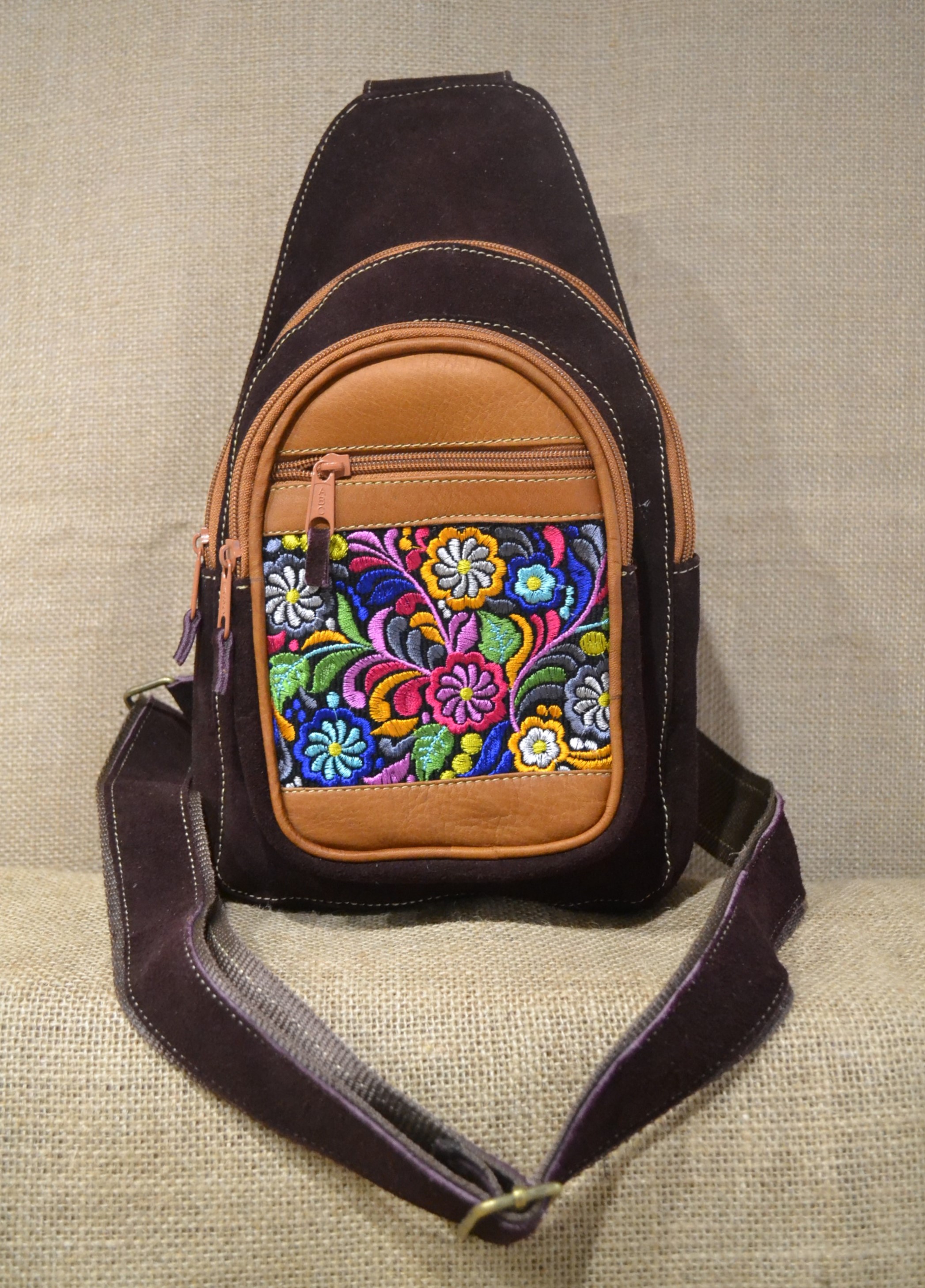 Szukasz torebki innej niż wszystkie , unikalnej w stylu jakiego nikt nie ma . Ten model jest idealny dla ciebie . Sprowadzony przez nas prosto z Ekwadoru . Naturalna 100% wytrzymała skóra zamszowa w kolorze bordowym i haftowane kolorowe kwiatowe detale to idealne połączenie . Tę torebkę można nosić założona przez plecy jak i przez pierś. Jej krój i szeroki pasek sprawiają że idealnie przylega do każdej sylwetki. Posiada cztery kieszenie zamykane zamkiem błyskawicznym.