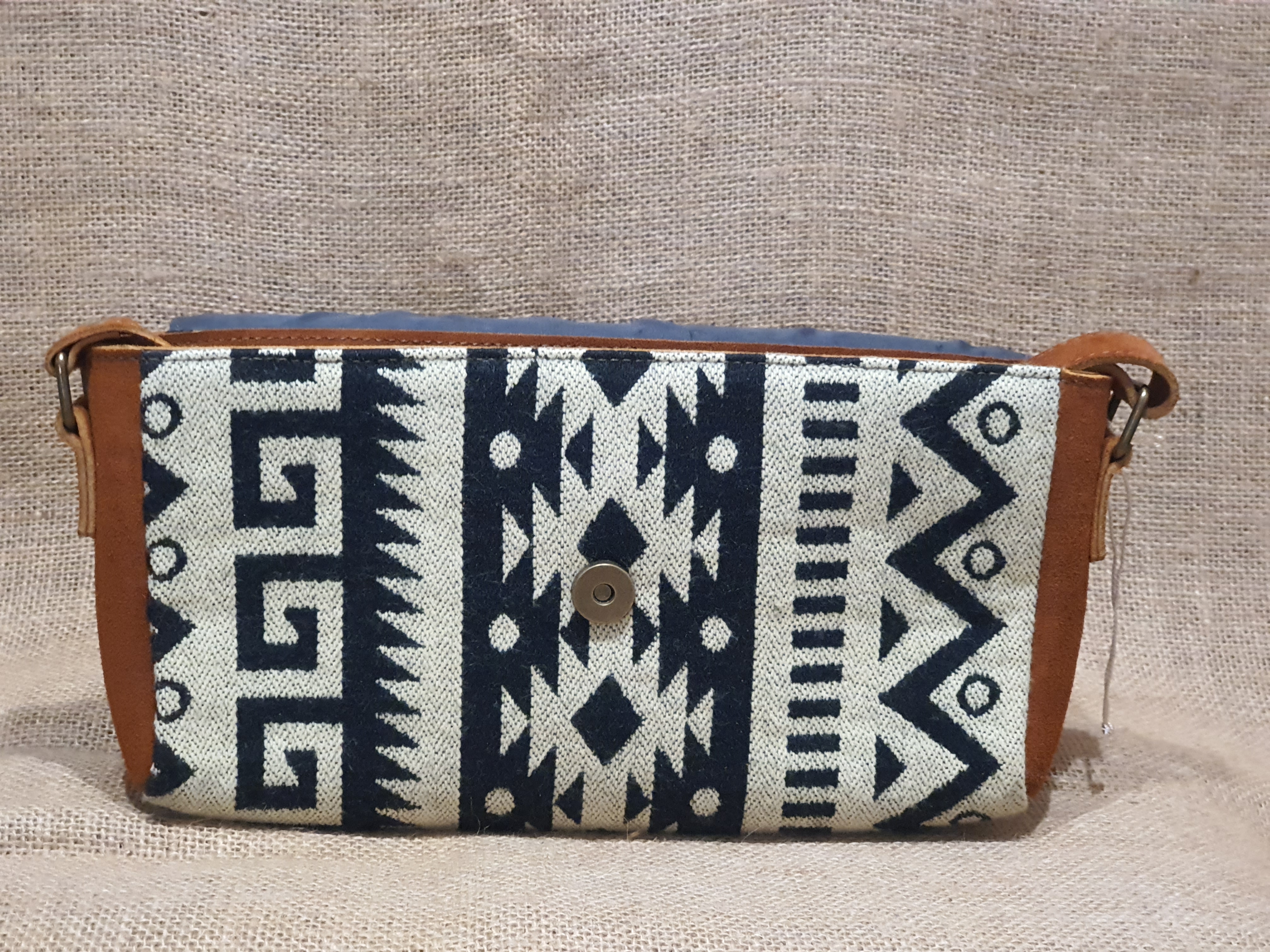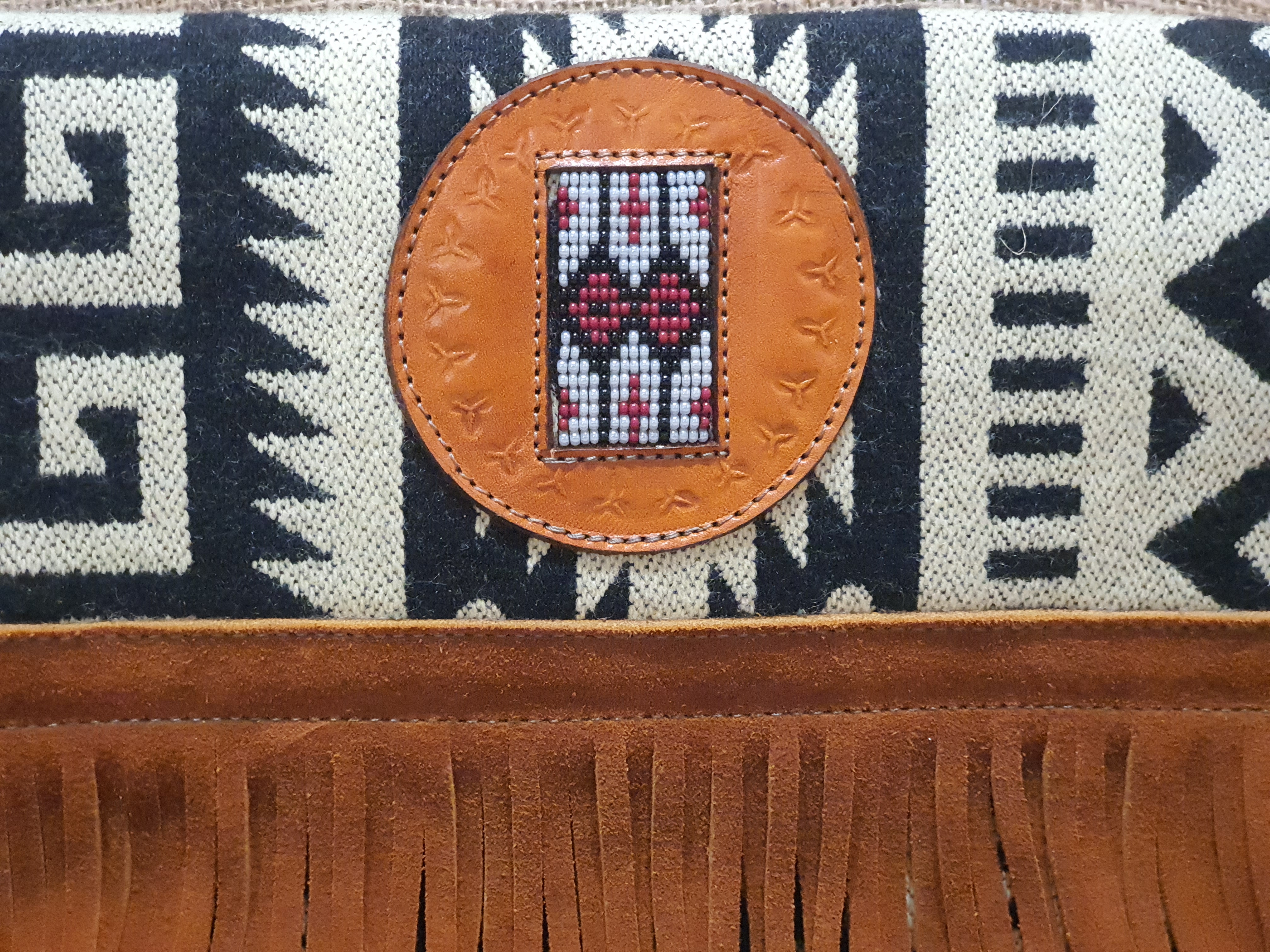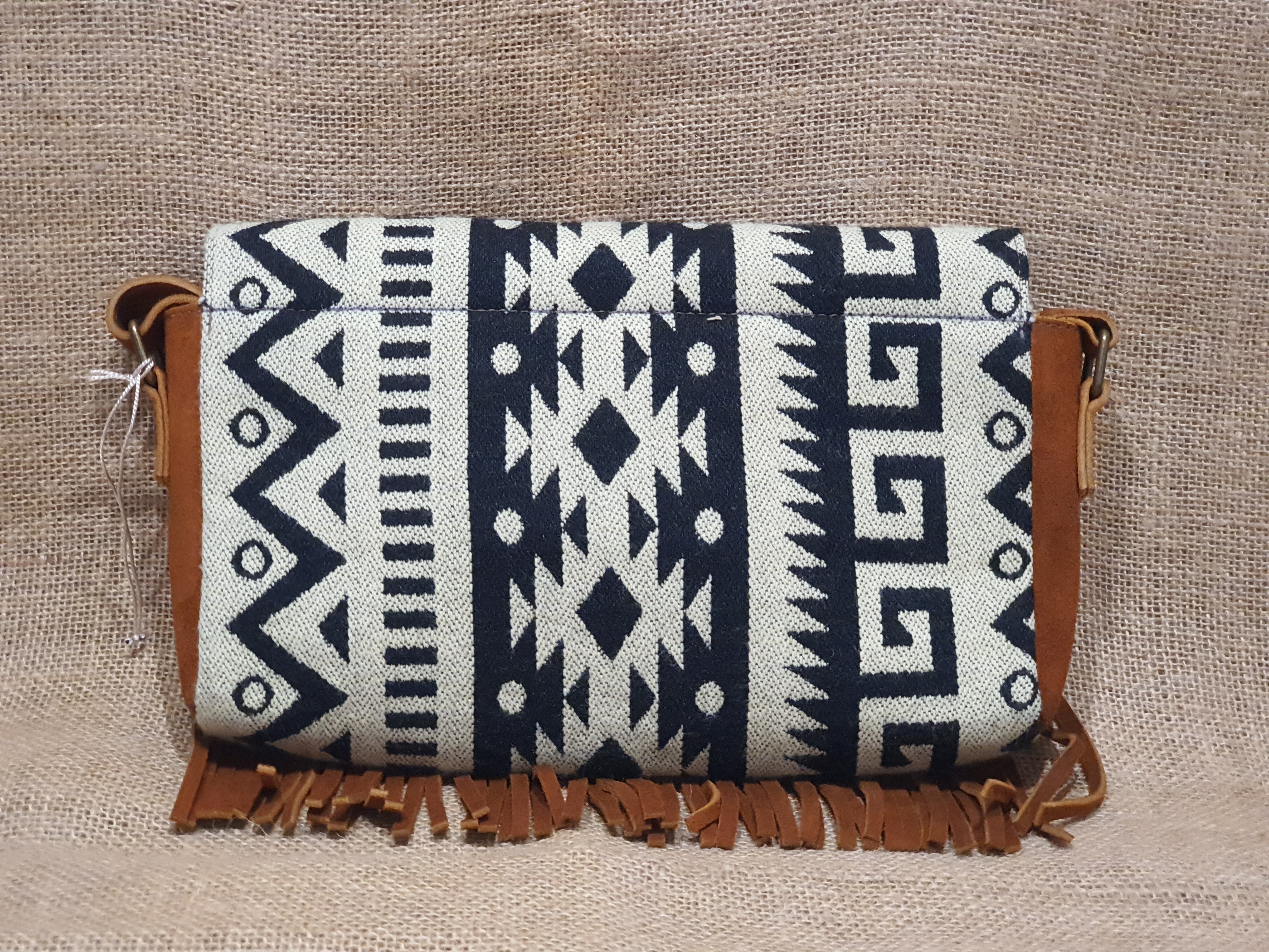 Ten typ torebki andyjskiej wzorowany jest kulturą ludu Indian Kiczua zamieszkującego Ekwadorskie Andy od niepamiętnych czasów do dnia dzisiejszego. Ta rdzenna ludność wypracowała wiele tradycyjnych nie powtarzalnych wzorów które przedstawiają ważne elementy życia ich przedstawicieli. Wzory te w czarno białych odcieniach umieszczone zostały przez rzemieślnika w haftach wykorzystanych do skomponowania tej torebki w połączeniu ze 100% brązową skorą zamszową , koralikami MULLO i frędzlami BOHO tworzą arcydzieło sztuki kaletniczej której nie kupisz nigdzie indziej . Torebka zamykana jest zatrzaskiem magnetycznym.