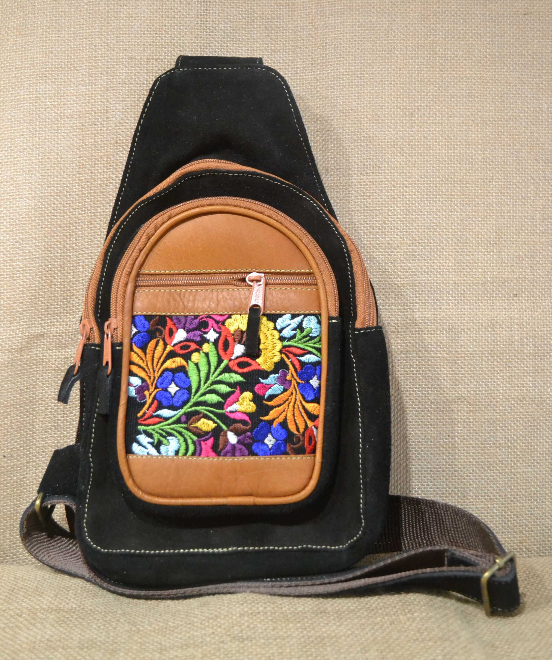Szukasz torebki innej niż wszystkie , unikalnej w stylu jakiego nikt nie ma . Ten model jest idealny dla ciebie . Sprowadzony przez nas prosto z Ekwadoru . Naturalna 100% wytrzymała skóra zamszowa w kolorze czarnym i haftowane kolorowe kwiatowe detale to idealne połączenie . Tę torebkę można nosić założona przez plecy jak i przez pierś. Jej krój i szeroki pasek sprawiają że idealnie przylega do każdej sylwetki. Posiada cztery kieszenie zamykane zamkiem błyskawicznym.