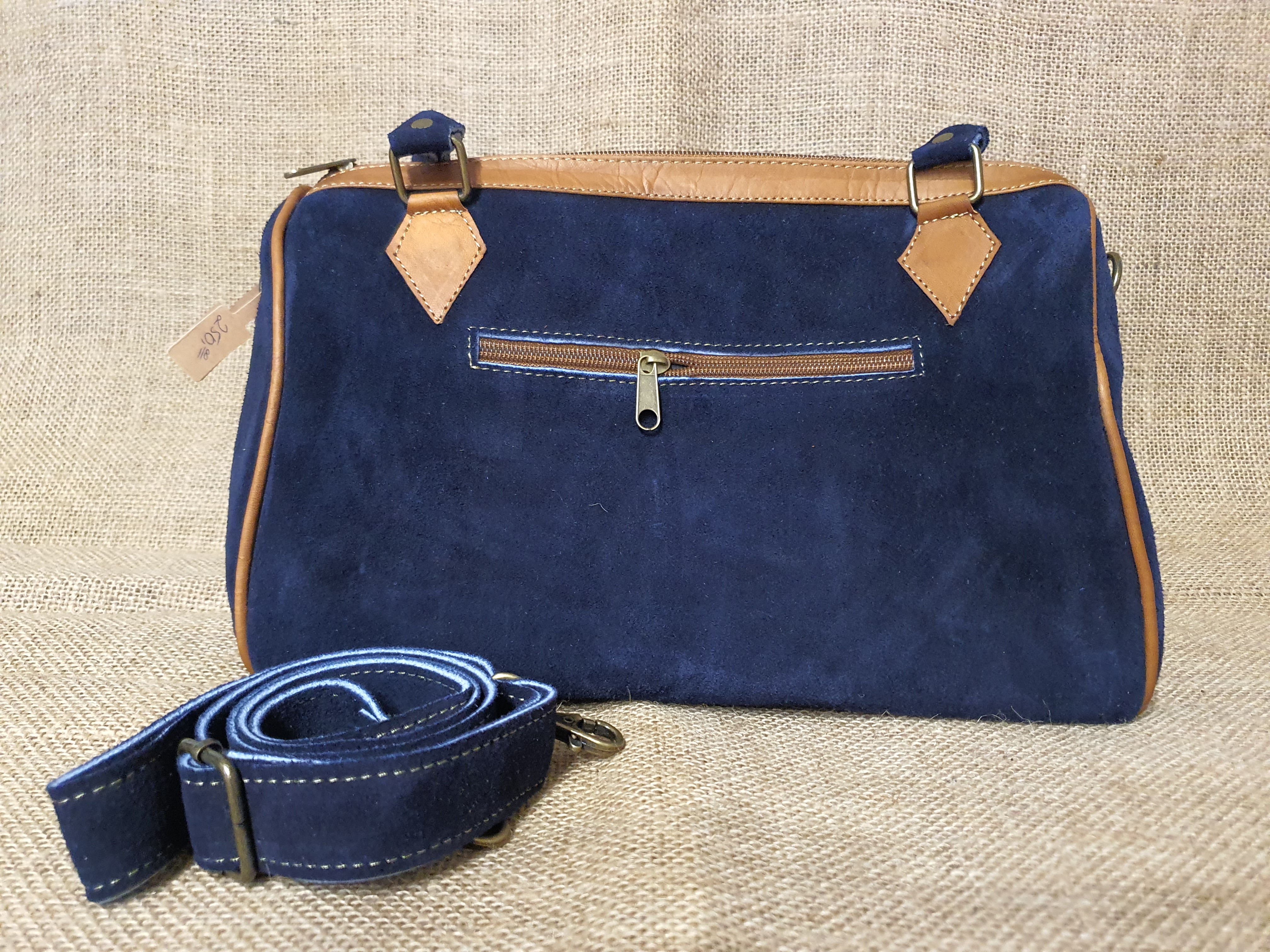 Strona główna » Wyroby ze skóry » Torebka skórzana zamszowa granatowa typu kuferek z kwiatowym haftem .