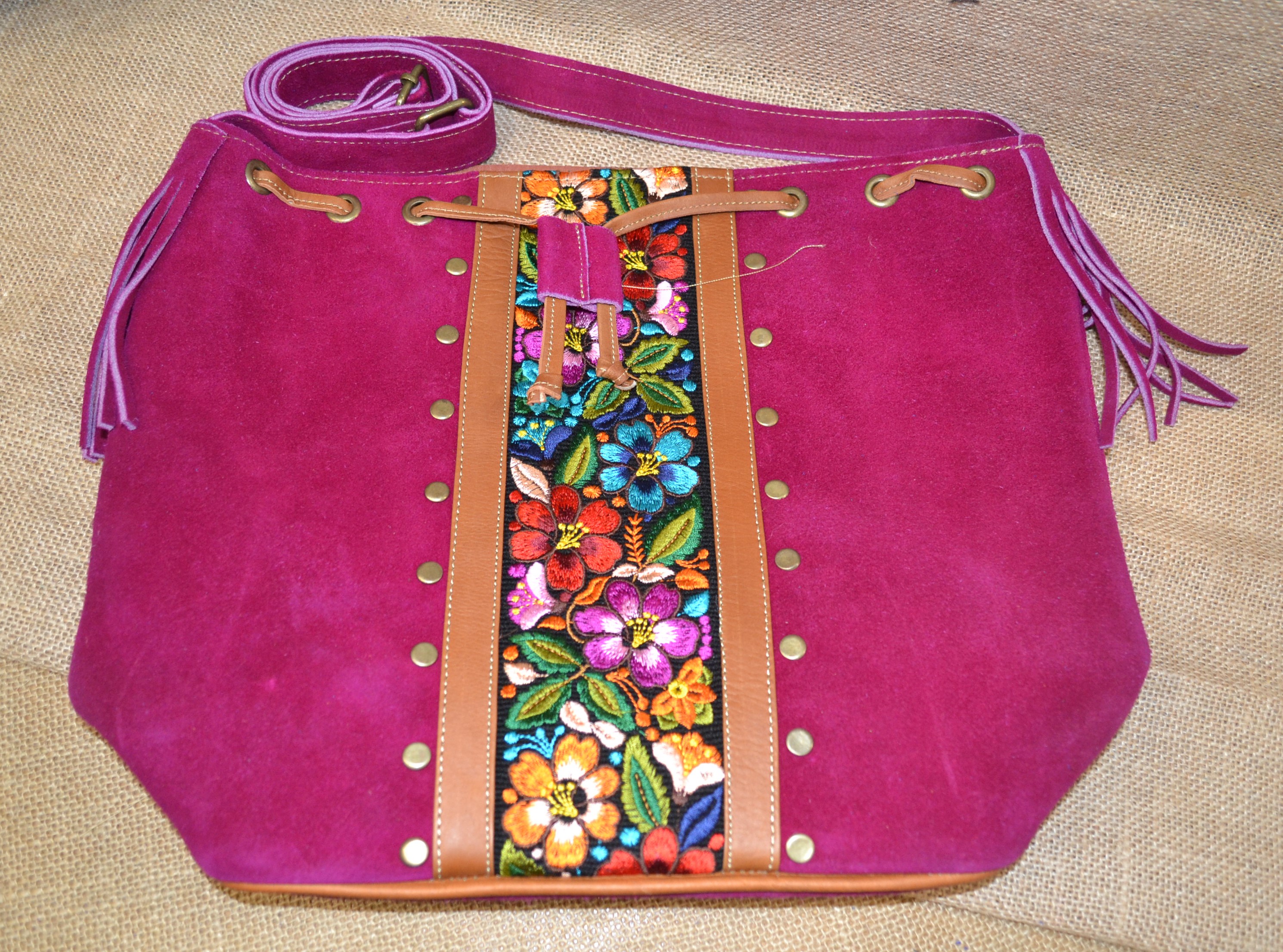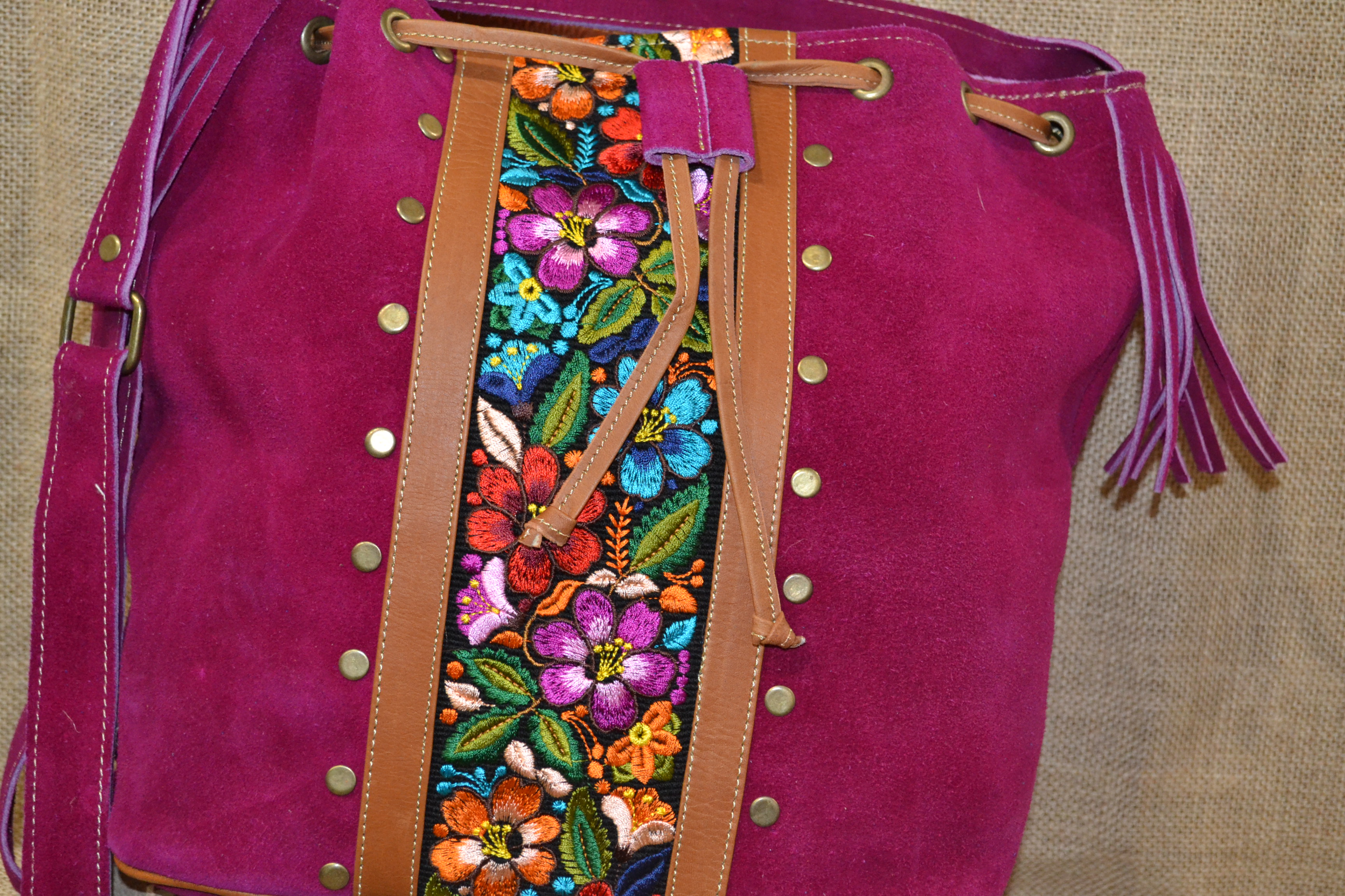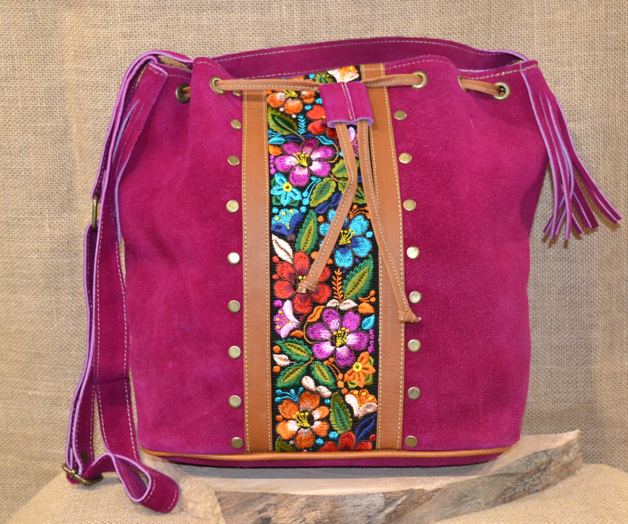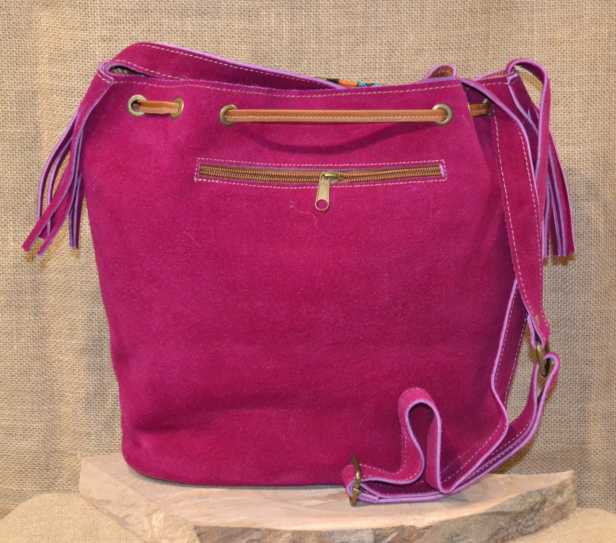 Co powiesz na mix zamszowej 100% naturalnej skóry w różowym kolorze i oryginalnych etnicznych wzorów pochodzących od Indian Kiczua zamieszkujących po dziś dzień Andyjskie prowincje Ekwadoru . Torebka ta uszyta została w mały lokalnym warsztacie kaletniczym wysoko w Andach gdzie natura i kultura Indian wciąż nadają rytm codziennego dnia . Torebka typu worek ściągana rzemieniem nadaje się idealnie na codzienne sprawy z jakimi musisz się mierzyć każdego dnia. Torba posiada centralną komorę w która wszyto małą kieszonkę na drobiazgi.